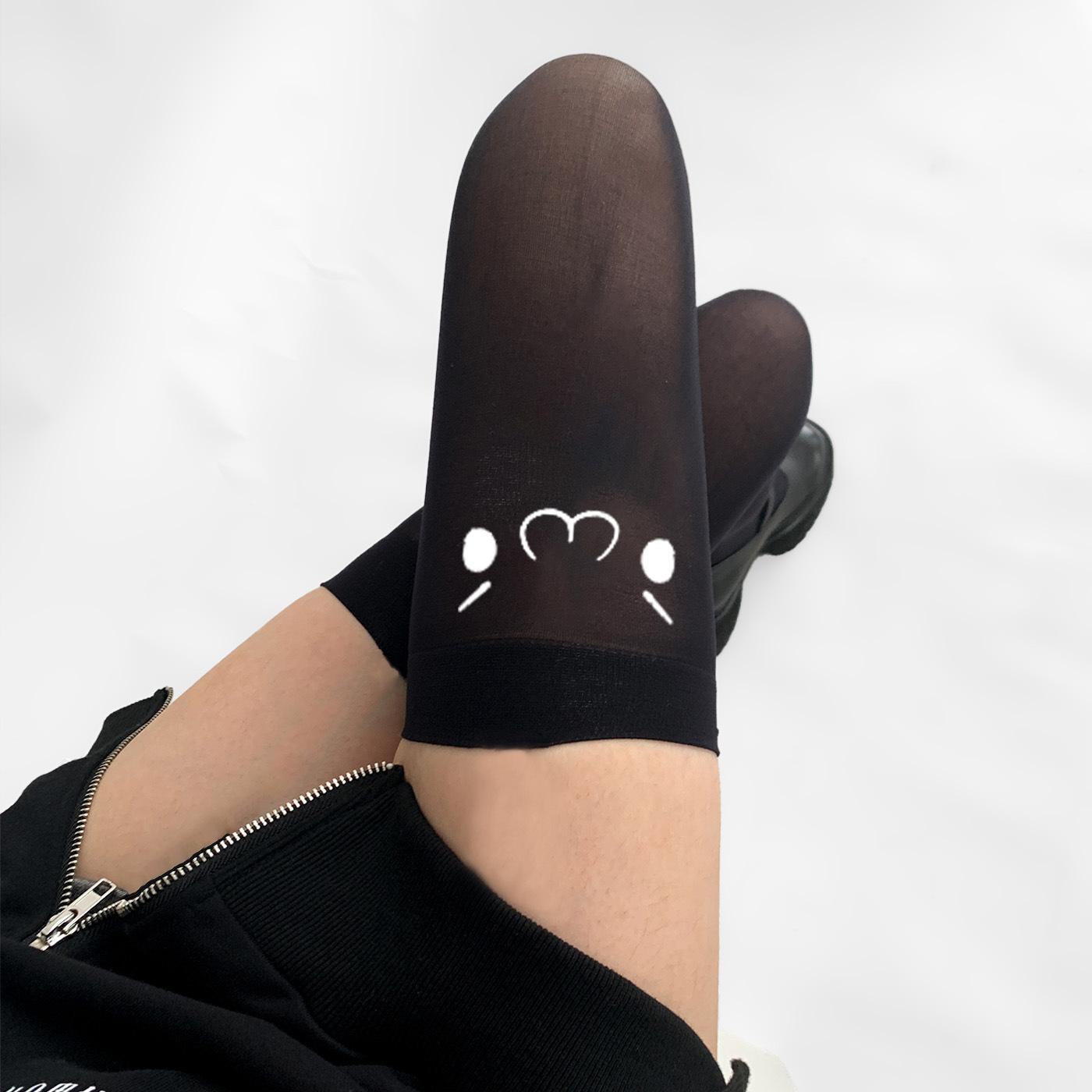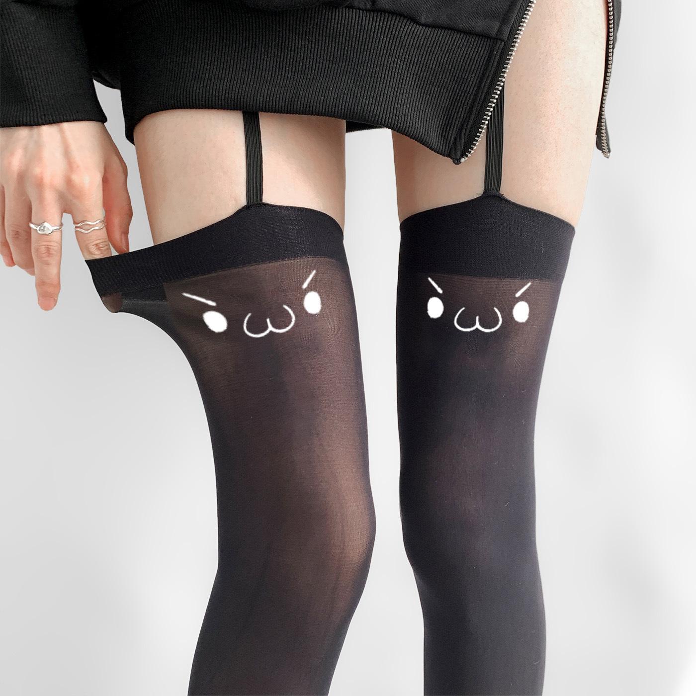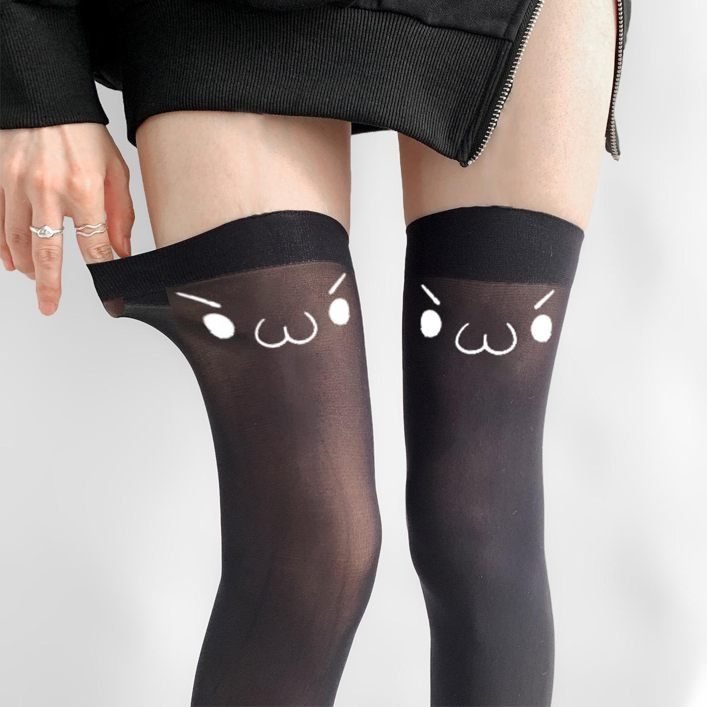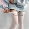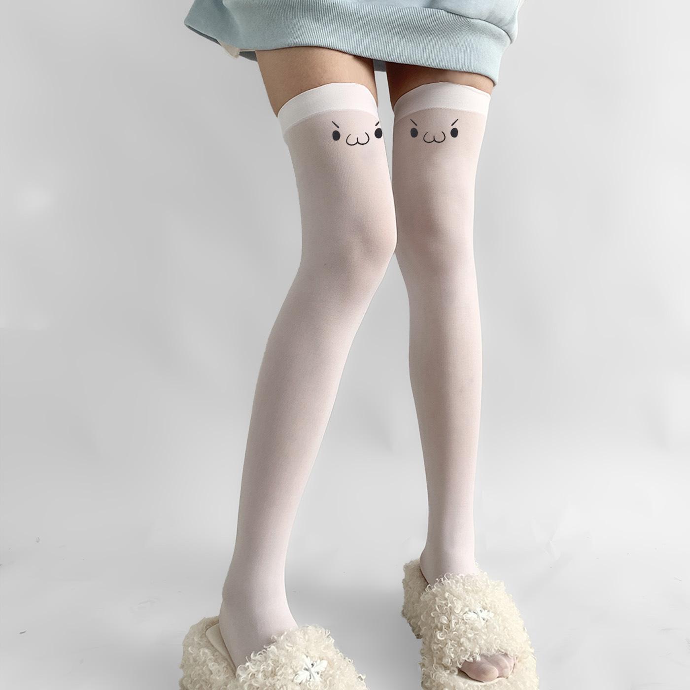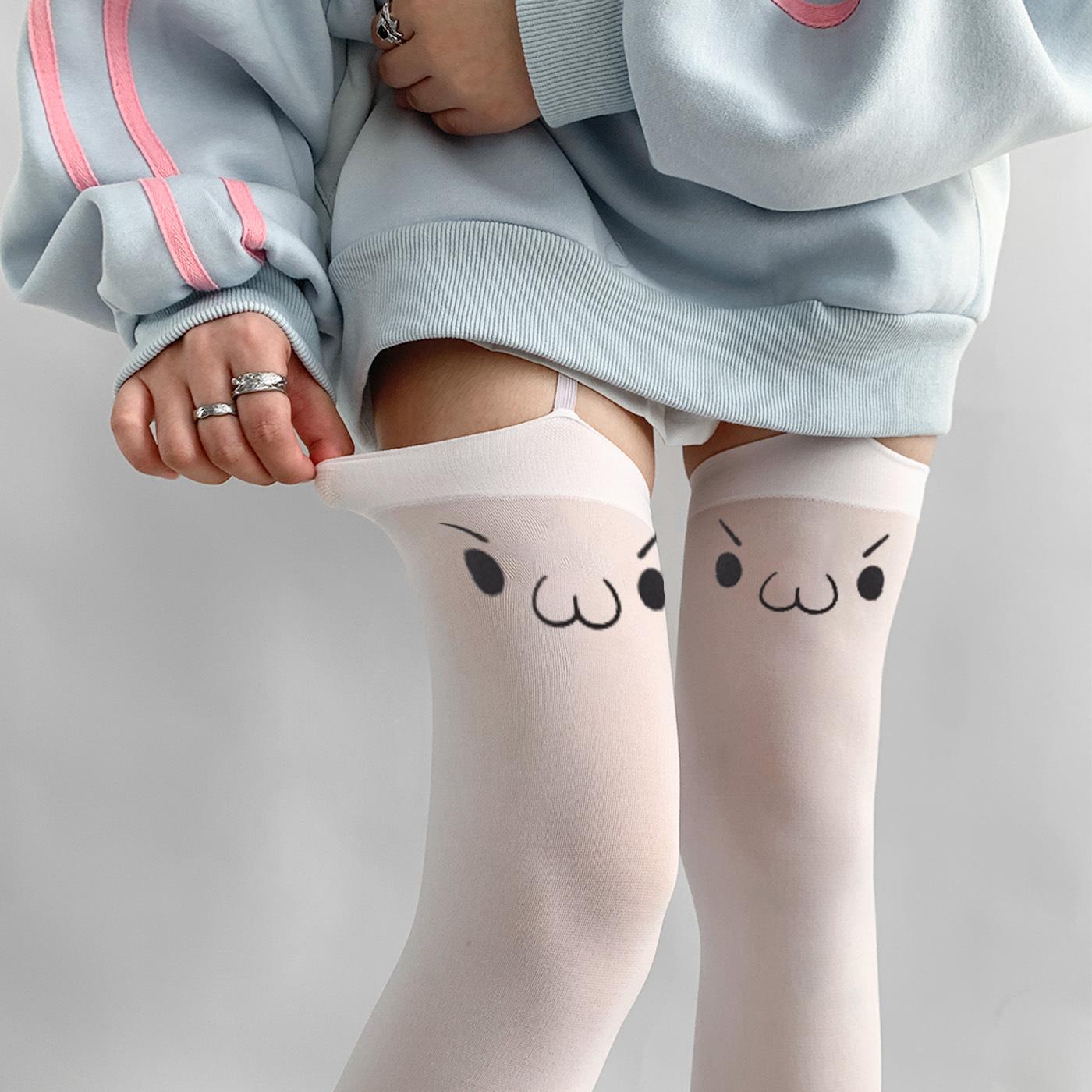 Tirantes de Expresión Bidimensional, Top Alto de Seda Blanca Estilo Japonés Emoticonos, Estampados Lindos, Calcetines Altos hasta el Muslo Subculturales, Deseo Puro