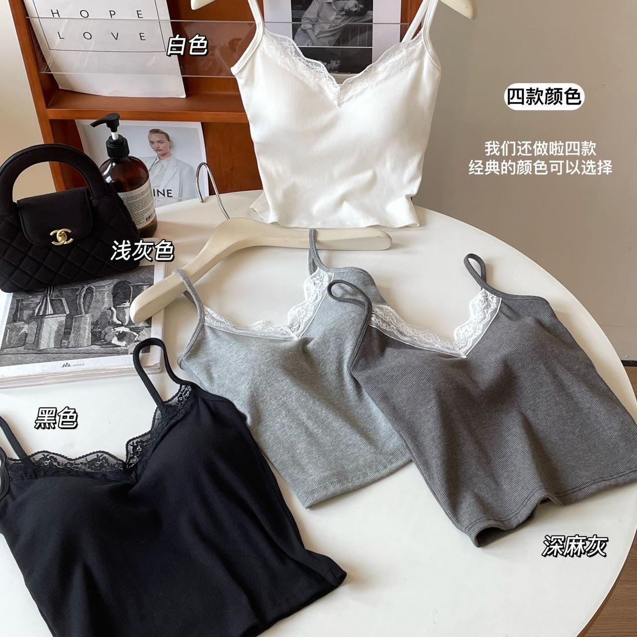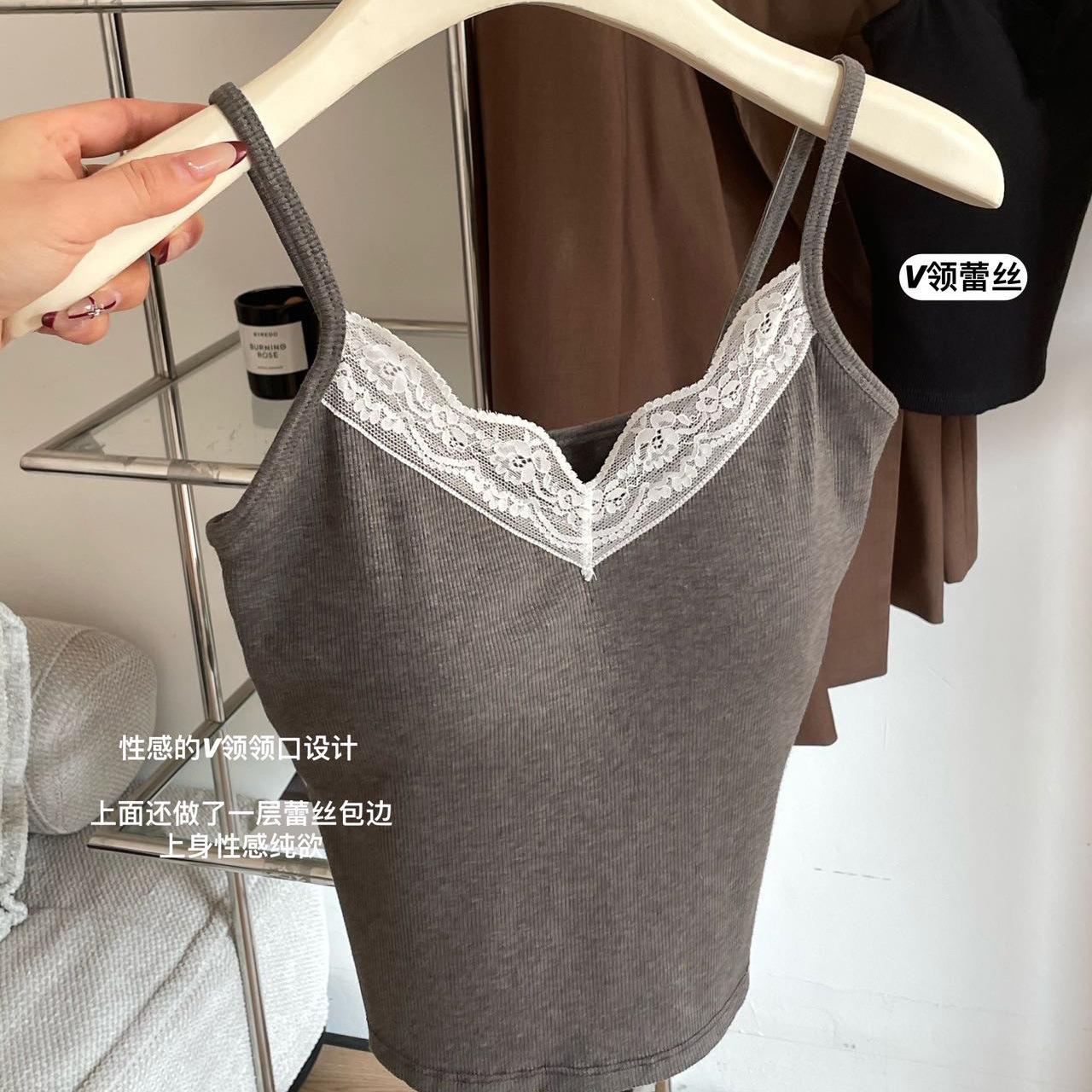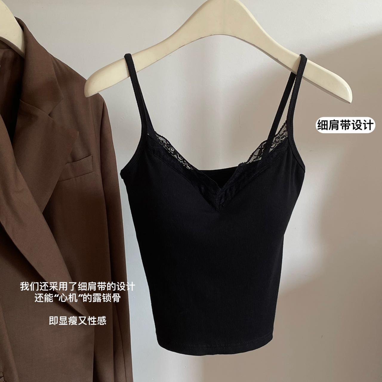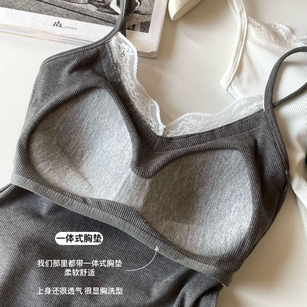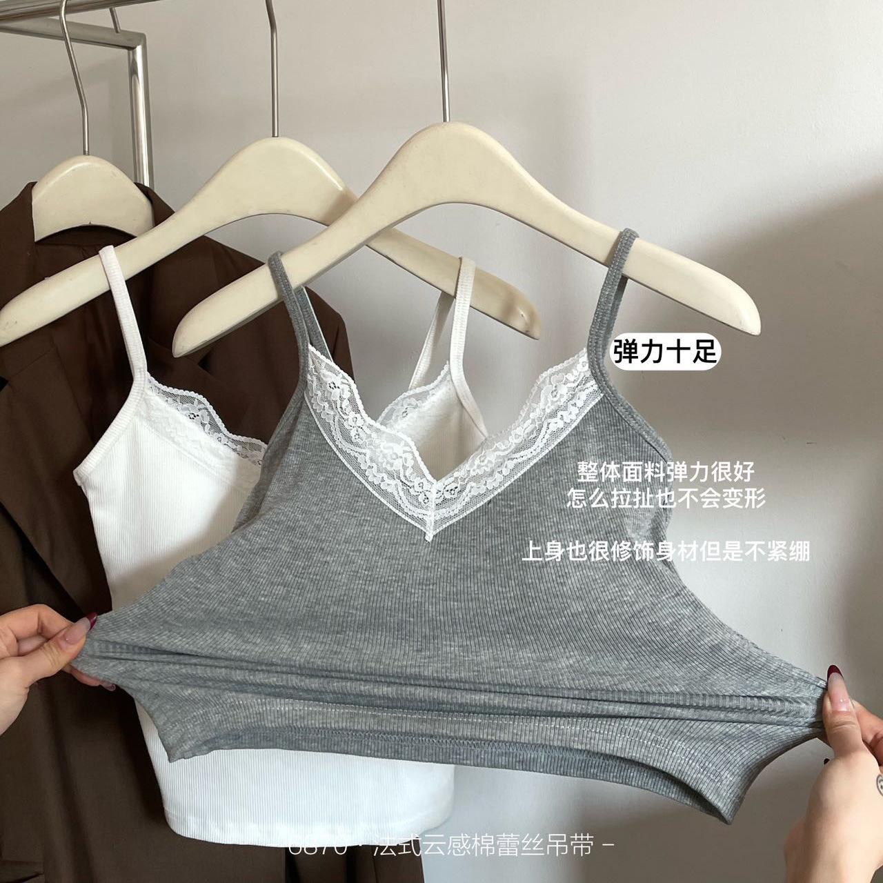 Top de tirantes finos de encaje para mujer con almohadilla para el pecho, chaleco adelgazante de algodón, interior y exterior, usable en la nube, de corte ajustado, 6870