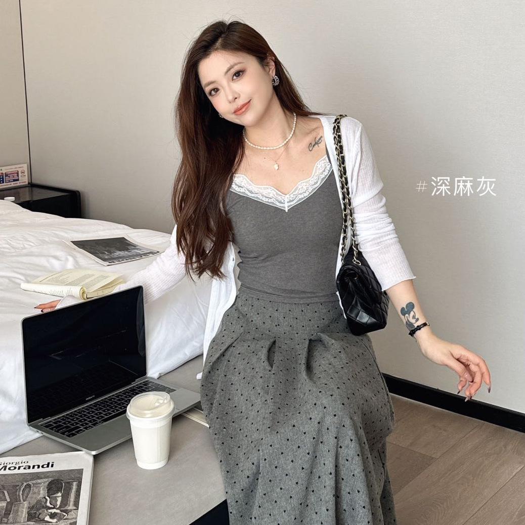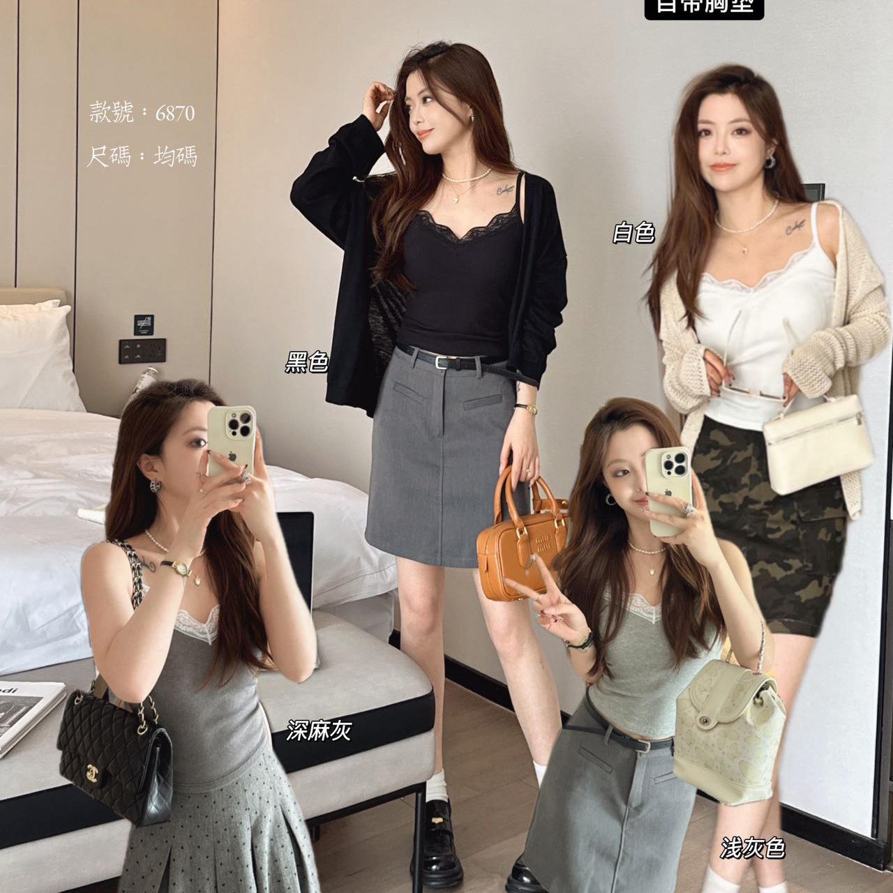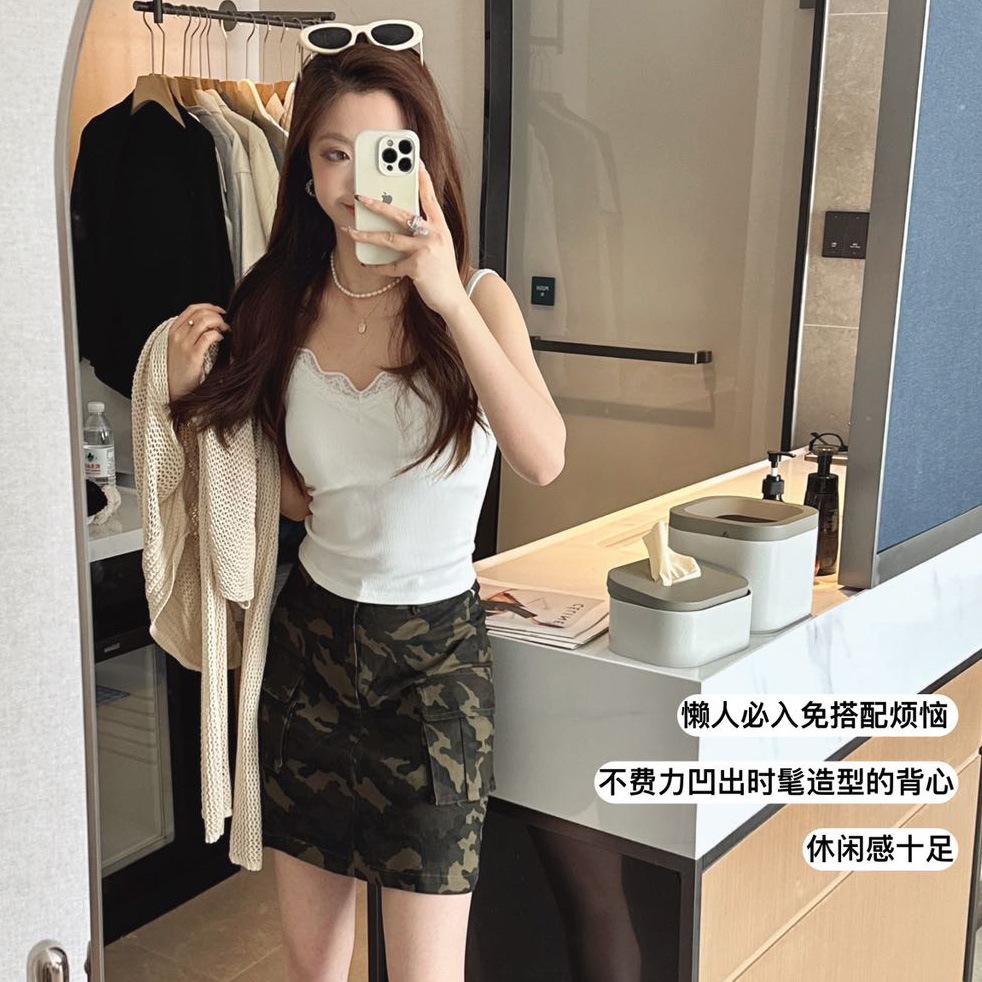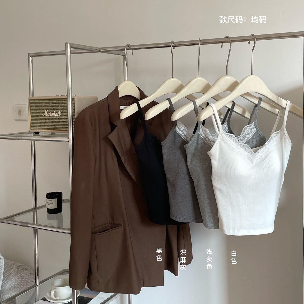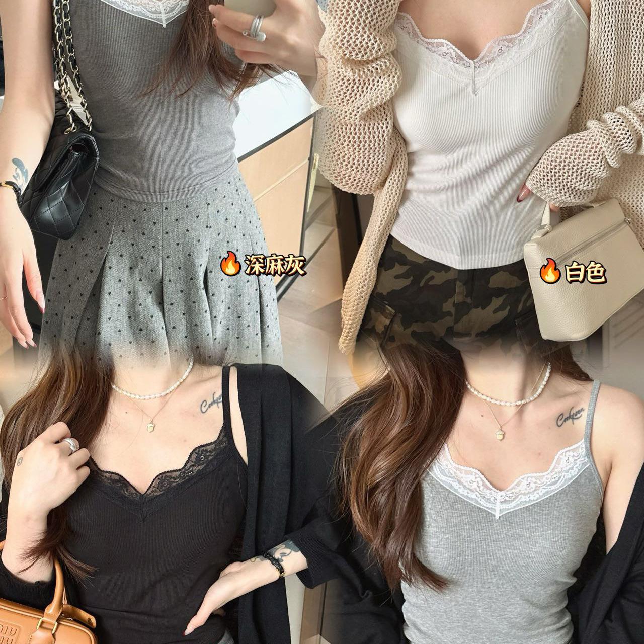 Top de tirantes finos de encaje para mujer con almohadilla para el pecho, chaleco adelgazante de algodón, interior y exterior, usable en la nube, de corte ajustado, 6870