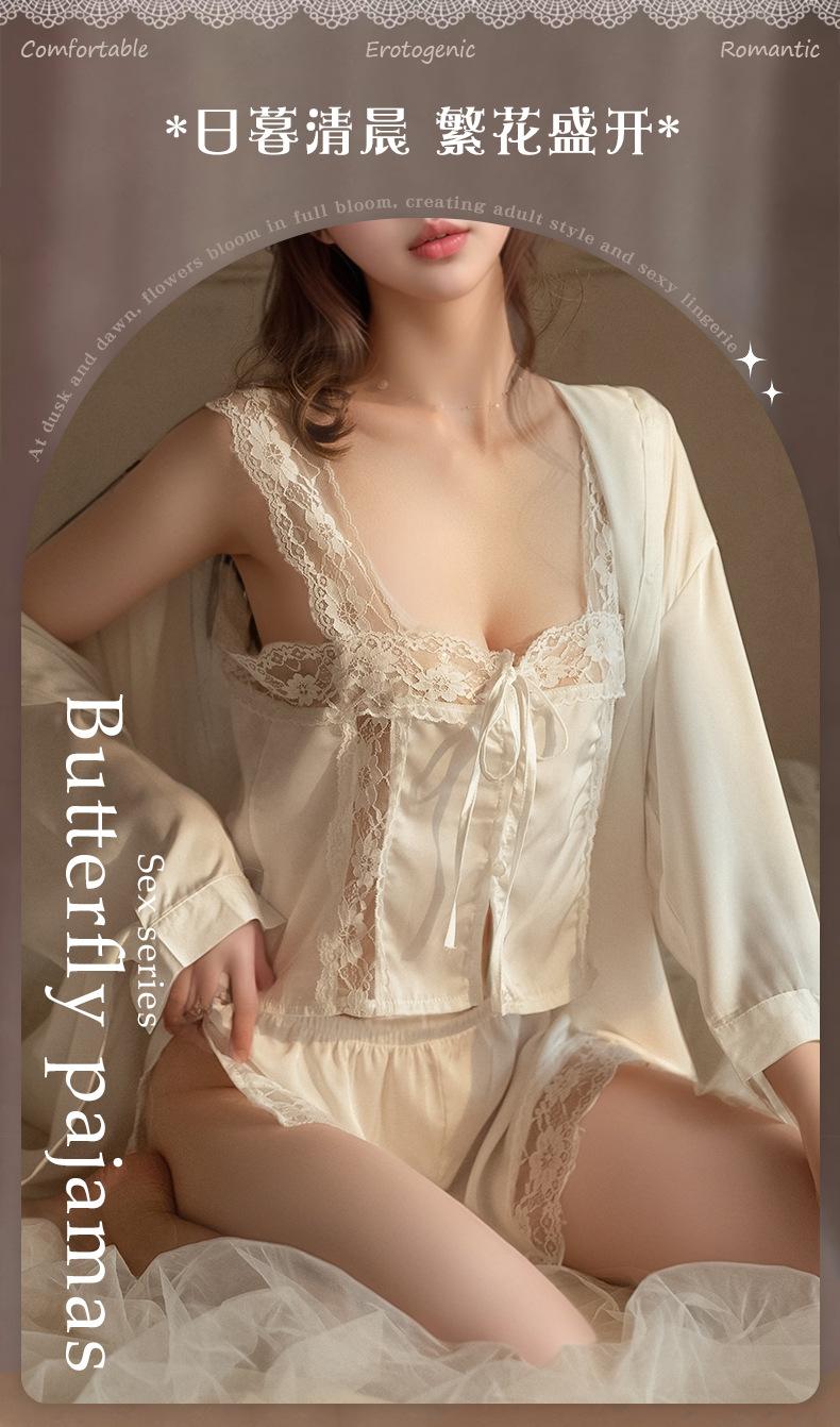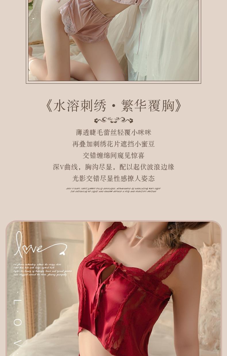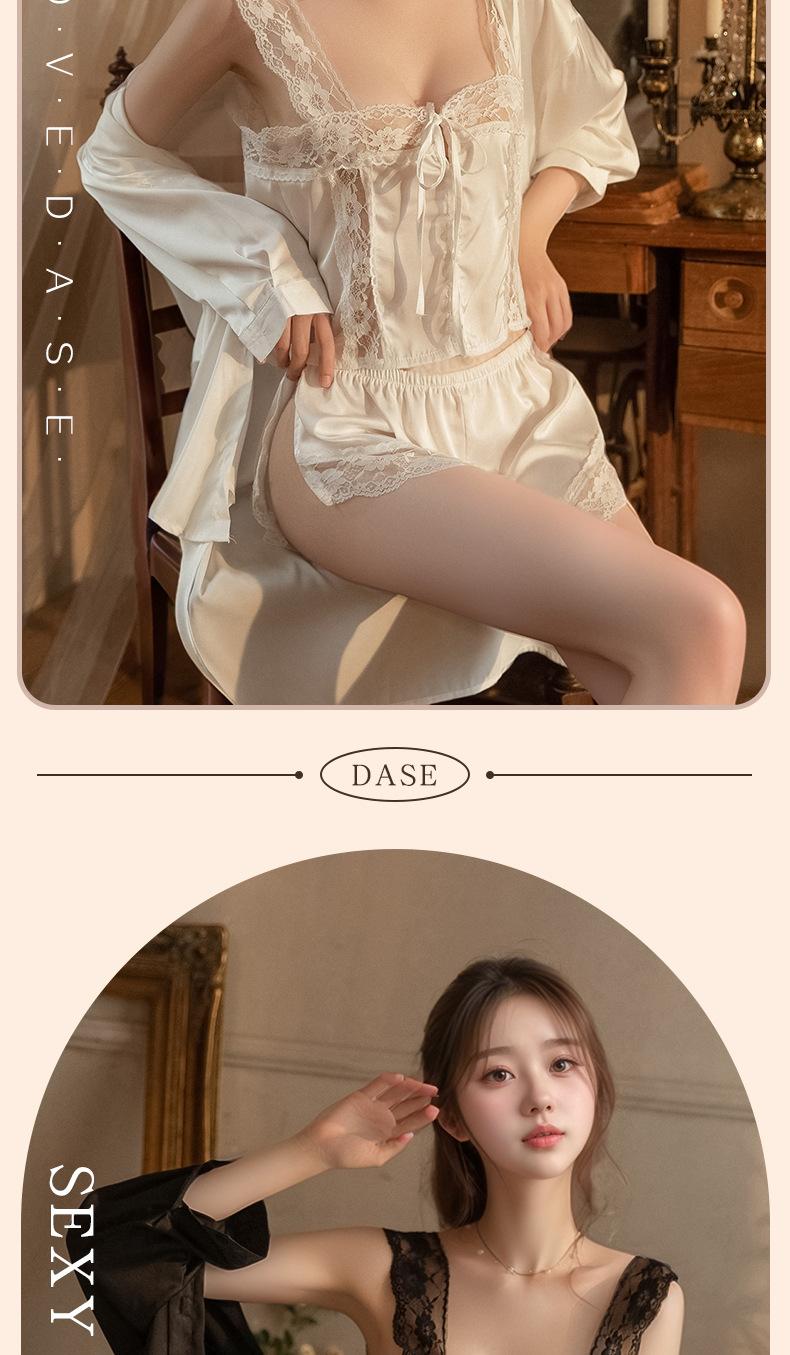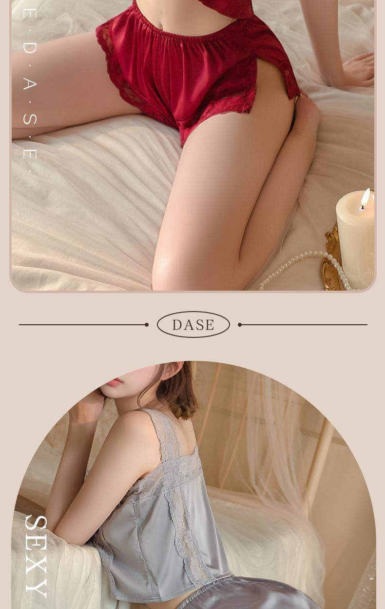 Camisón Sexy para Mujer con Tirantes de Encaje Transparente, Delicado Conjunto de Dormir de Alta Gama de Seda Sintética Estilo Francés 1760