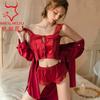Burgundy (top + shorts) + burgundy jacket (robe)