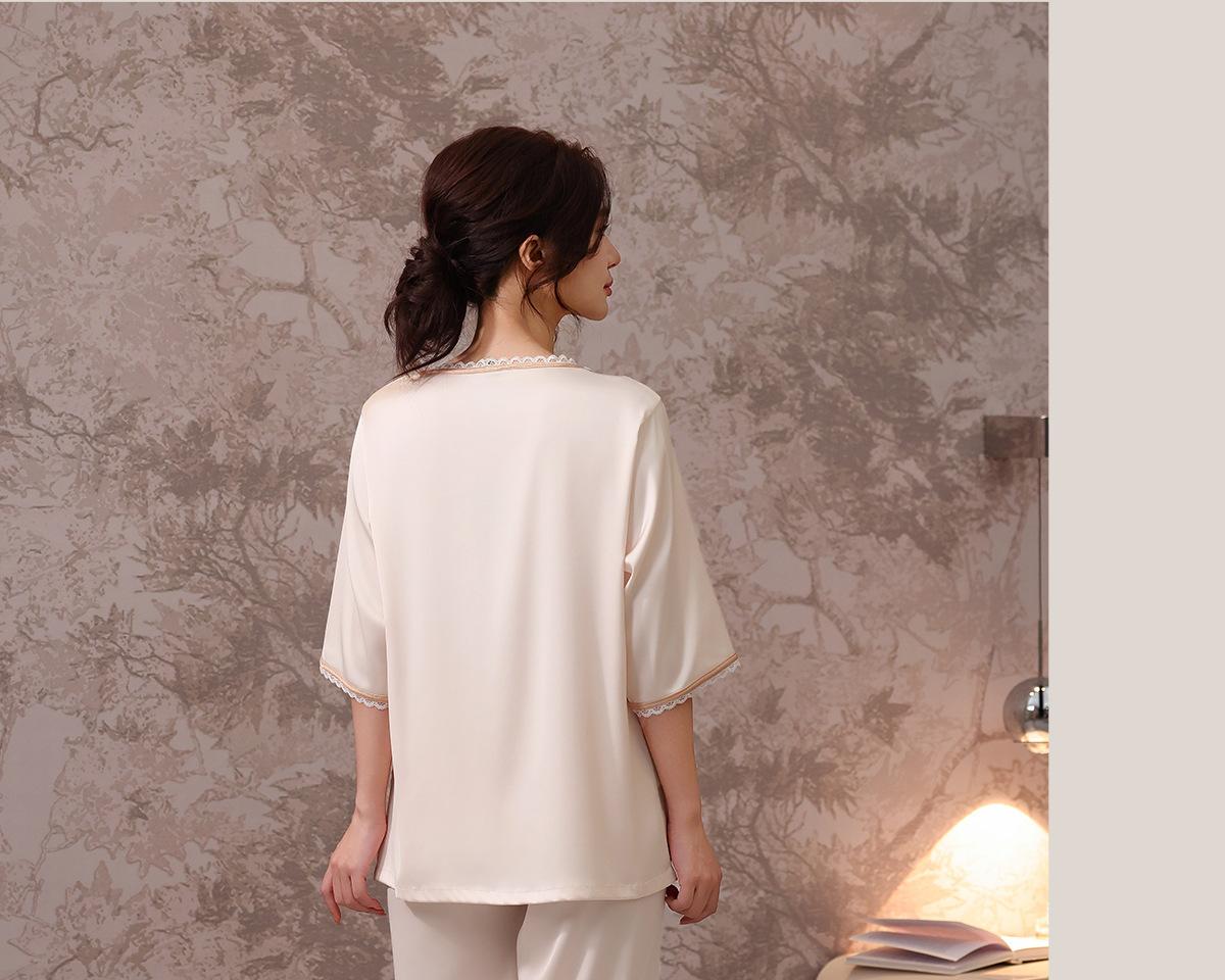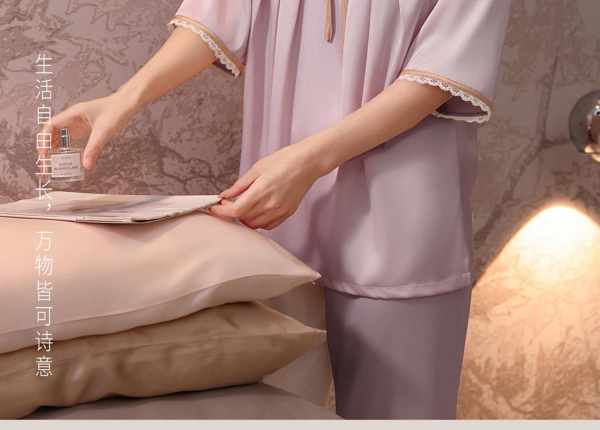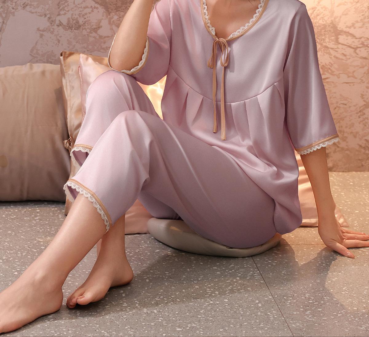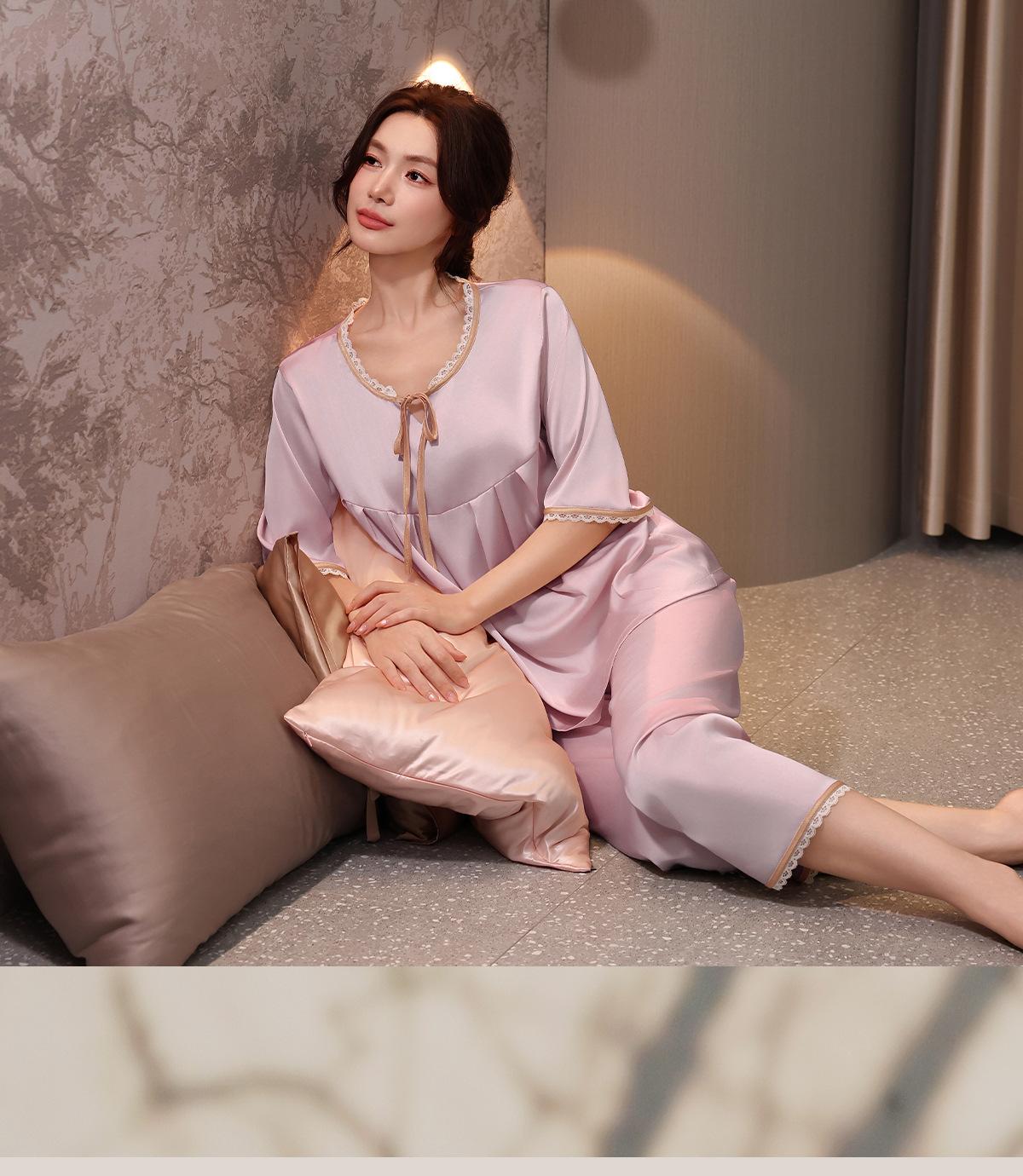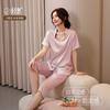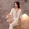[Seda de Hielo] Pijama Nuevo de Seda de Hielo para Mujer Verano Manga Corta Francés Deseo Puro Talla Grande Lujo Ligero Conjunto de Ropa para el Hogar