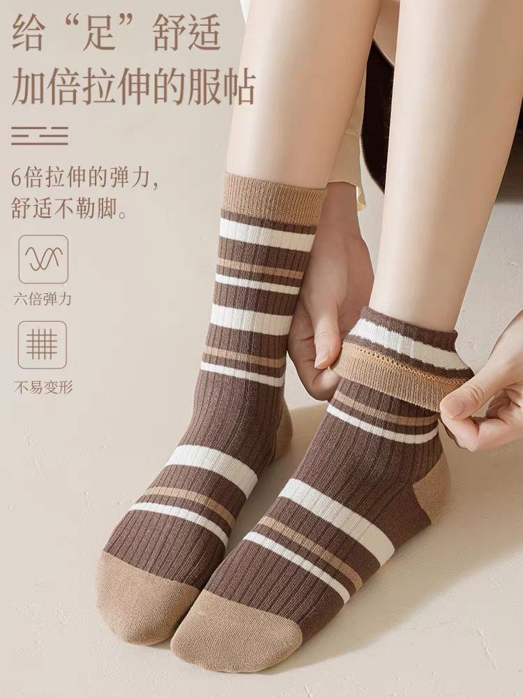 Calcetines de Otoño e Invierno para Mujer Color Maillard Calcetines de Media Caña Ins Versátiles Simples Calcetines de Rizo Estilo Preppy Medias Marrones