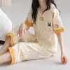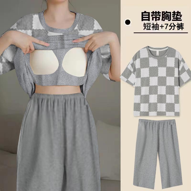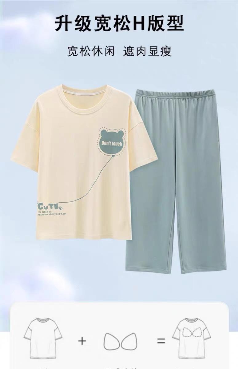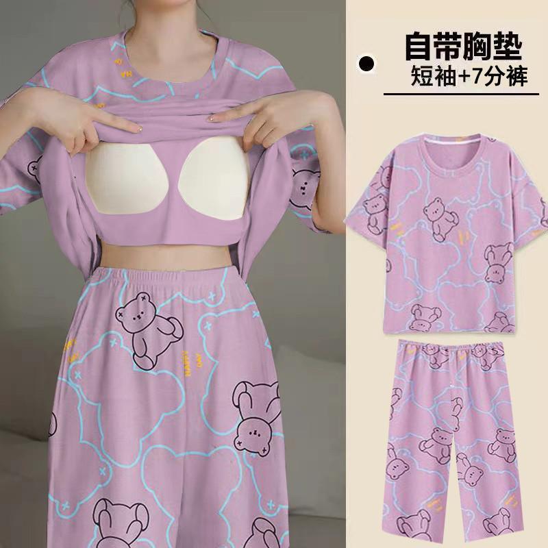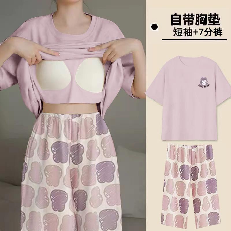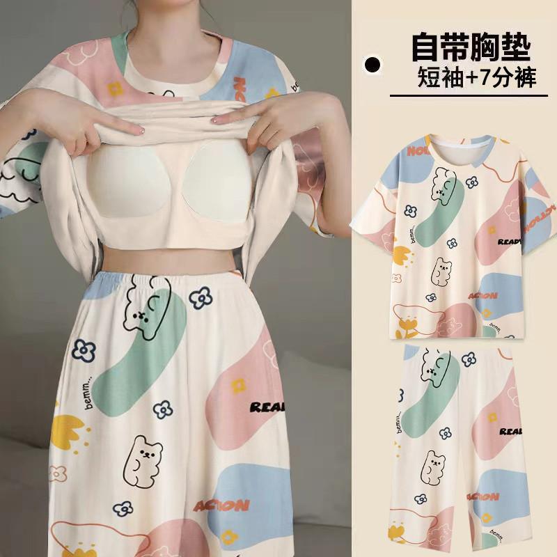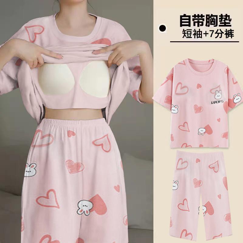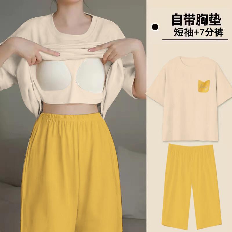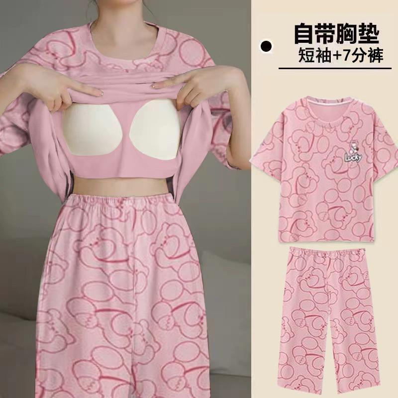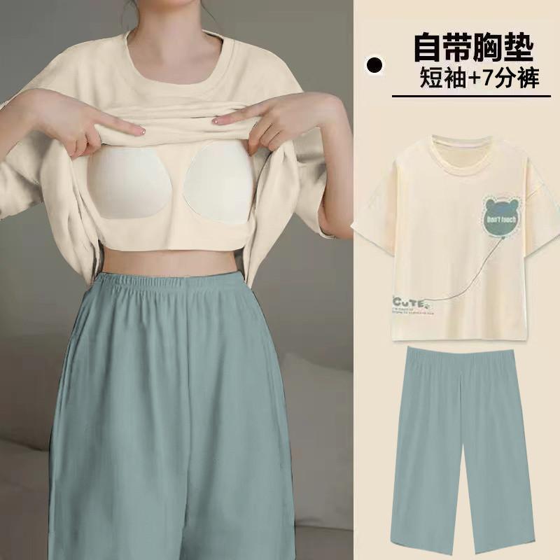 Pijama de Verano para Mujer con Almohadillas para el Busto, Pantalones Cortos Sueltos de Manga Corta, Delgada y Dulce, Conjunto de Ropa para el Hogar que Pueden Usar las Estudiantes