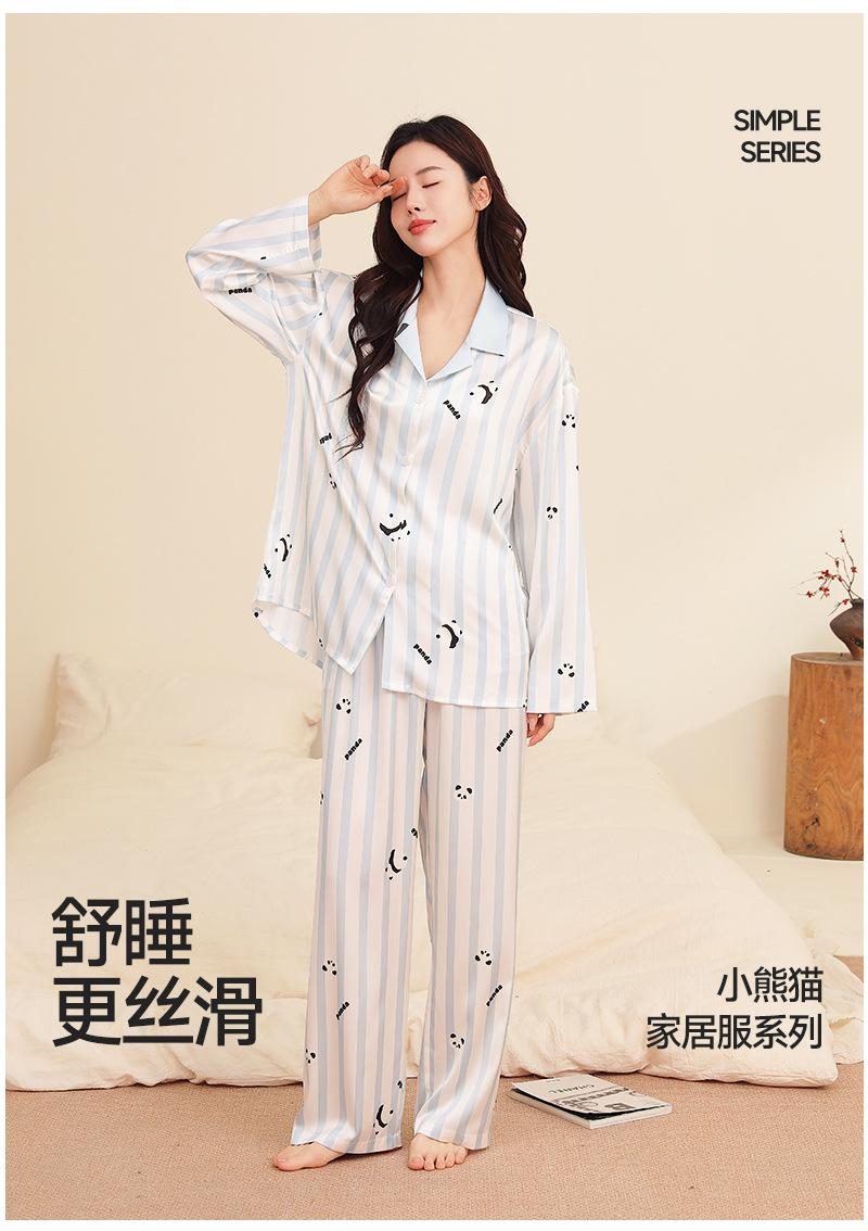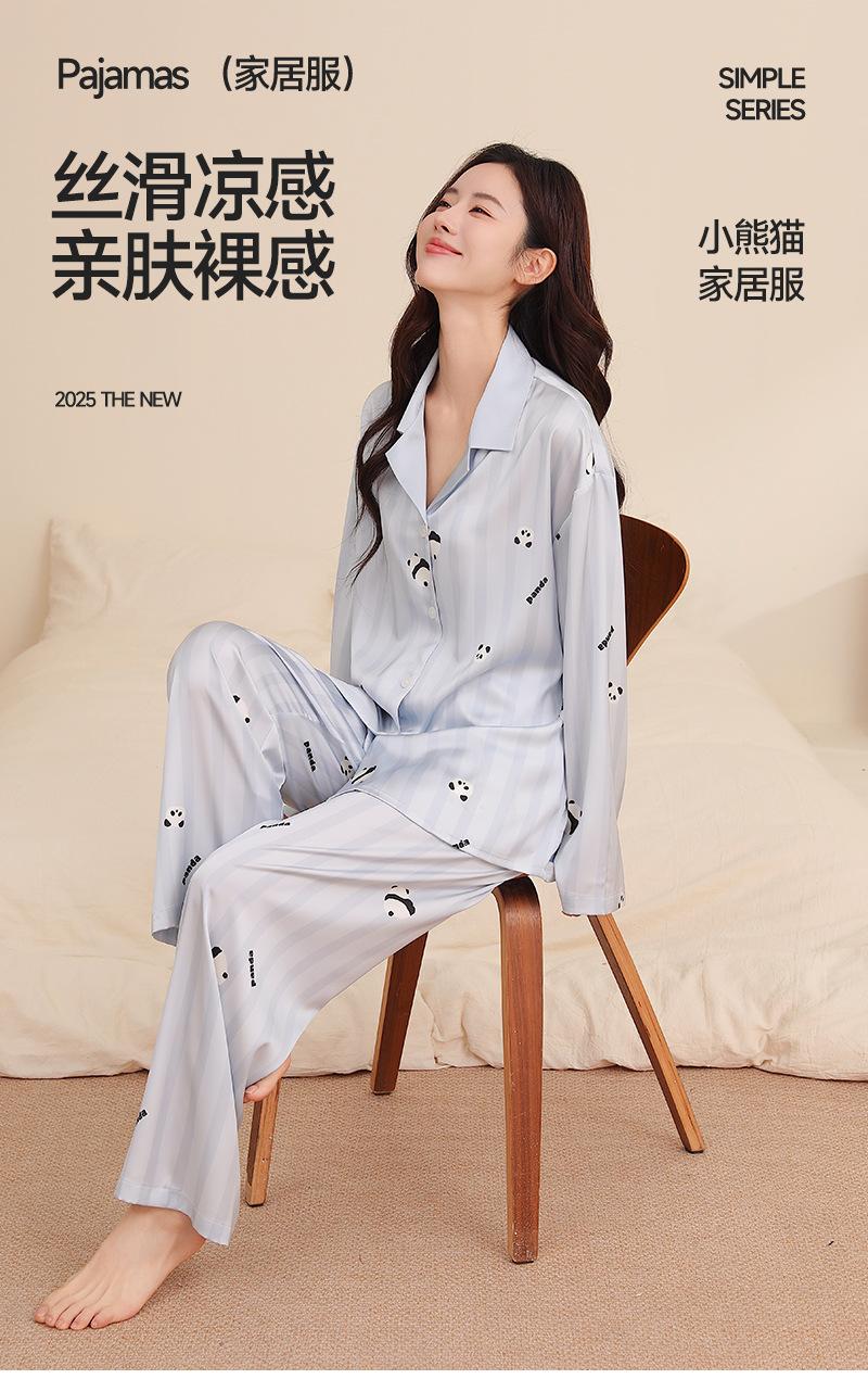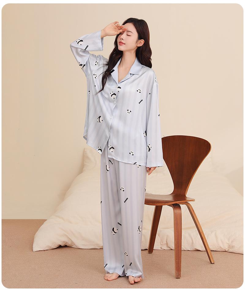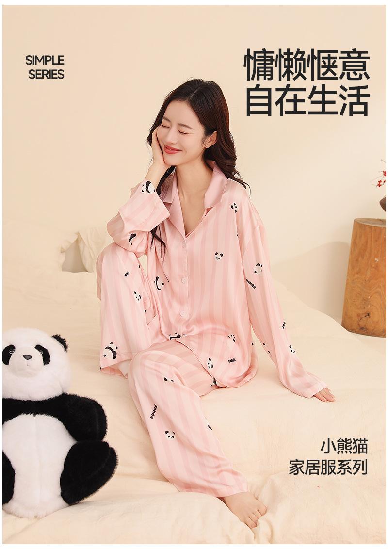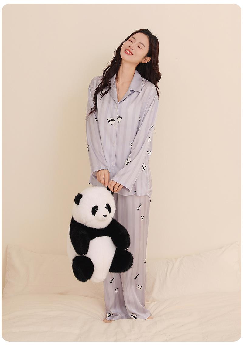Yu Zhaolin Primavera y Otoño Seda de Hielo Pijamas de Panda para Mujer Conjunto de Ropa para el Hogar de Manga Larga de Seda Simulada de Alta Gama