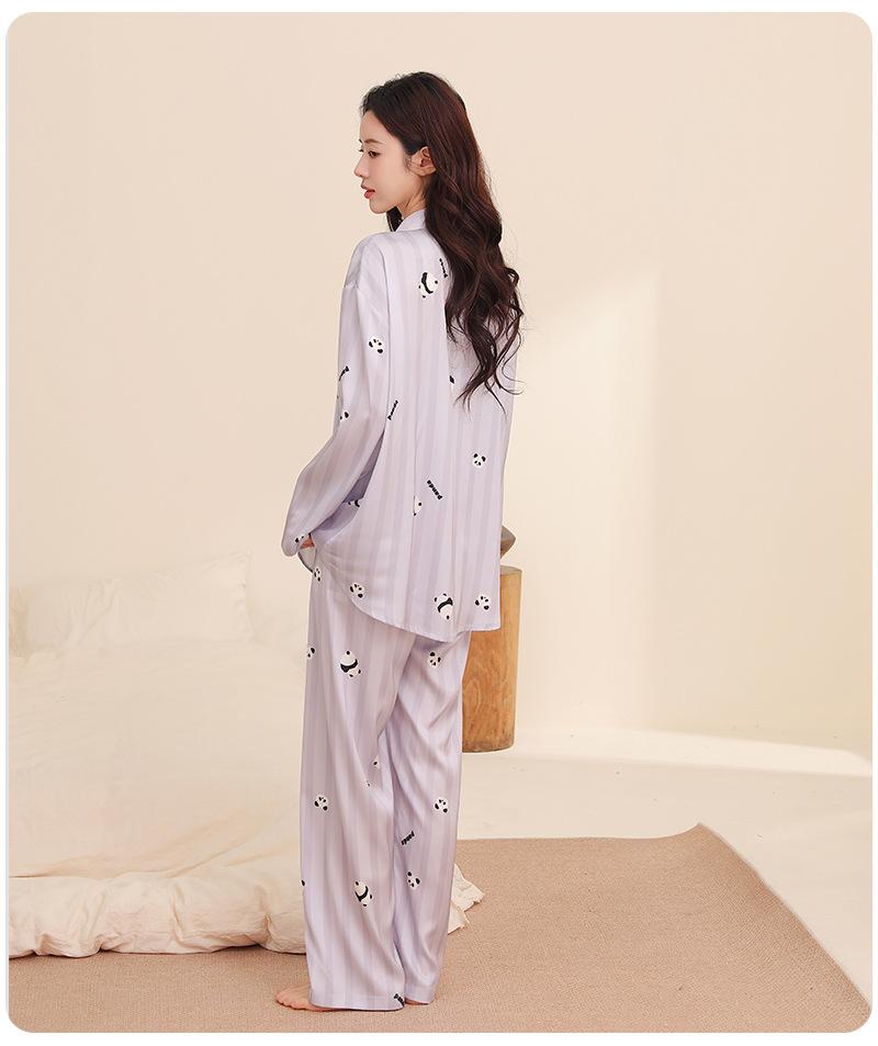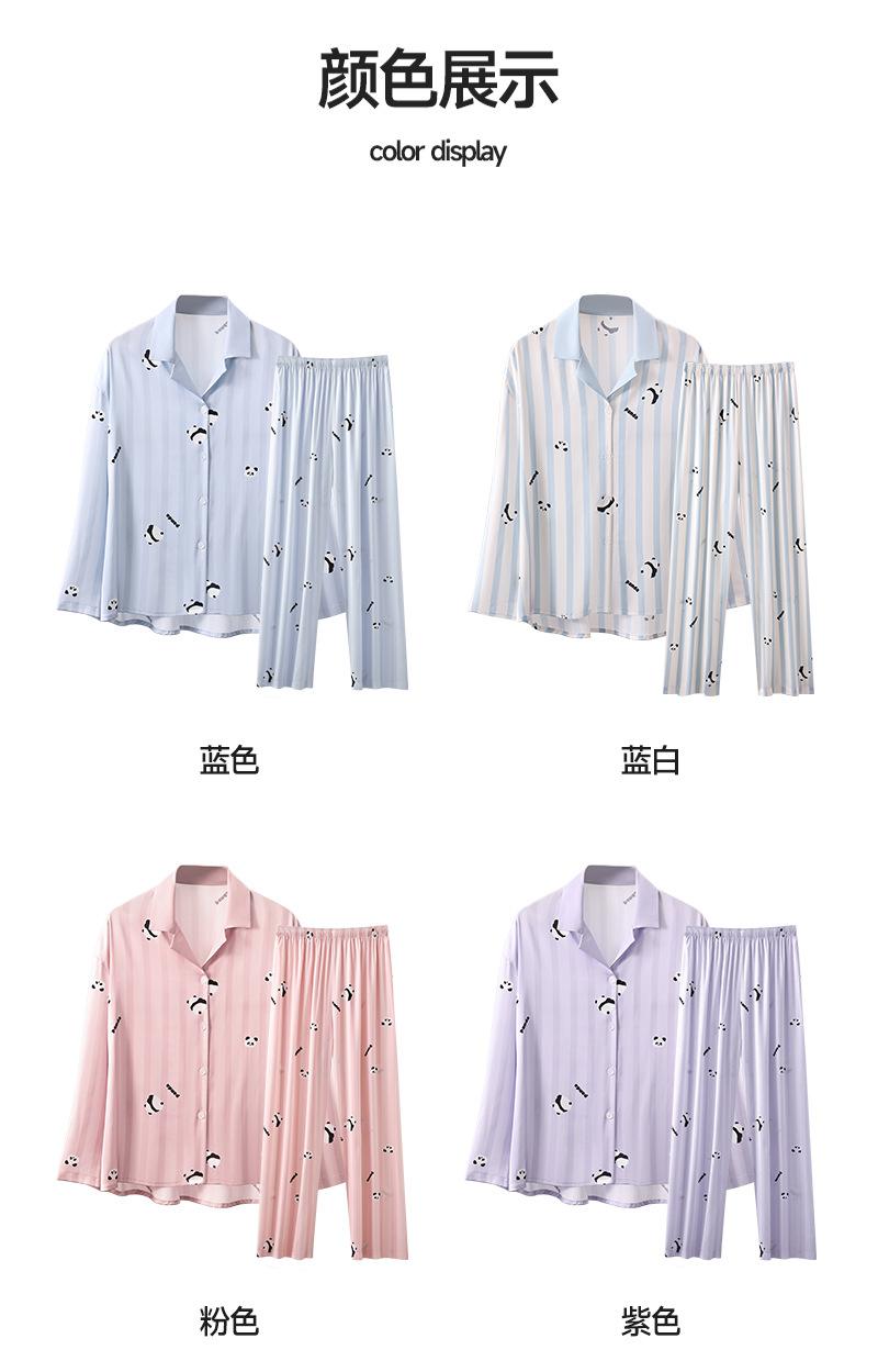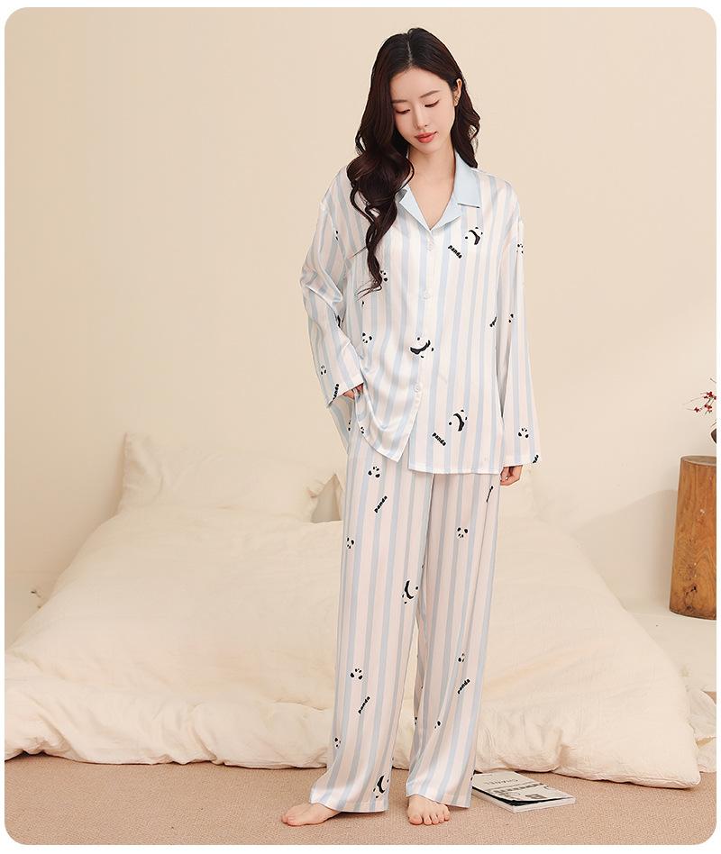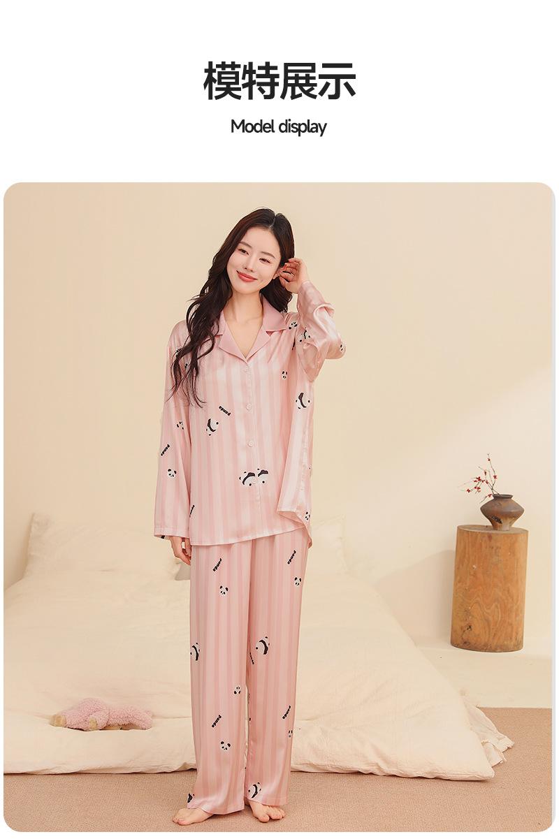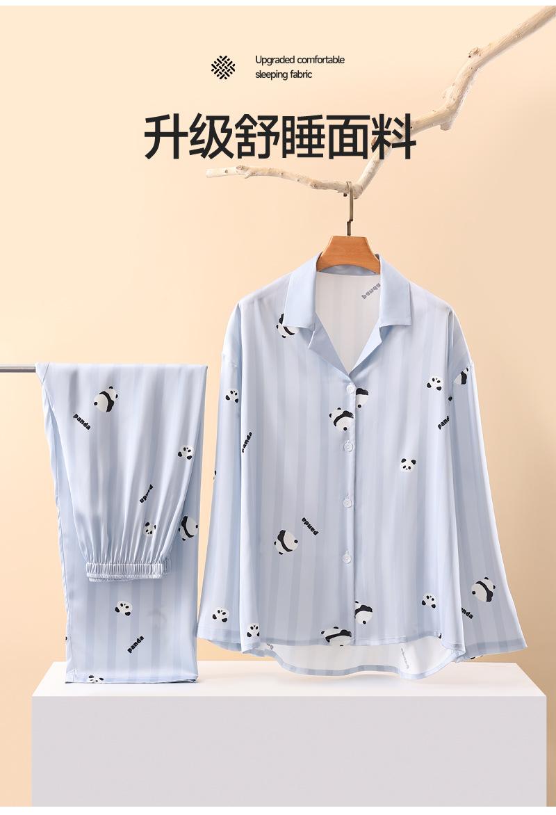 Yu Zhaolin Primavera y Otoño Seda de Hielo Pijamas de Panda para Mujer Conjunto de Ropa para el Hogar de Manga Larga de Seda Simulada de Alta Gama