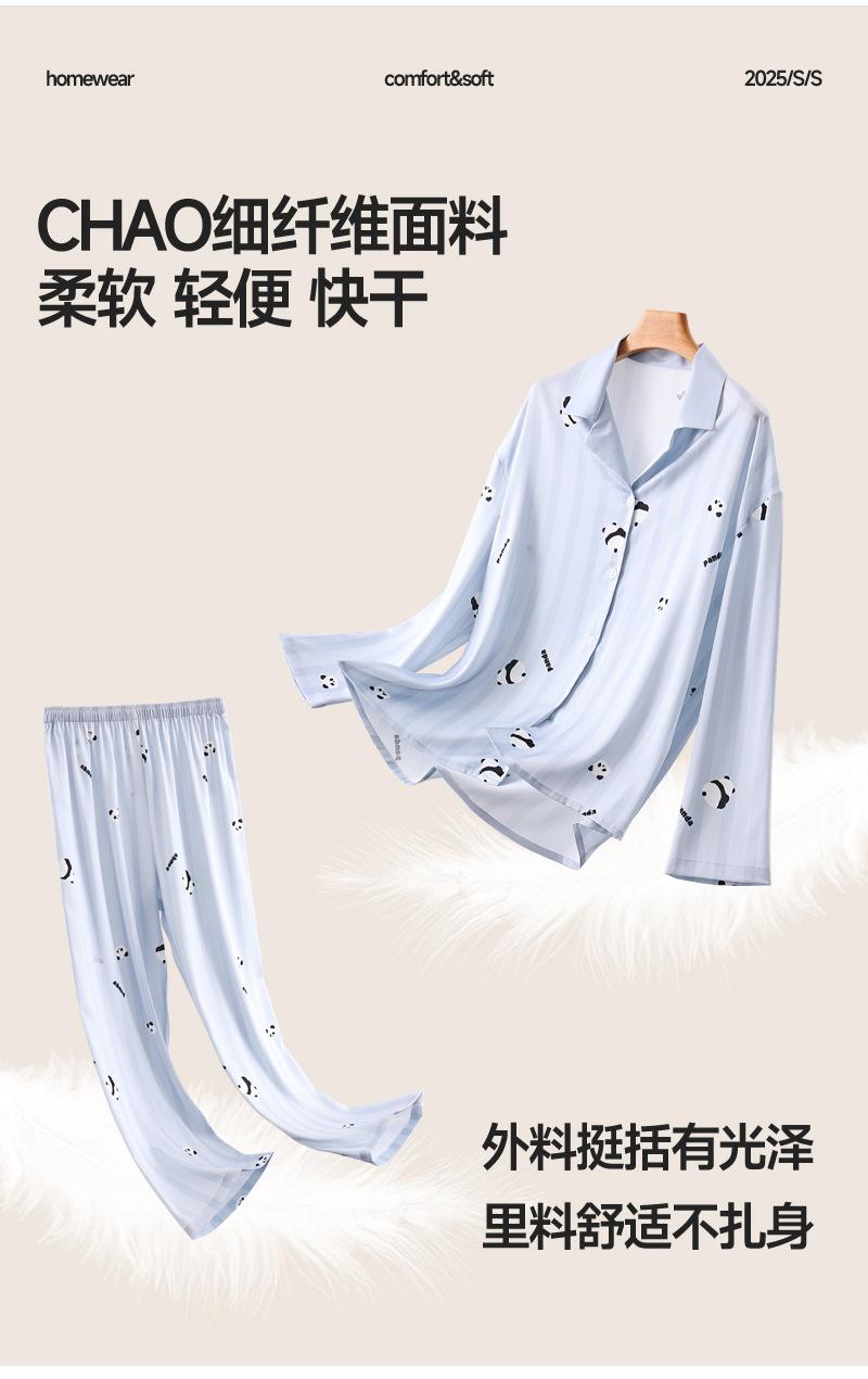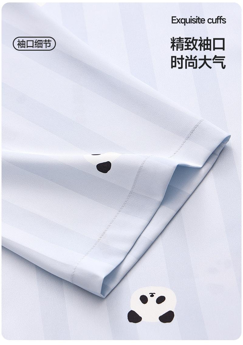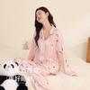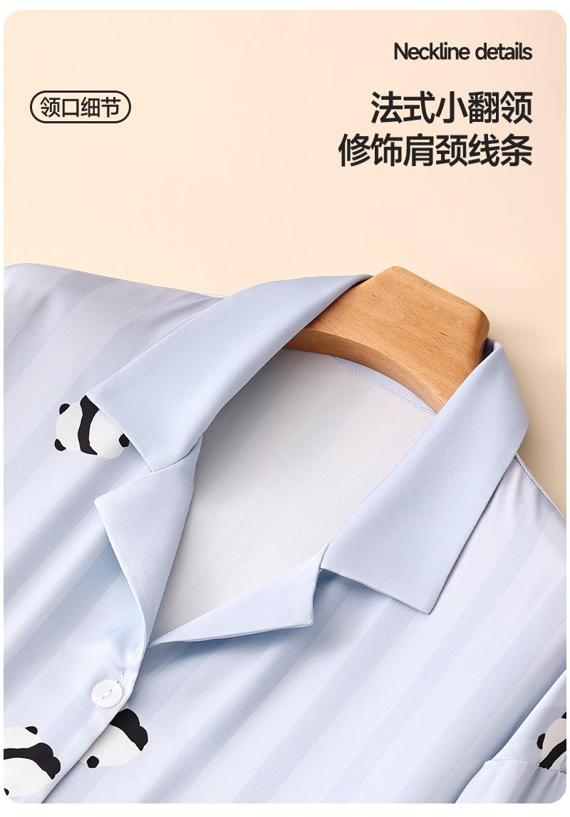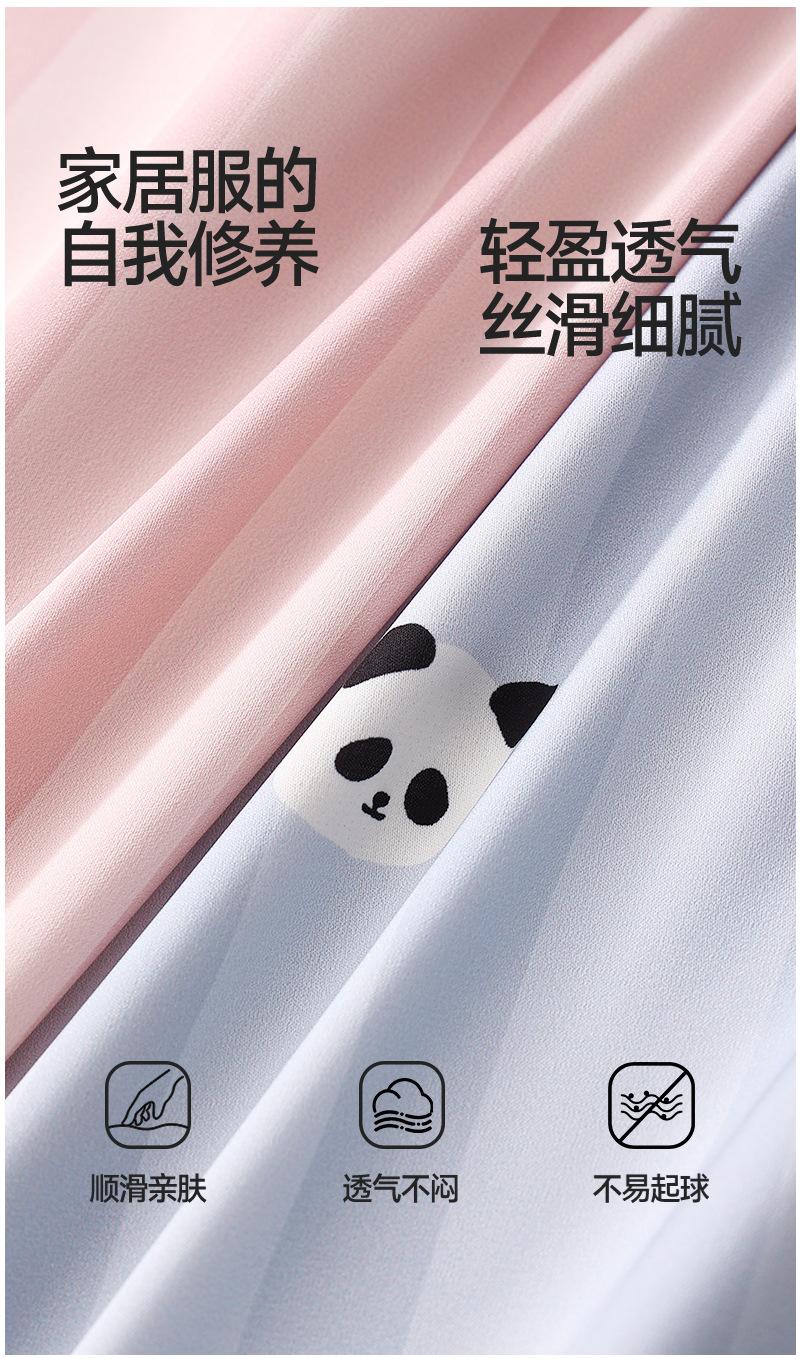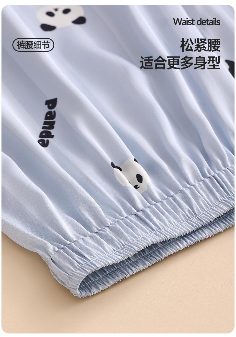 Yu Zhaolin Primavera y Otoño Seda de Hielo Pijamas de Panda para Mujer Conjunto de Ropa para el Hogar de Manga Larga de Seda Simulada de Alta Gama