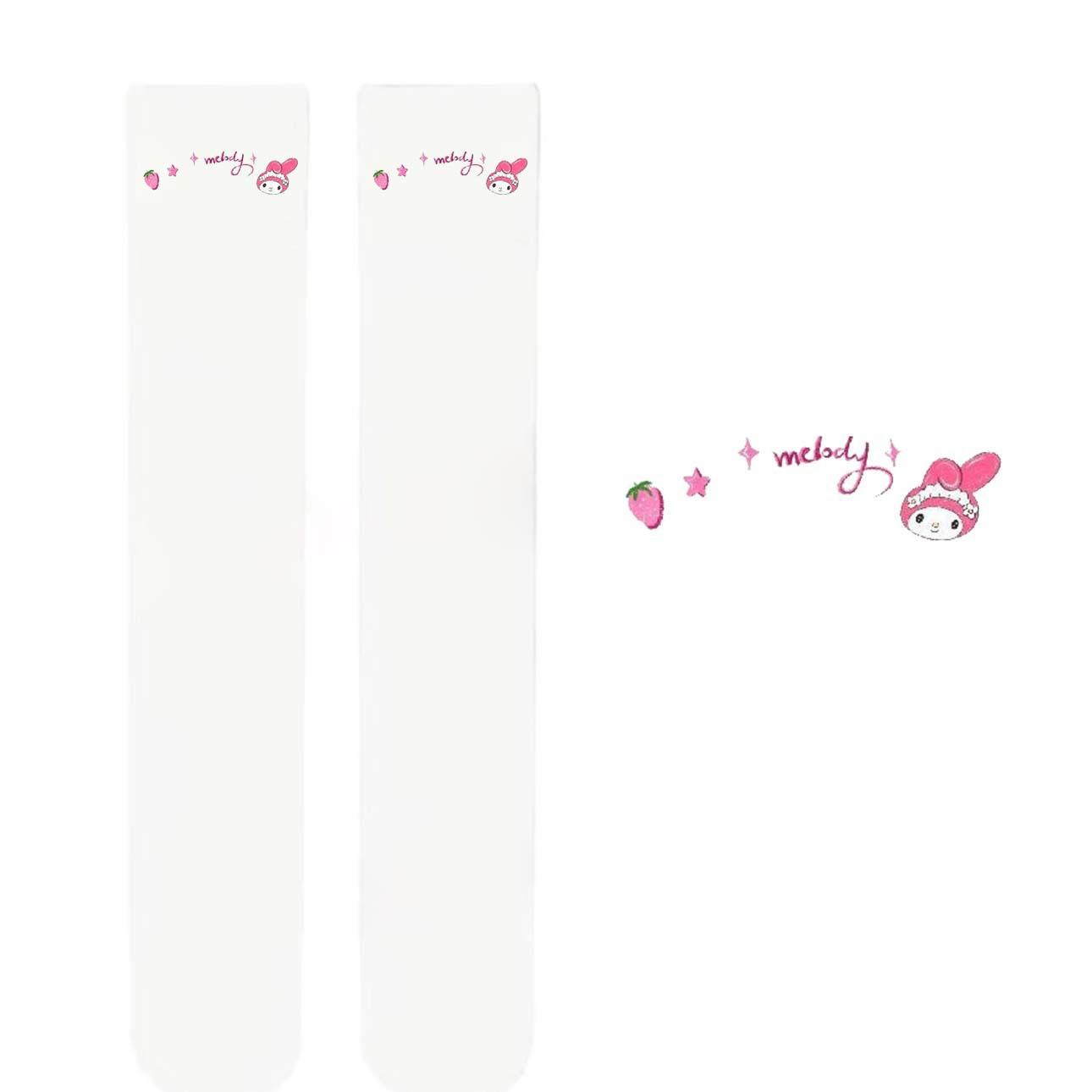 Calcetines Largos de Tubo de Conejo Lindo Sexy Blancos por Encima de la Rodilla Anime Bidimensional Terciopelo Estilo Japonés Estampados Hasta el Muslo