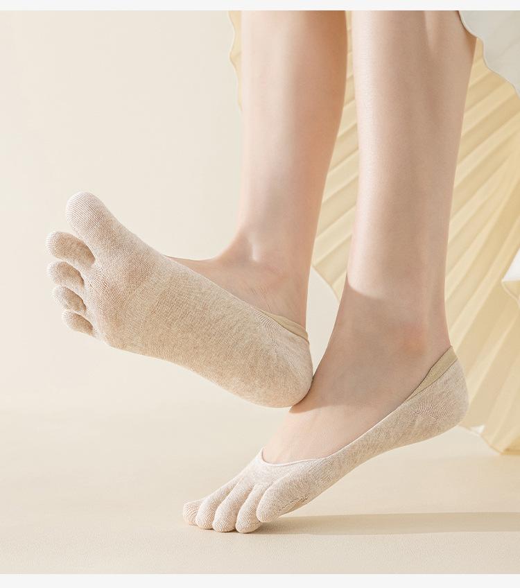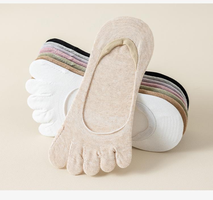 Calcetines de Verano para Mujer, Calcetines de Barco Finos de Cinco Dedos, Calcetines Invisibles de Boca Baja para Mujer, Talones que No se Caen, Calcetines de Malla Antideslizante sin Costuras con Dedos Separados