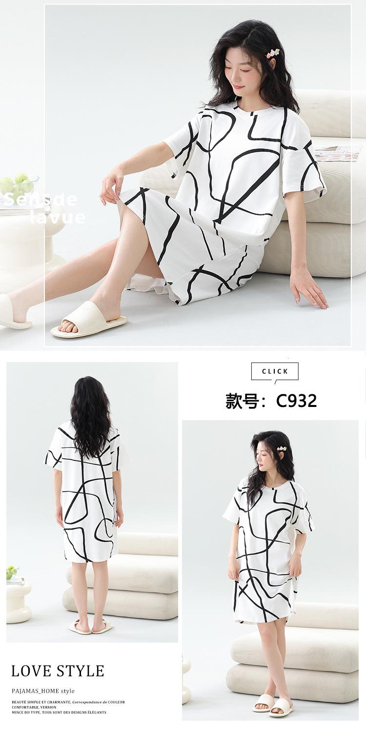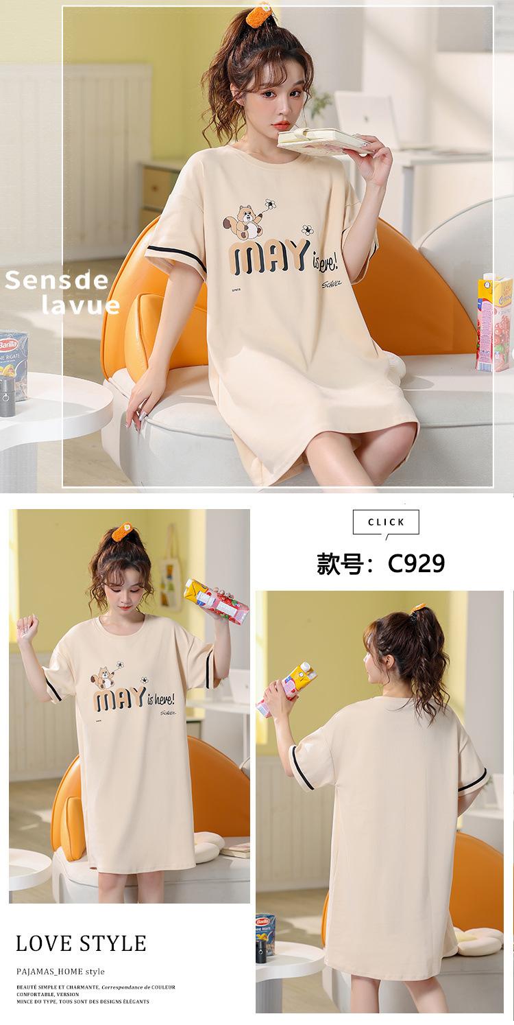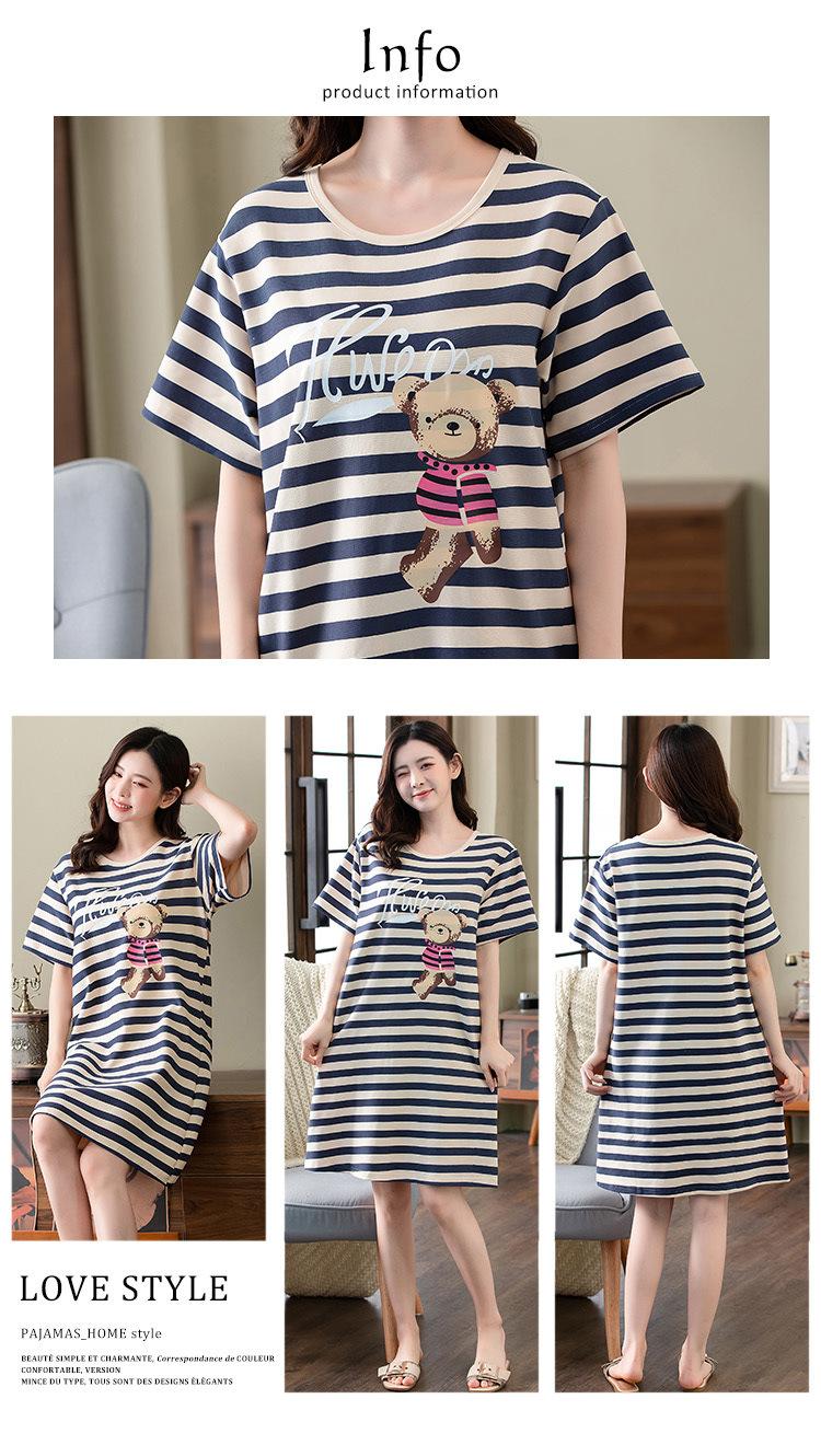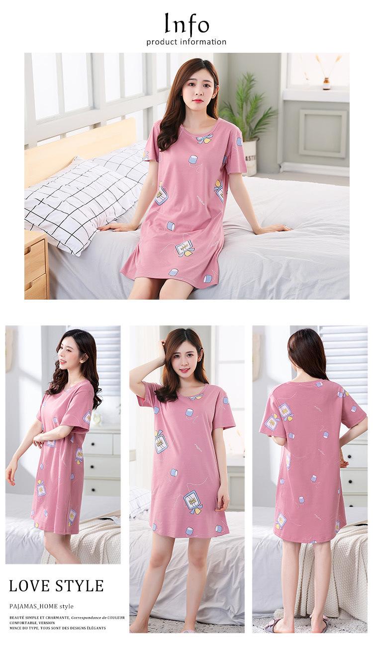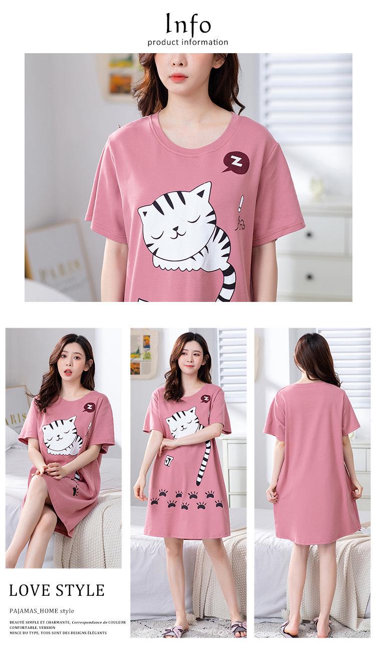 Camisón de Manga Corta para Estudiantes de Verano, Lindo Camisón de Algodón para Señoritas de Talla Grande que se Puede Usar Afuera