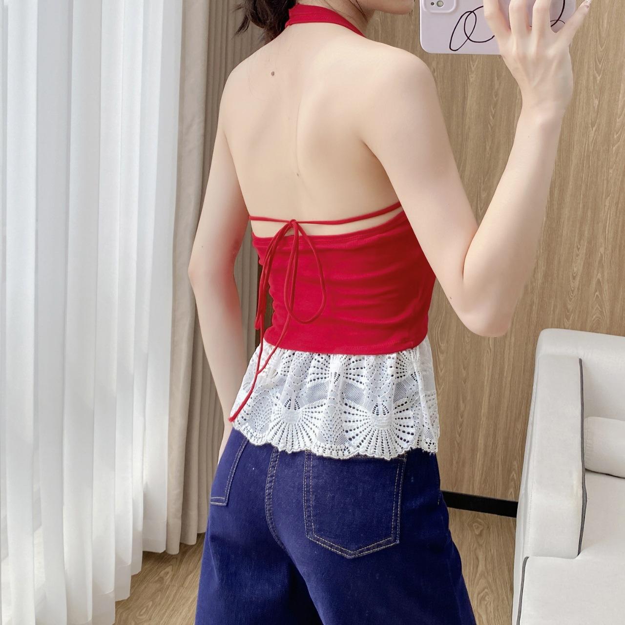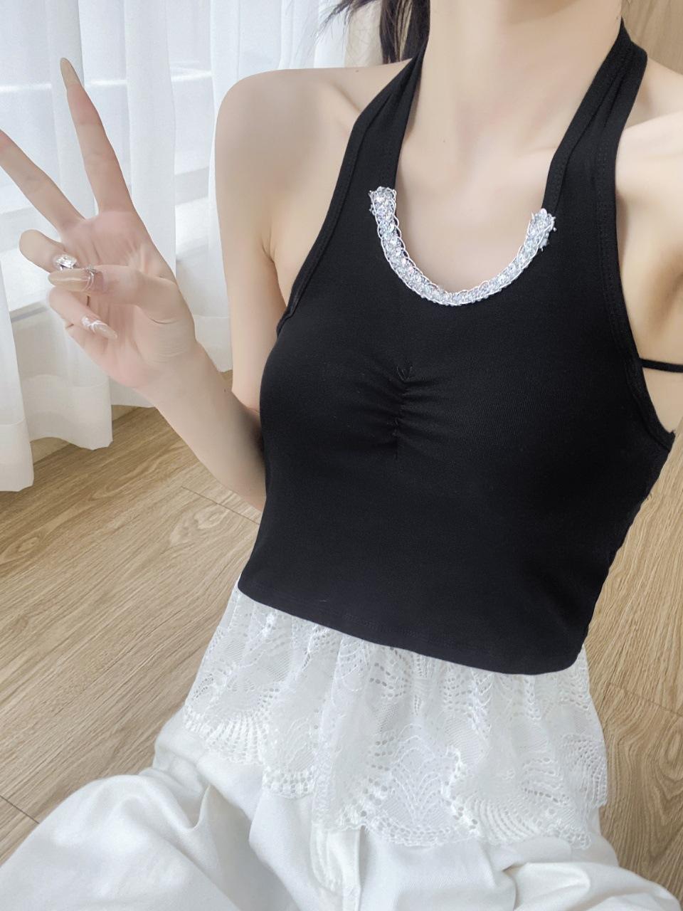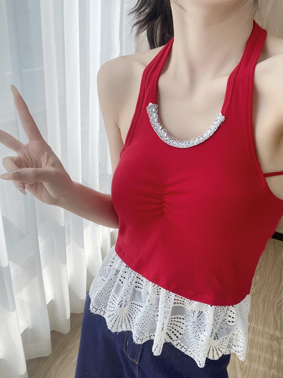 Sexy Puro Deseo Grande Espalda Descubierta Cuello Colgante Dobladillo Falda Hermoso Chaleco de Tirantes Traseros Cinturón Almohadilla para el Pecho Ropa Exterior Top de Moda Interior para Mujeres