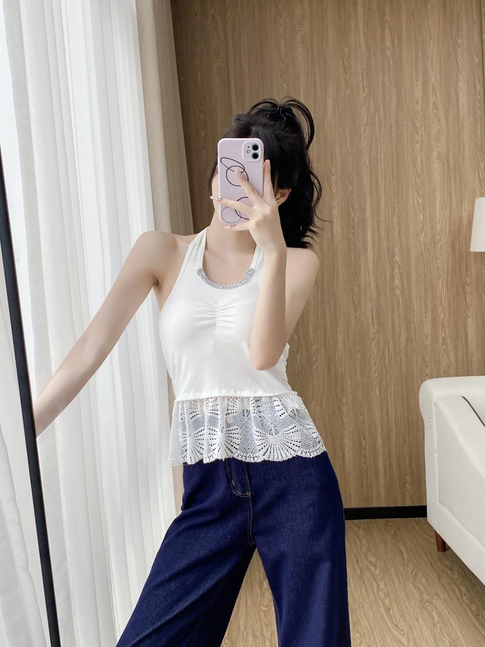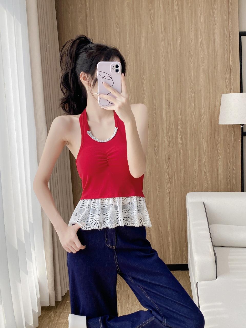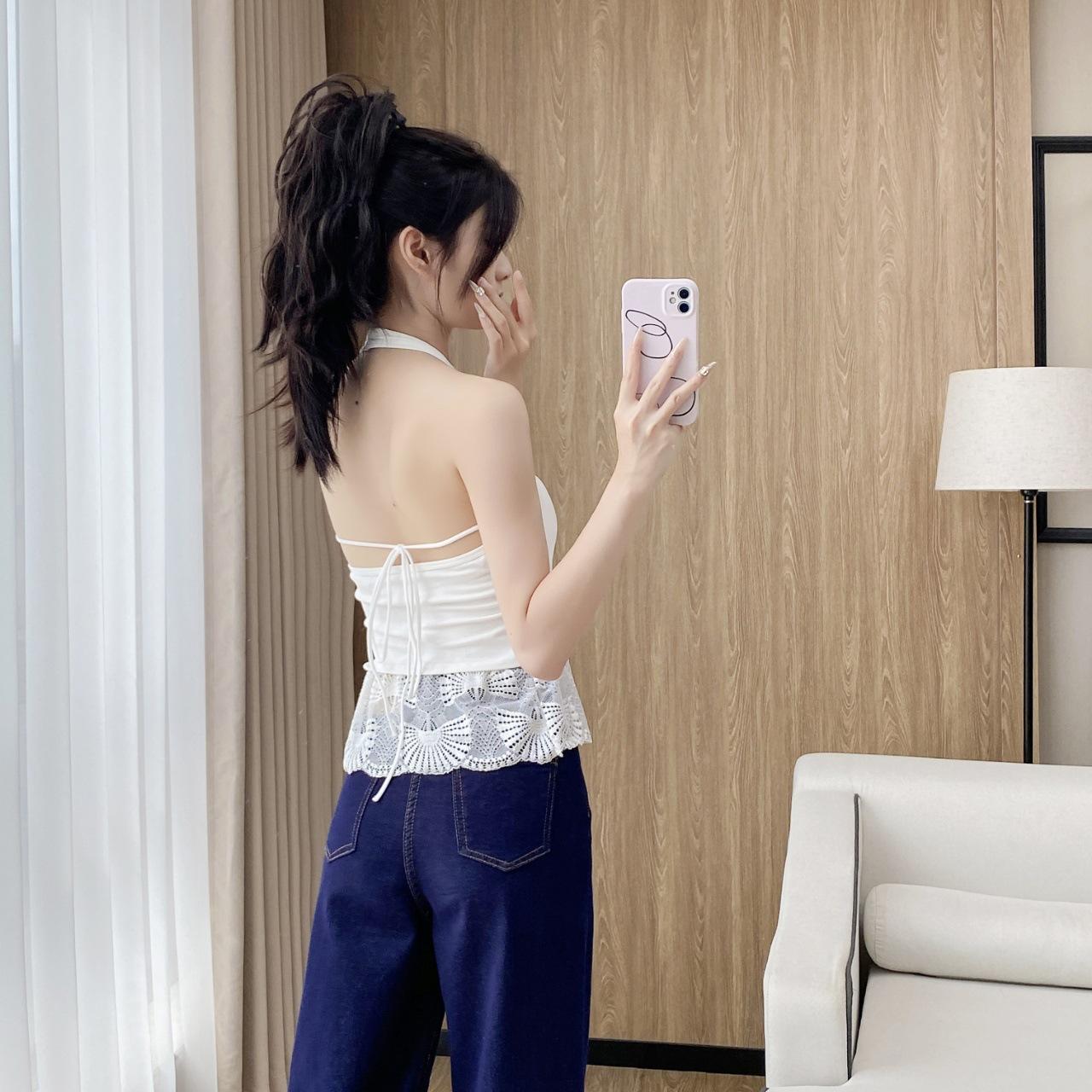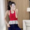 Sexy Puro Deseo Grande Espalda Descubierta Cuello Colgante Dobladillo Falda Hermoso Chaleco de Tirantes Traseros Cinturón Almohadilla para el Pecho Ropa Exterior Top de Moda Interior para Mujeres