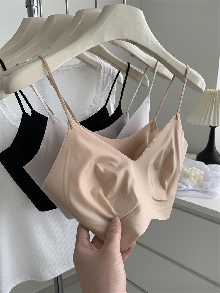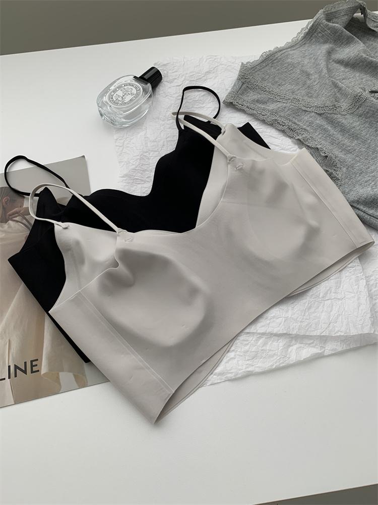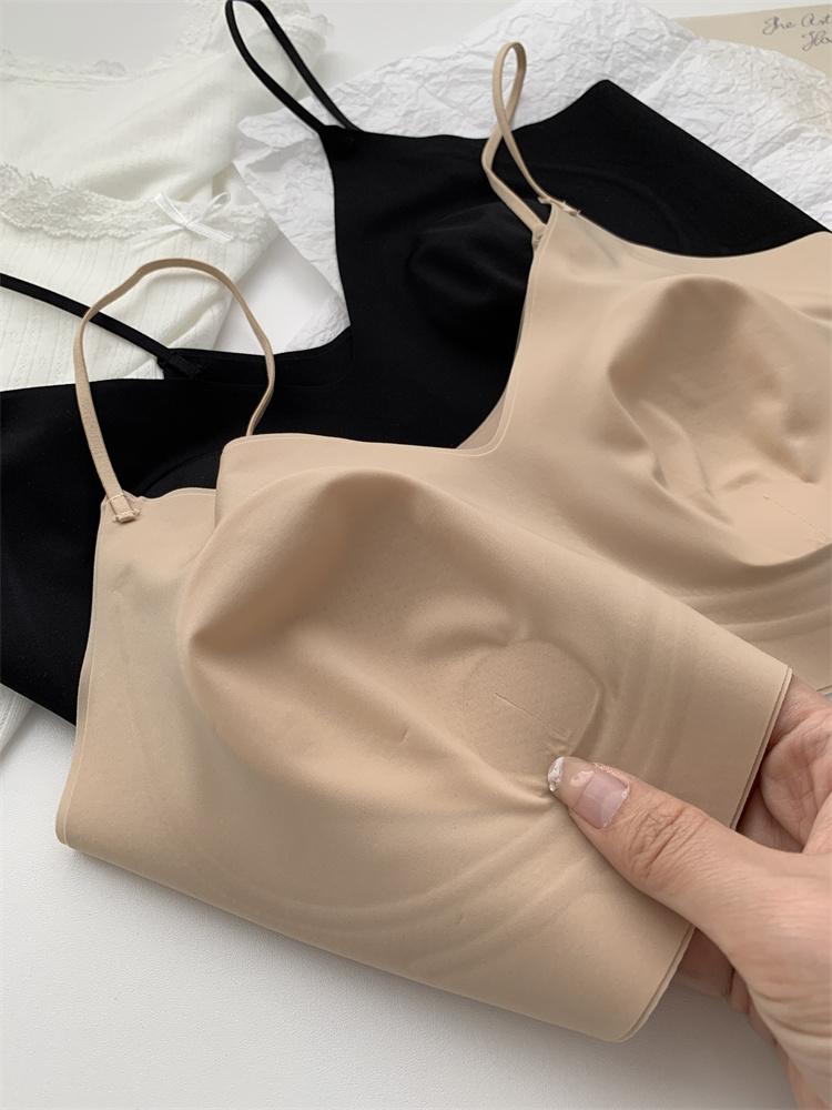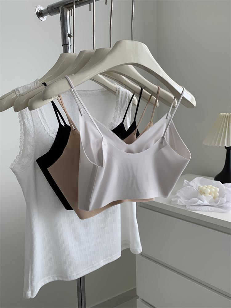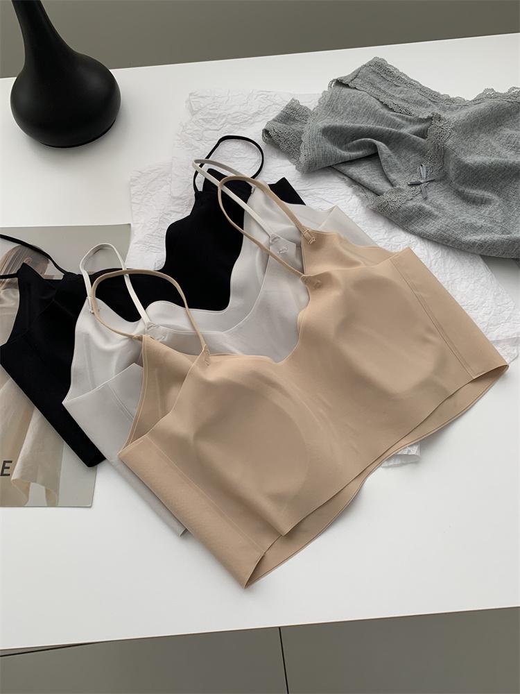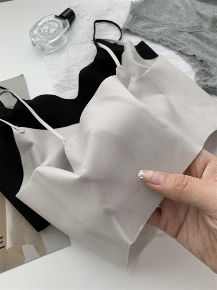 Ropa interior sin costuras invisible de piel de hielo para mujer, verano, delgada, con tirantes finos, base líquida, sujetador tipo sling, chaleco fresco dos en uno