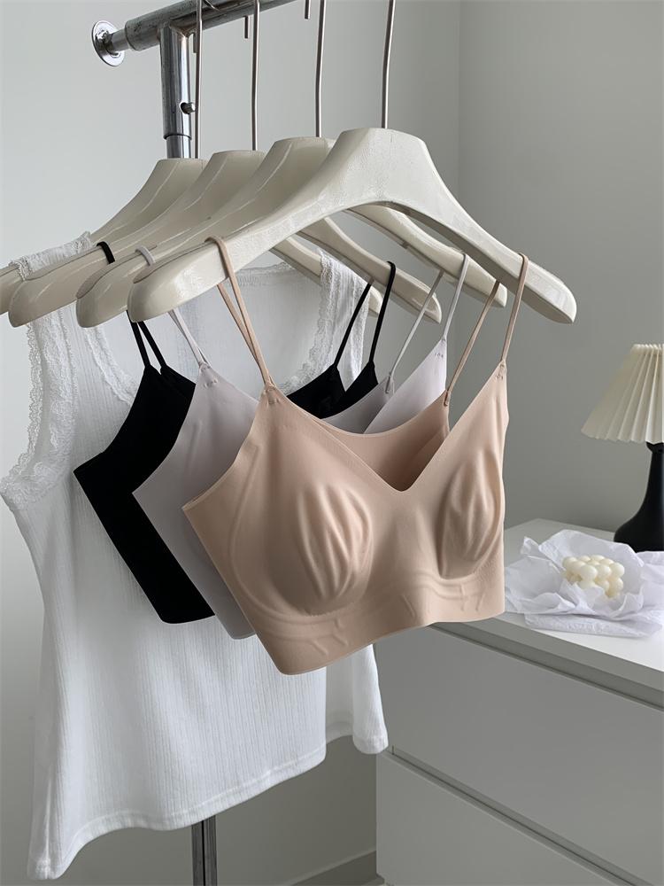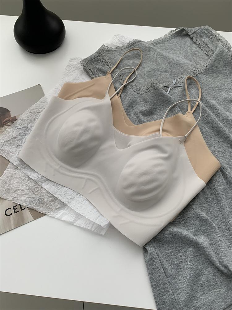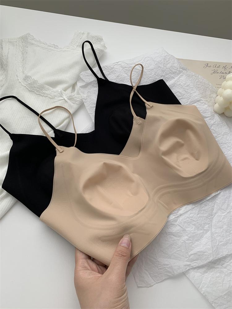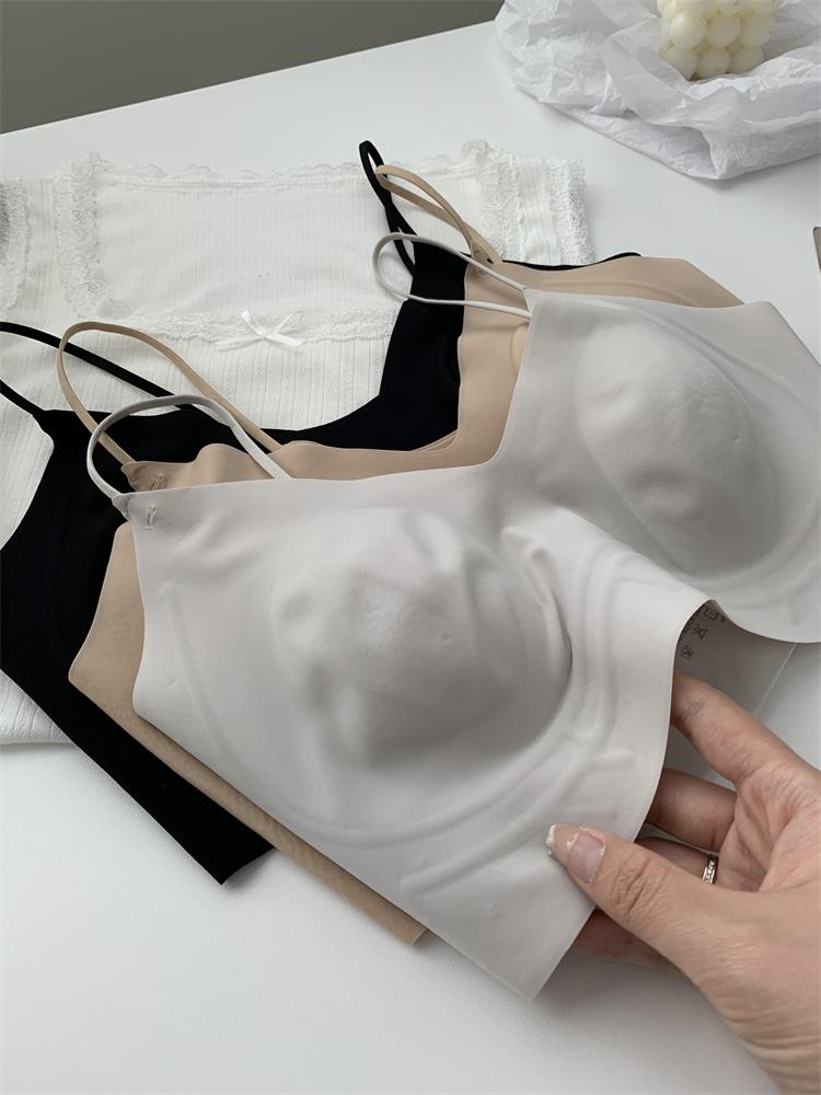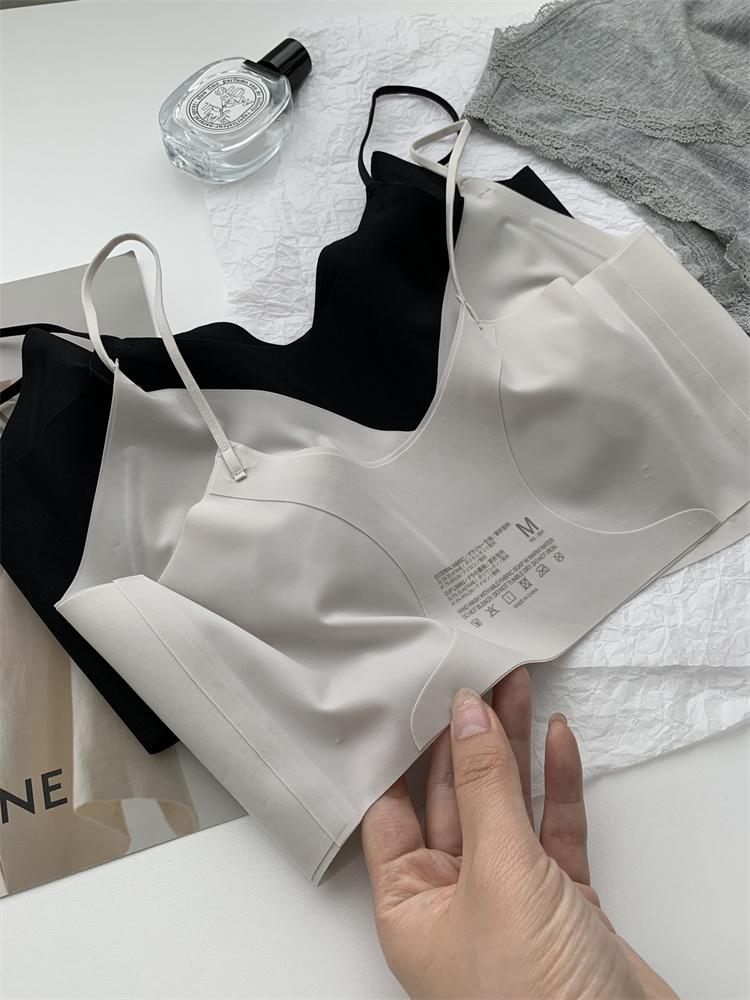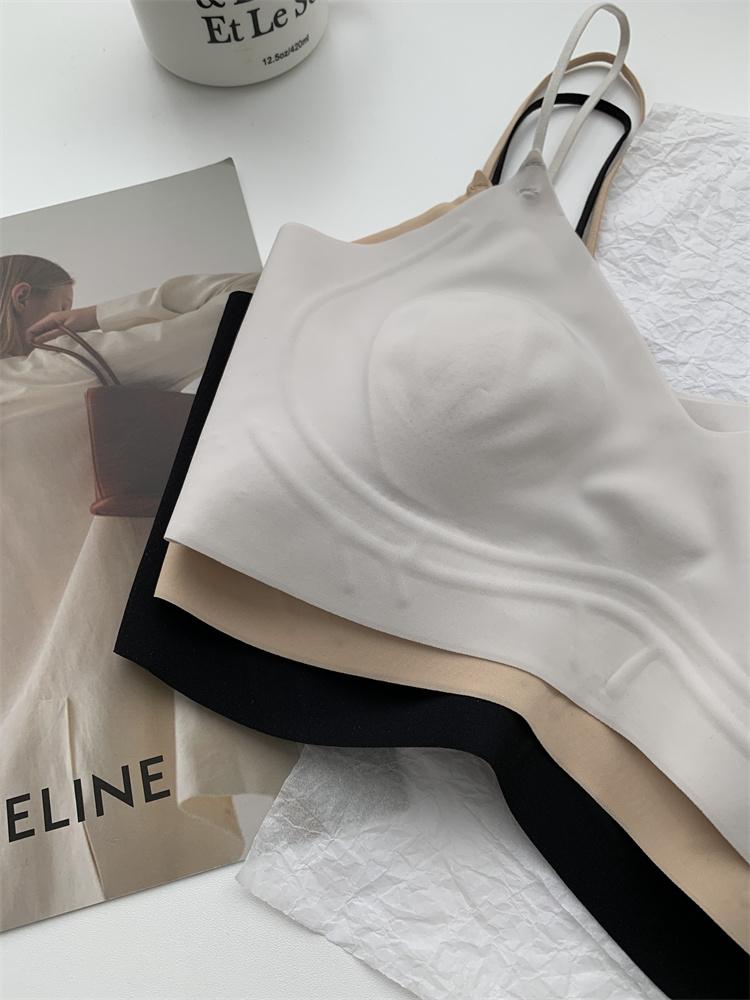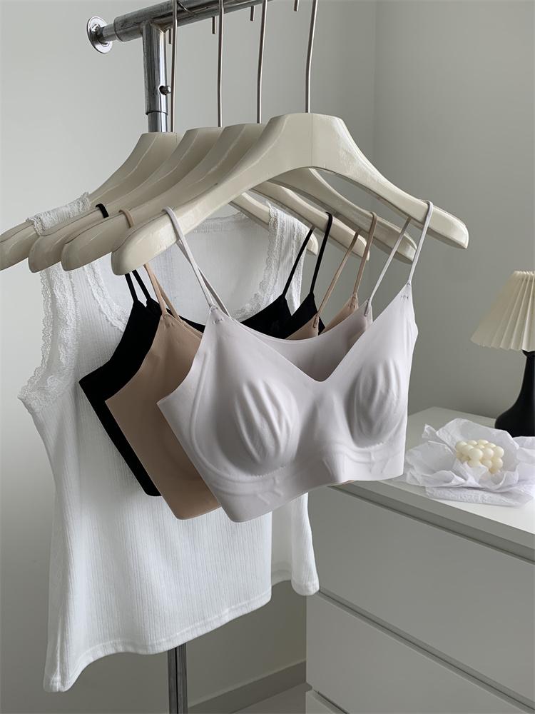 Ropa interior sin costuras invisible de piel de hielo para mujer, verano, delgada, con tirantes finos, base líquida, sujetador tipo sling, chaleco fresco dos en uno