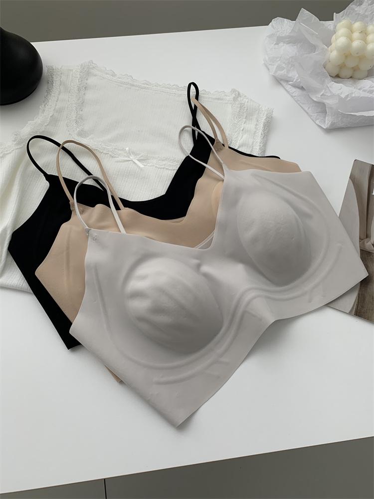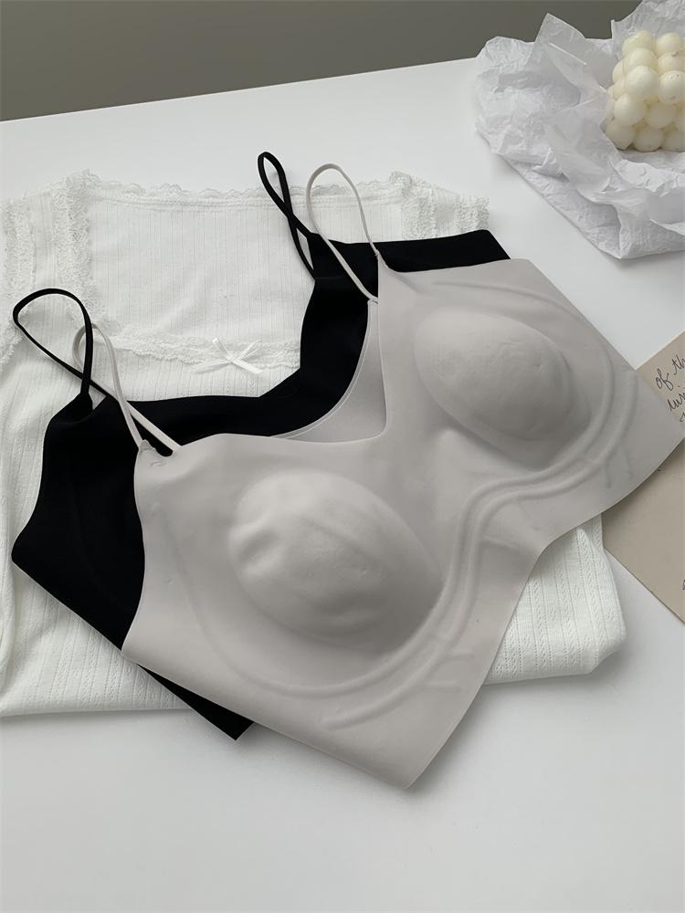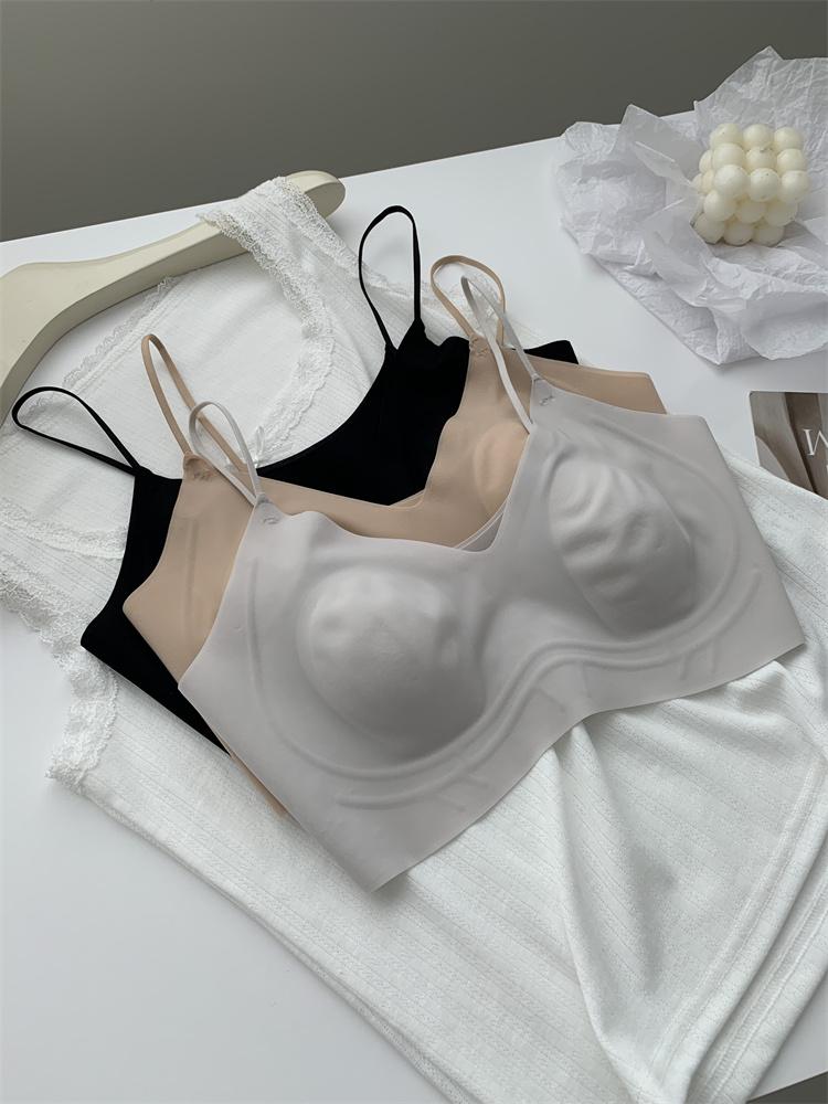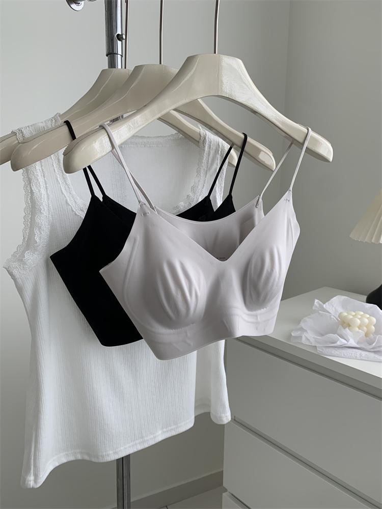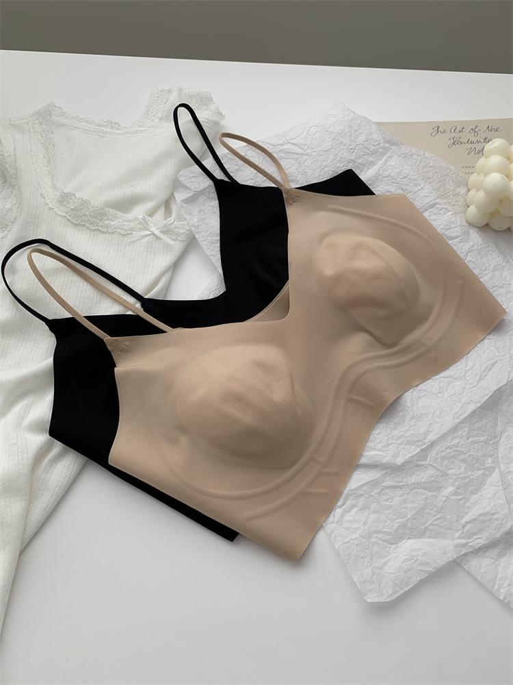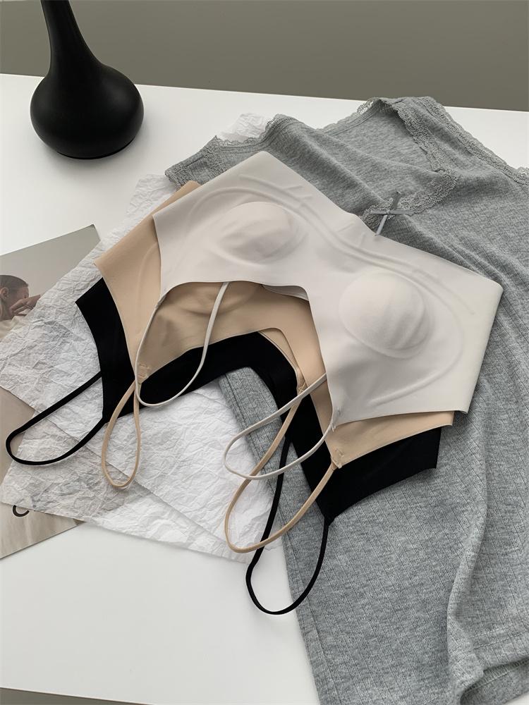 Ropa interior sin costuras invisible de piel de hielo para mujer, verano, delgada, con tirantes finos, base líquida, sujetador tipo sling, chaleco fresco dos en uno