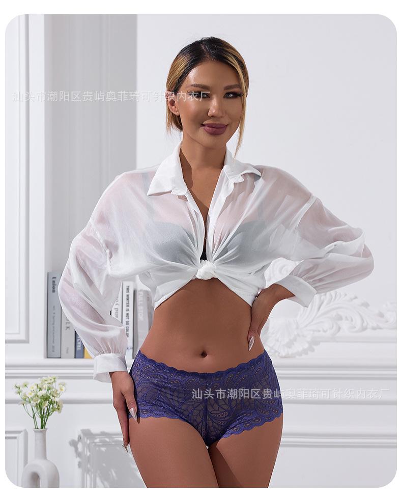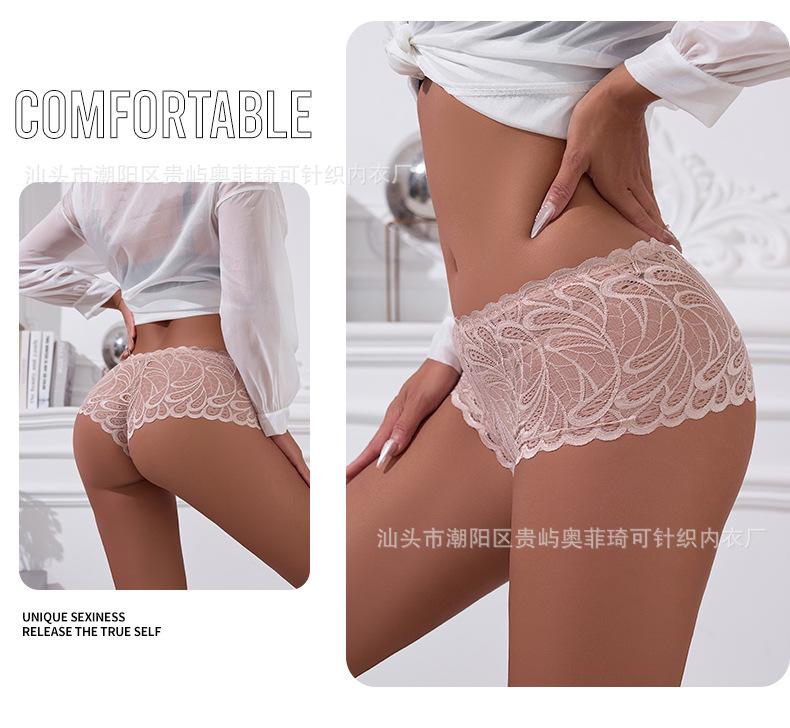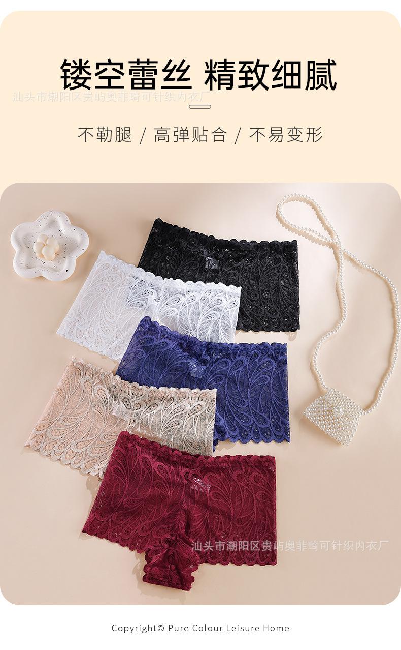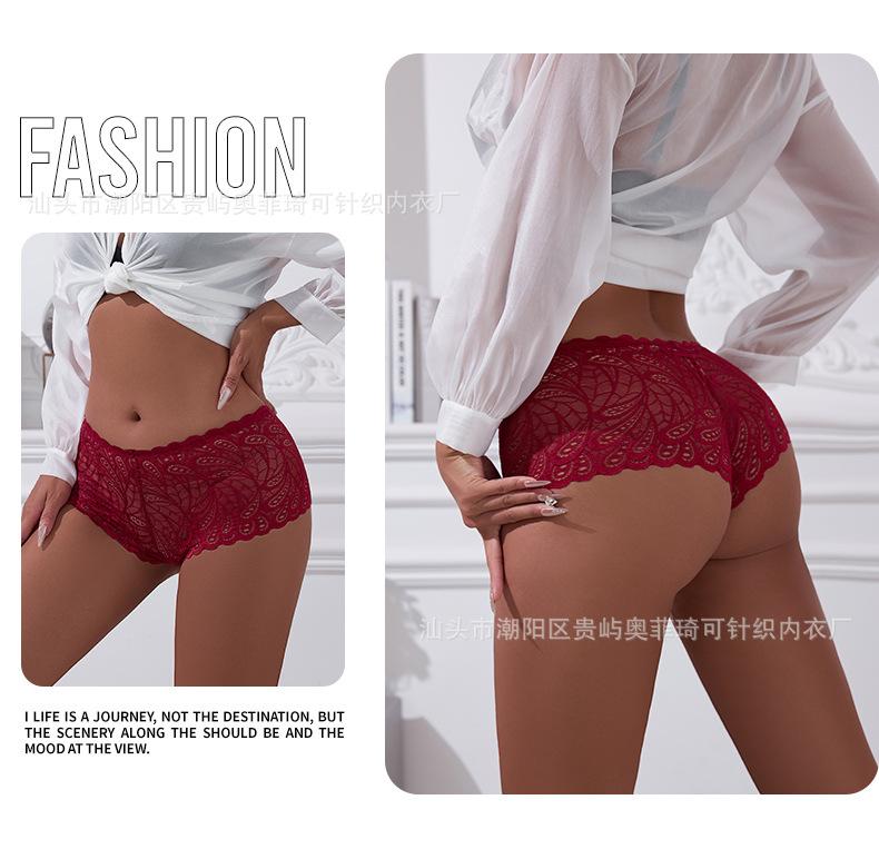 Comercio Exterior Talla Grande Encaje Ropa Interior Femenina Sexy Recorte Encaje Transpirable Ropa Interior para Mujer Bóxer de Cintura Media Sexy