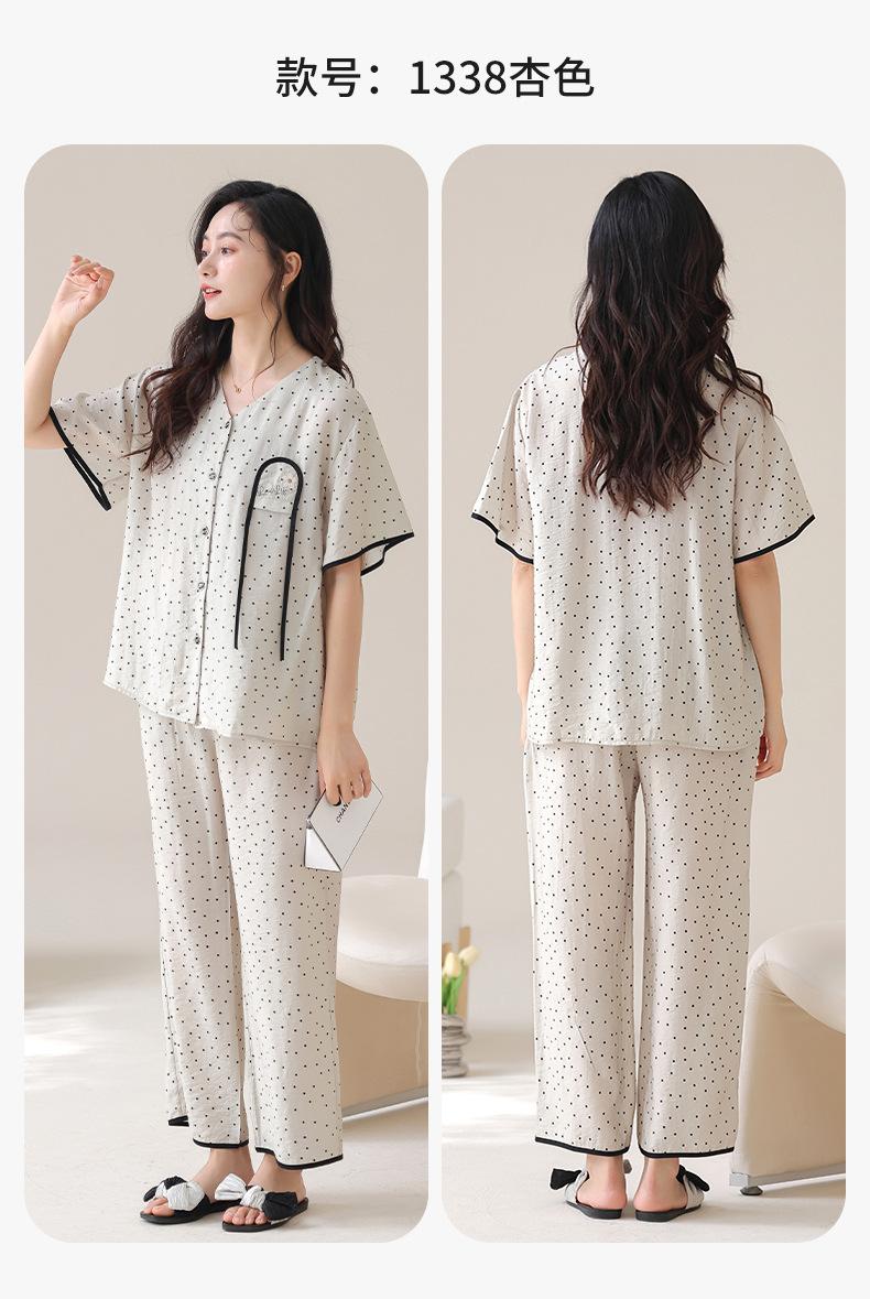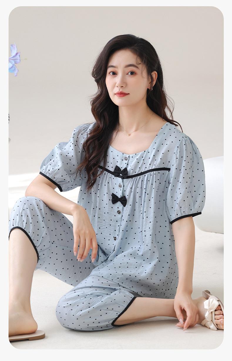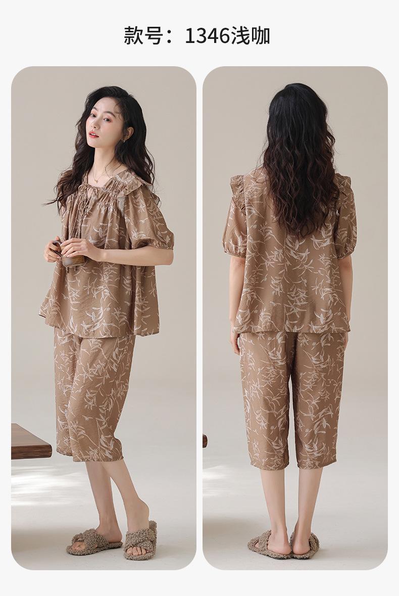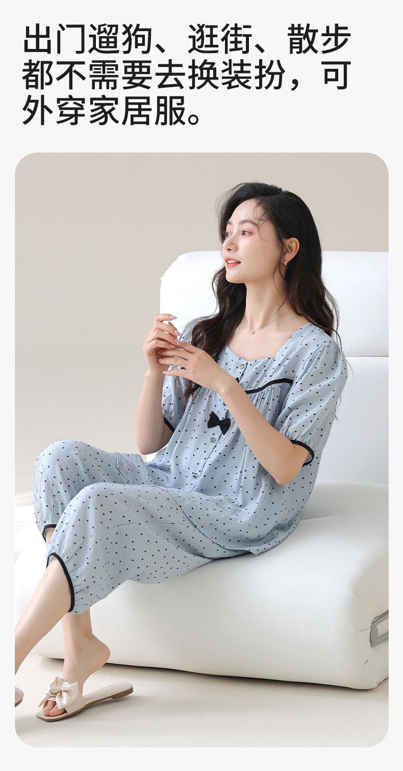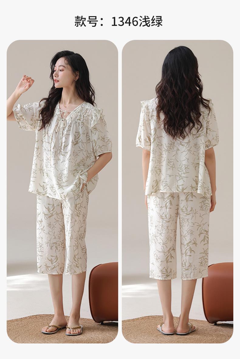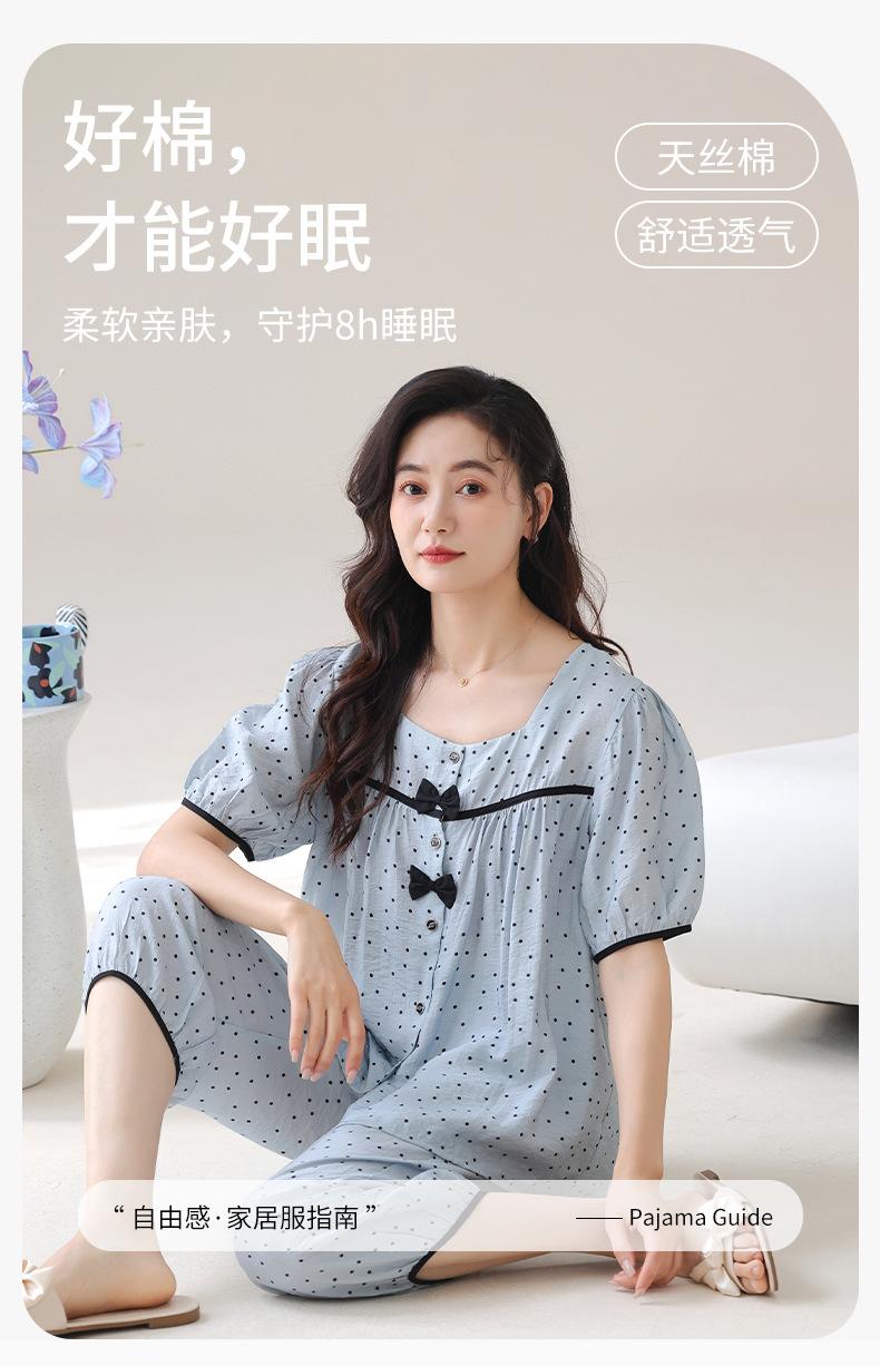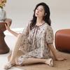 Pijama para Mujer 2025 Nuevo Verano Delgado Manga Corta Tencel Estilo Palacio Talla Grande Se Puede Usar Fuera Conjunto de Ropa para el Hogar
