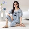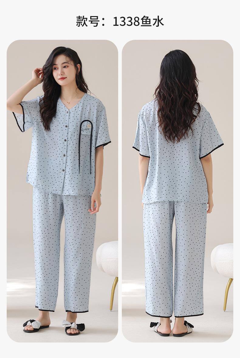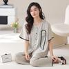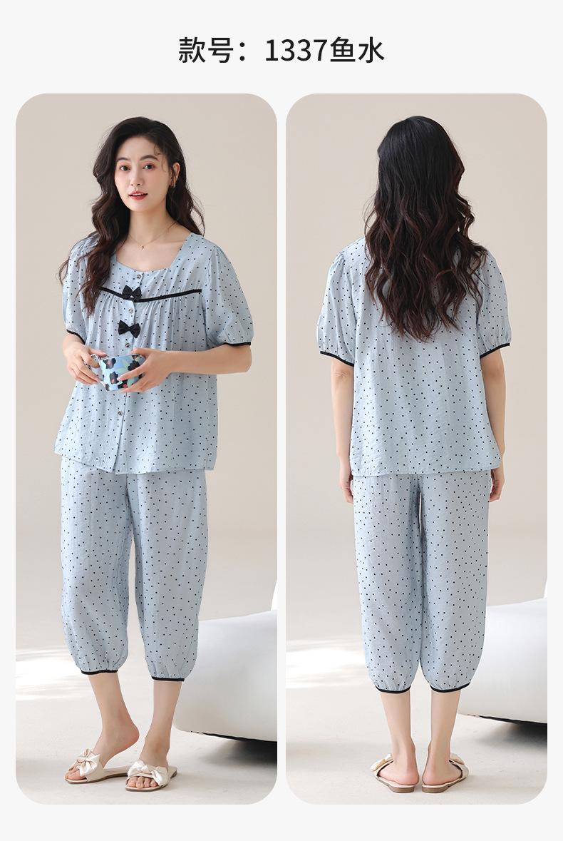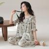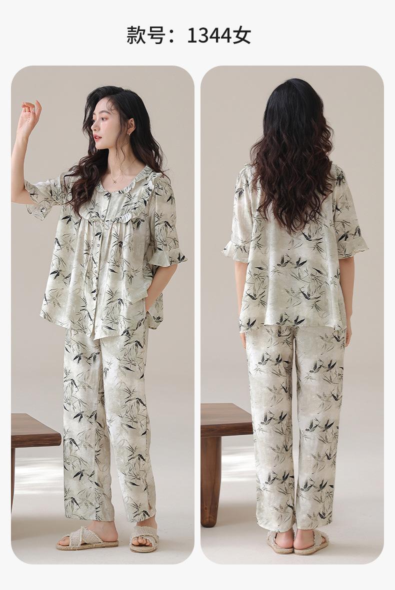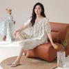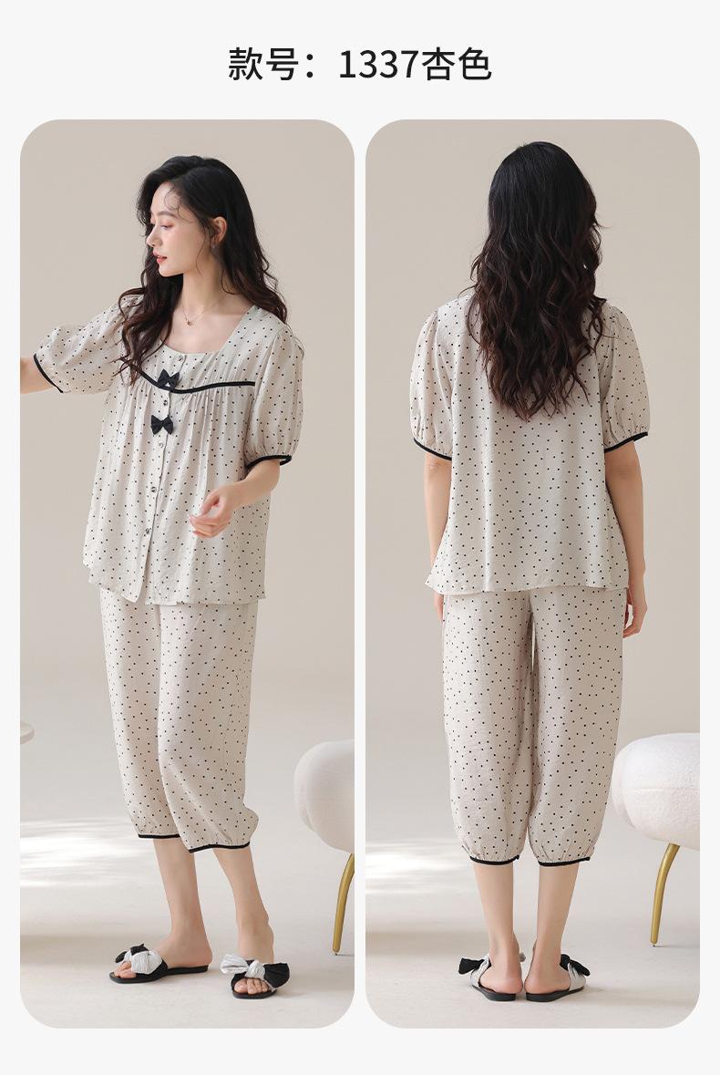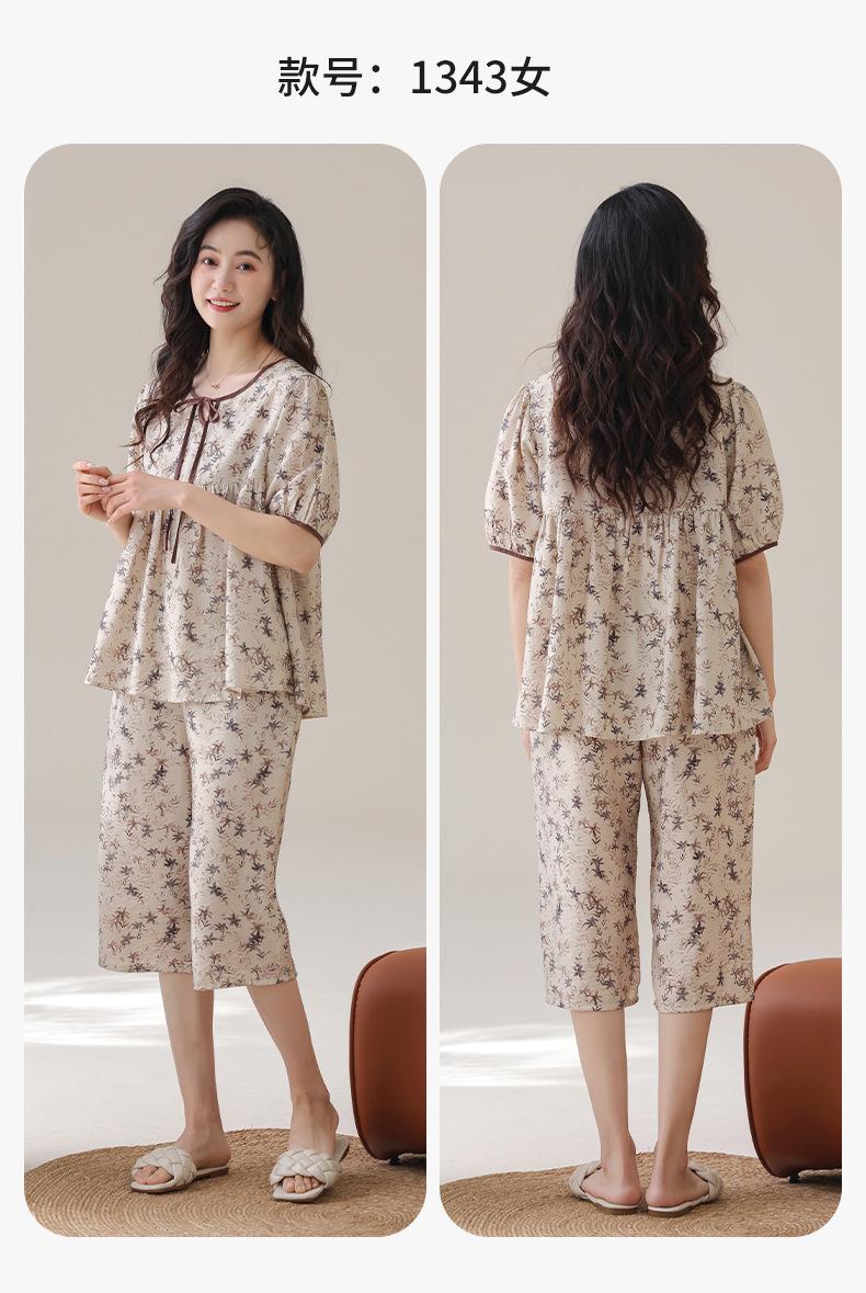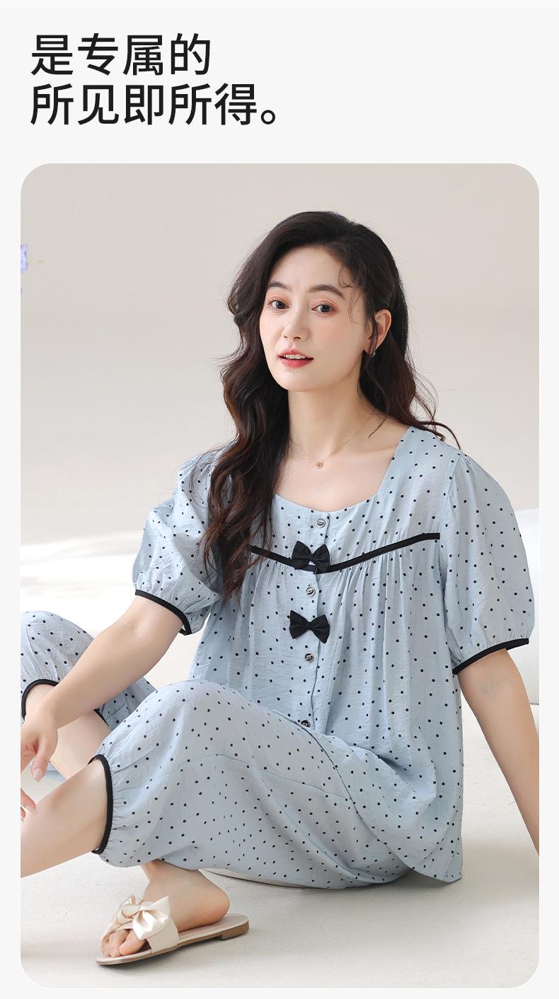 Pijama para Mujer 2025 Nuevo Verano Delgado Manga Corta Tencel Estilo Palacio Talla Grande Se Puede Usar Fuera Conjunto de Ropa para el Hogar