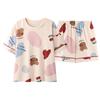 Pijama de Verano Nuevo de Algodón Puro para Mujer con Shorts Acolchados de Manga Corta, Conjunto Delgado de Ropa para el Hogar Tipo Jersey, Popular Transfronterizo
