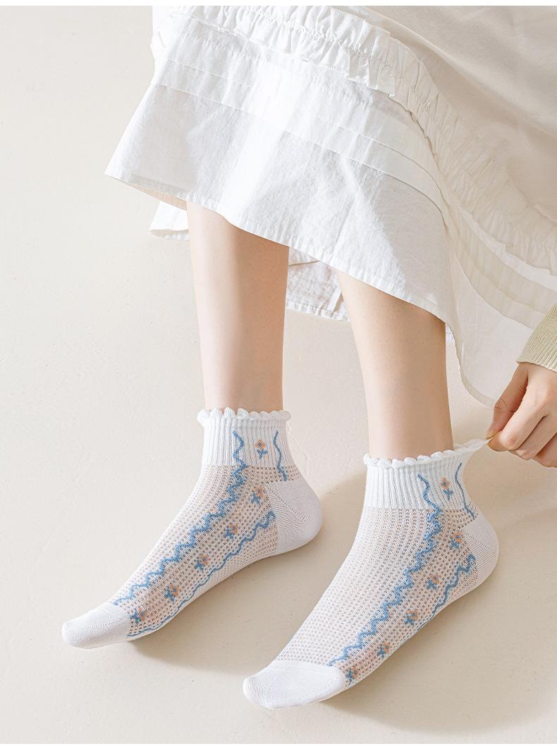 Calcetines de Malla Transpirable para Mujer Calcetines Cortos Verano Delgados Encaje Mori Girl Calcetines Casuales Calcetines de Algodón Calcetines Zhuji