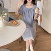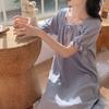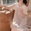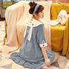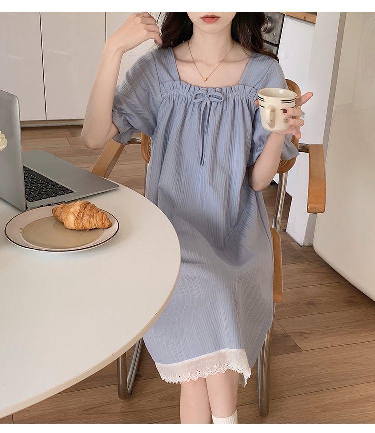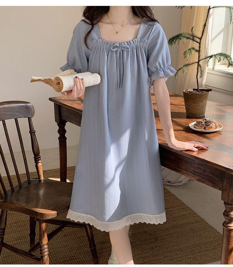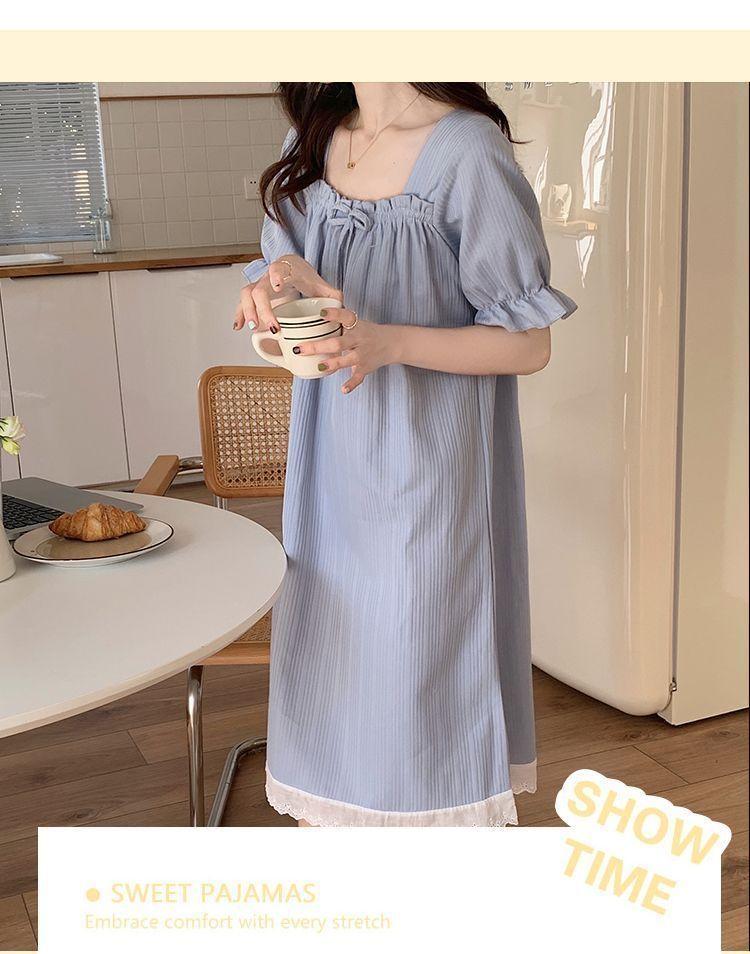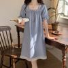 Camisón para Mujer Verano Nuevo Estilo Estilo Celebridad de Internet Estilo Verano Algodón Pequeño Mujeres Embarazadas Alta Gama Princesa Talla Grande Pijama Azul Niebla