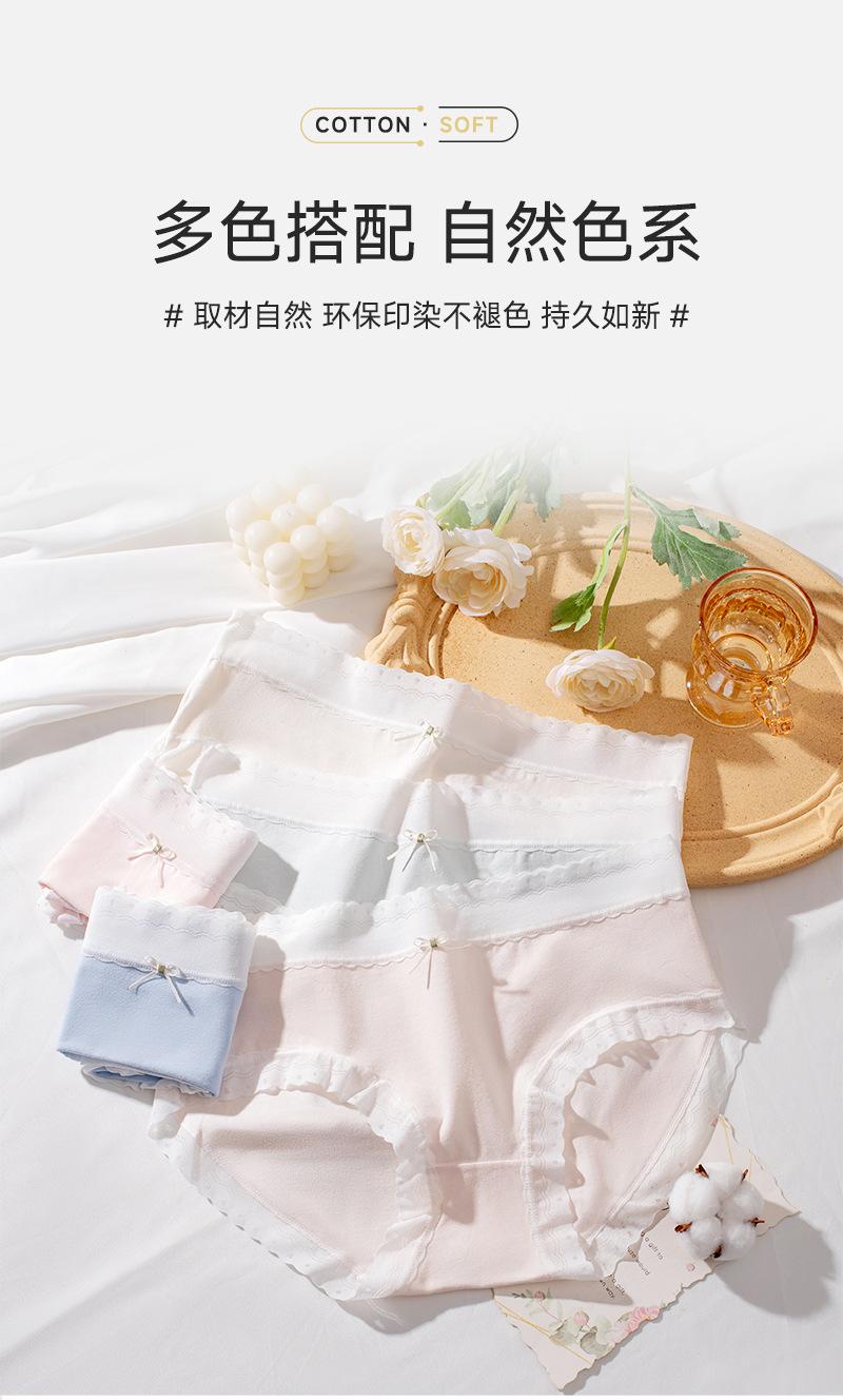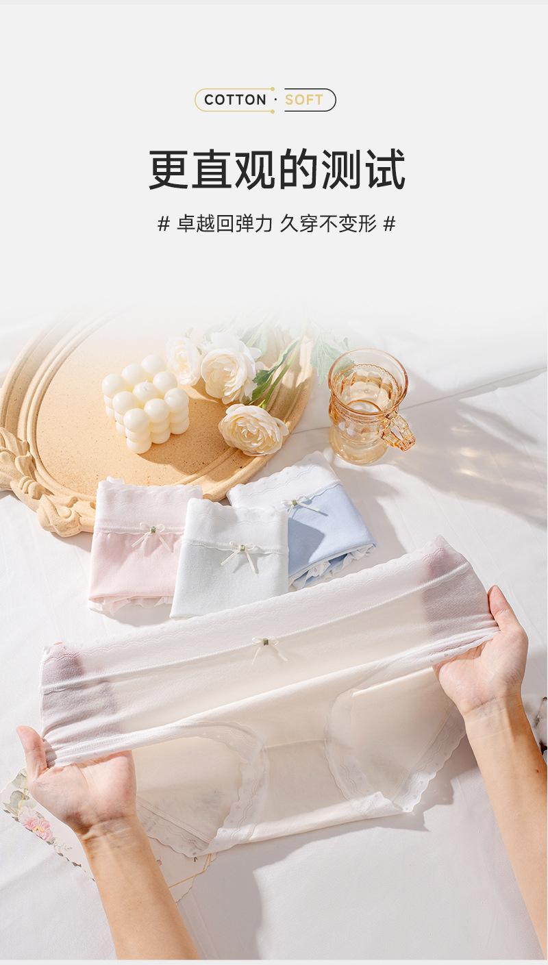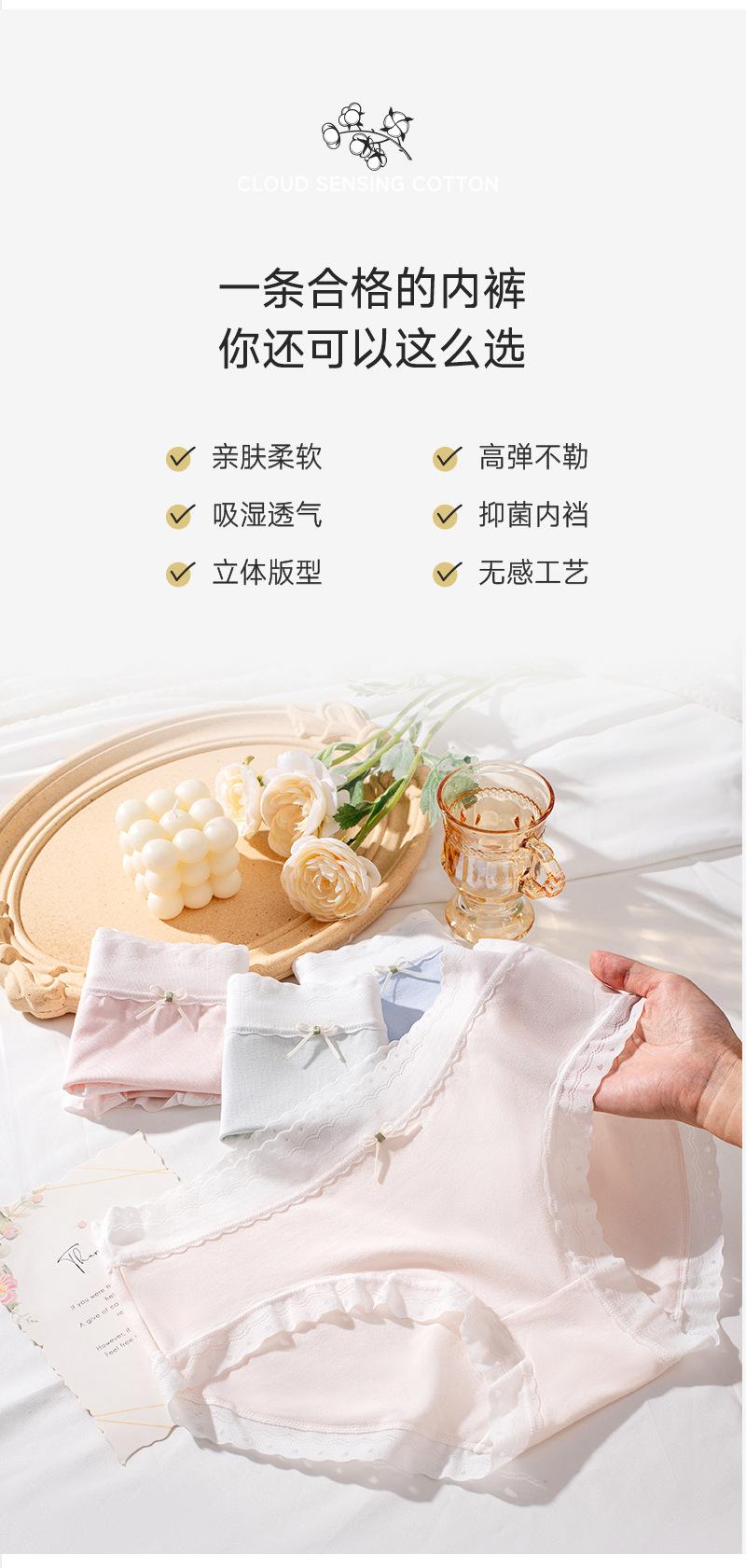 Ropa interior Algodón puro Mujer Nueva Antibacterial Encaje de seda Shorts Cintura media Calzones transpirables Top Ropa interior sin costuras para mujer