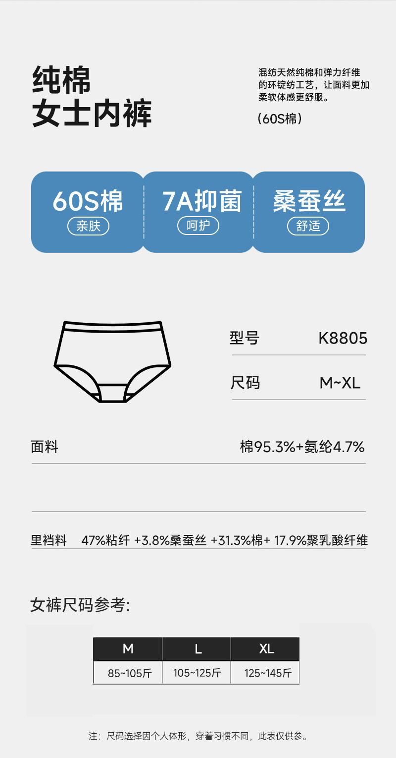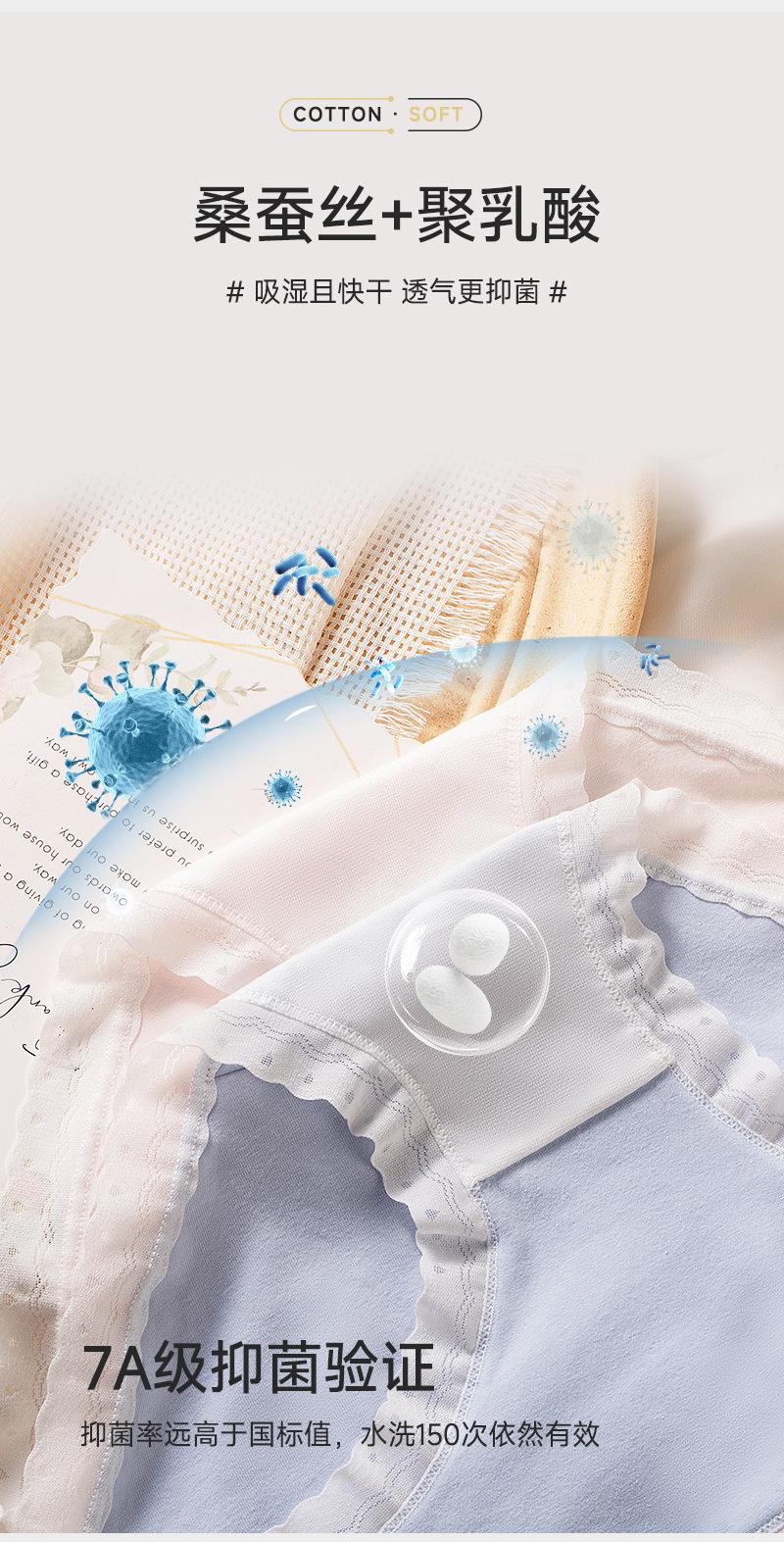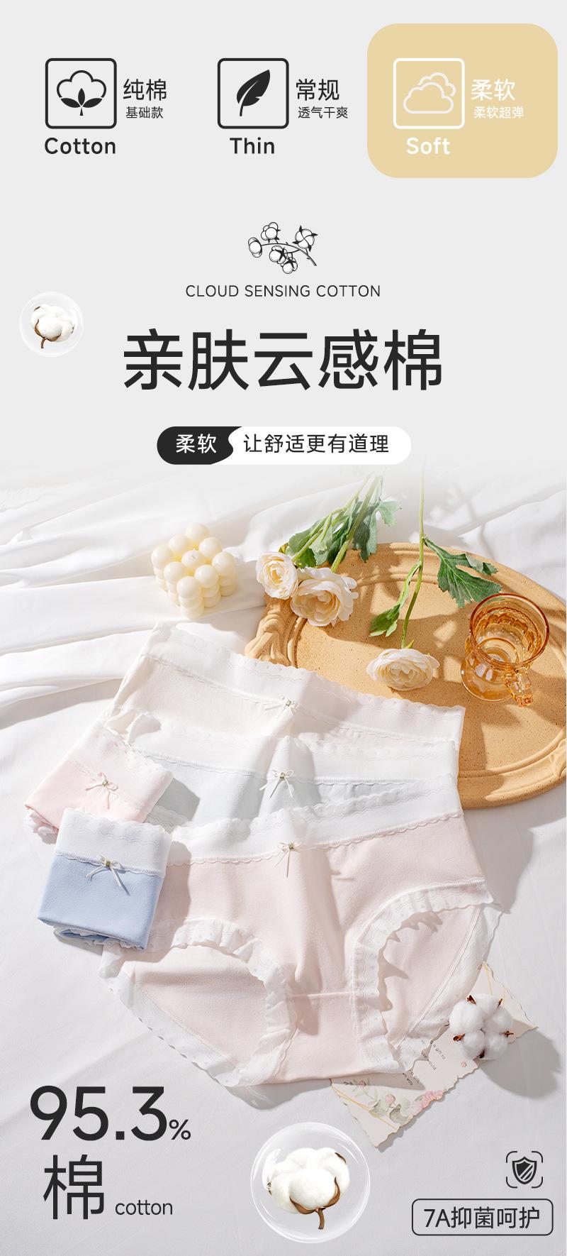 Ropa interior Algodón puro Mujer Nueva Antibacterial Encaje de seda Shorts Cintura media Calzones transpirables Top Ropa interior sin costuras para mujer