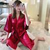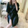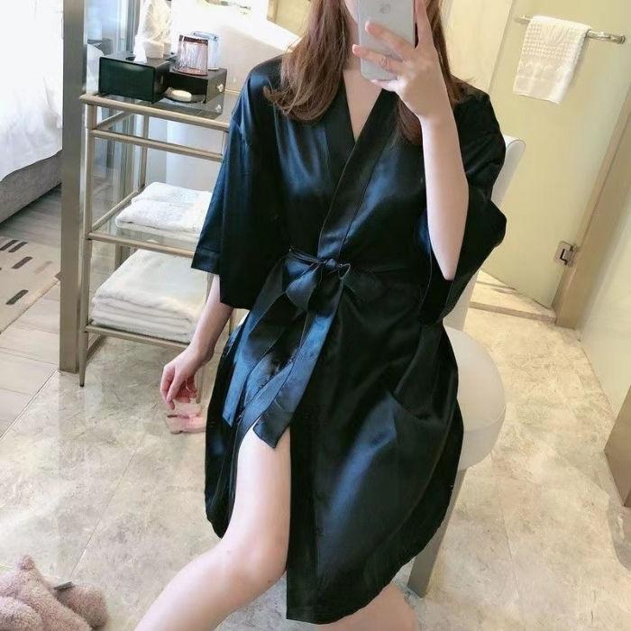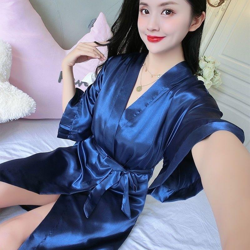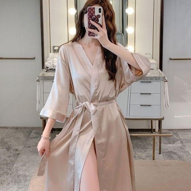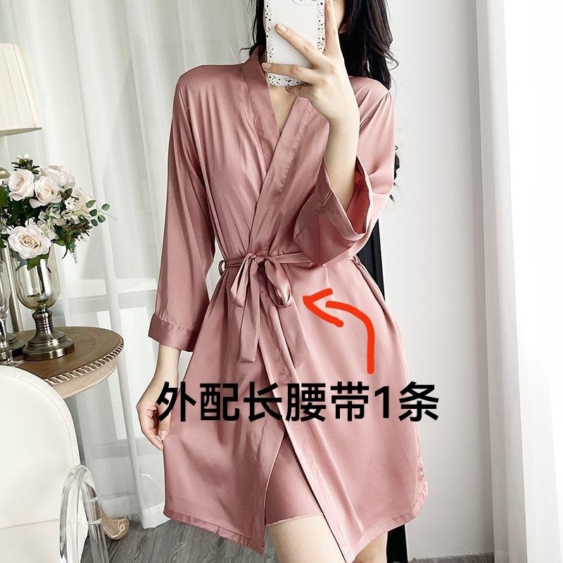 Primavera y Verano Sexy Pijama Bata de Seda de Hielo Real para Mujer Bata de Novia Estilo Hotel Bata de Baño de Largo Medio Delgada Ropa de Casa para Mujer