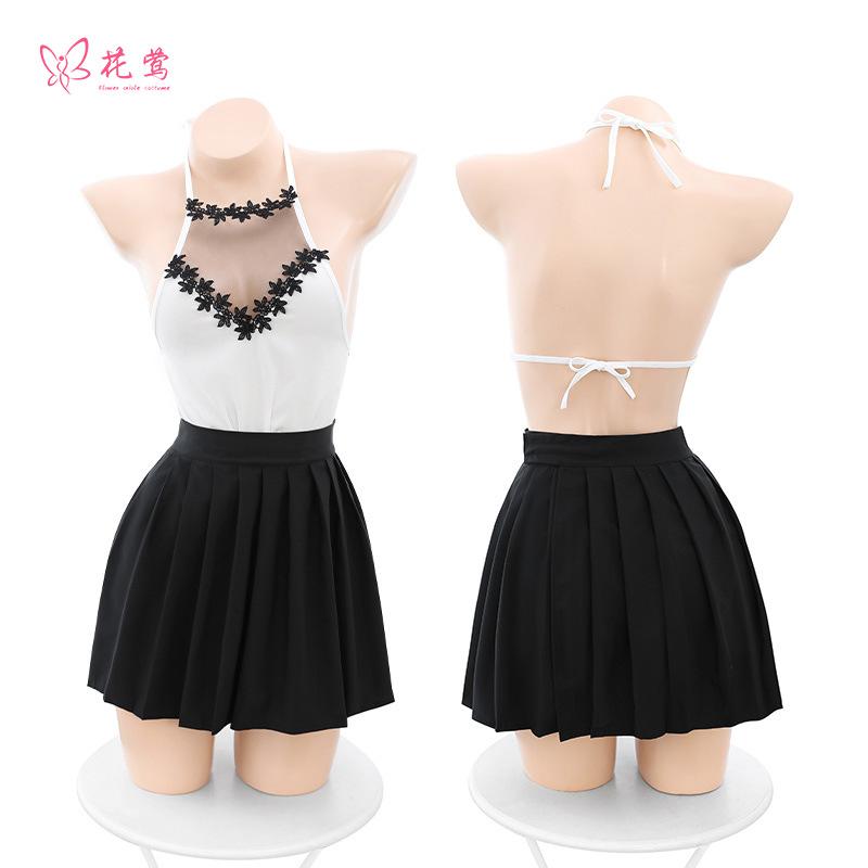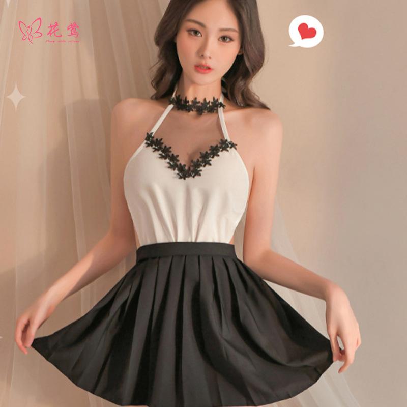 Pijama Sexy Camisón Nuevo de Encaje Tentación Transparente Cuello Halter Vestido de Encaje Pijama Sexy 5392