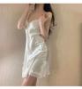 Hermoso Gasa Verano Nuevo Sexy Lujuria Pura Bata de Noche de Seda de Hielo con Tirantes Sexy Cuello Oscilante Abertura Hermosa Espalda Ropa para el Hogar