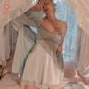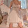 Pijama Sexy Camisón de Tirantes Seda Imitación Vestido Suave Camisón Delgado con Encaje Conjunto Ropa de Casa 1906