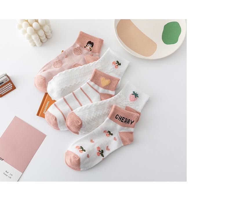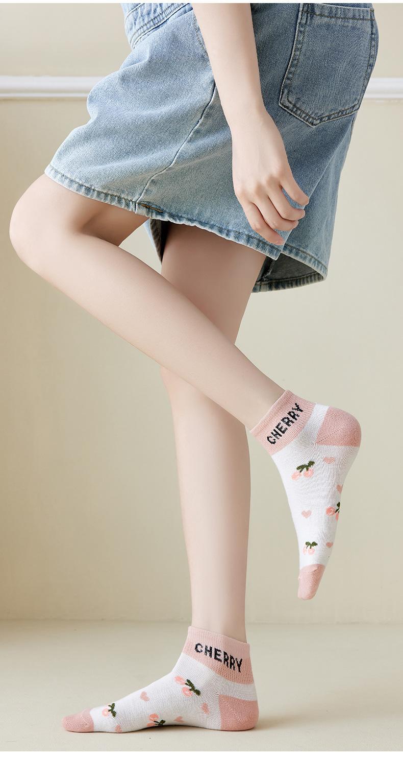 Calcetines Transpirables Absorbentes de Sudor para Mujer de Primavera y Verano, Calcetines Cortos Finos Dulces Japoneses para Mujer, Calcetines de Tobillo Bajos con Dibujos Animados de Otoño