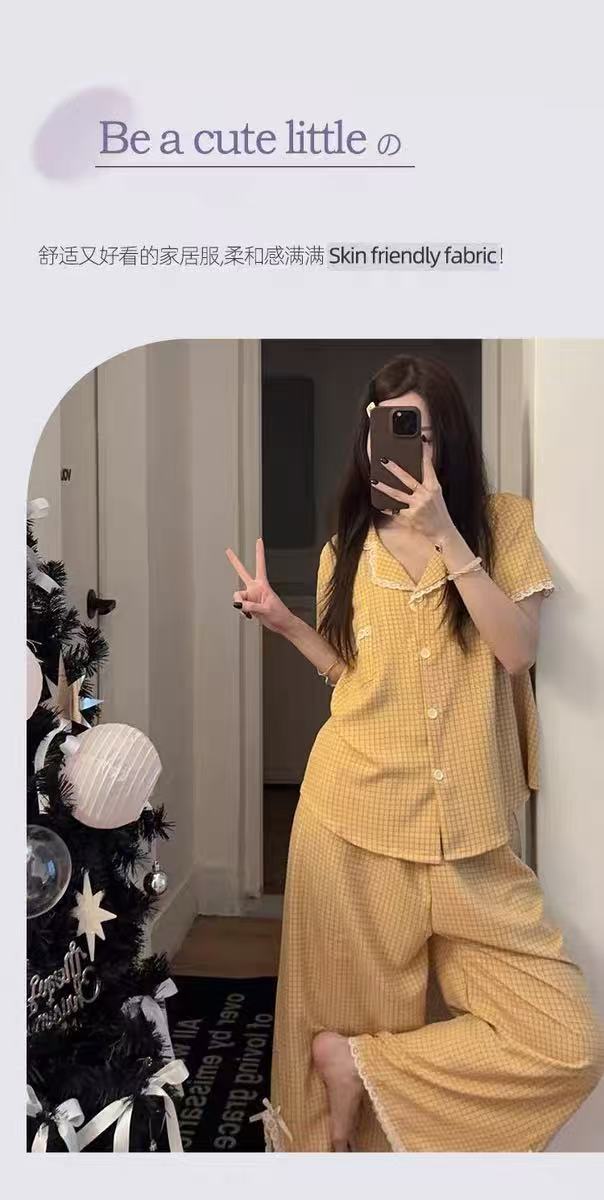 2025 Pijama Nuevo de Algodón Nube para Mujer Verano Manga Corta Pantalón Dulce y Lindo Dibujo Animado Conjunto de Ropa para el Hogar para Mujer