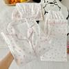 Pijama de Manga Corta de Encaje Lindo de Estilo Femenino Suave y Dulce para Mujer Verano Nuevo Pantalones Cortos Traje Ropa para el Hogar Trendy