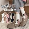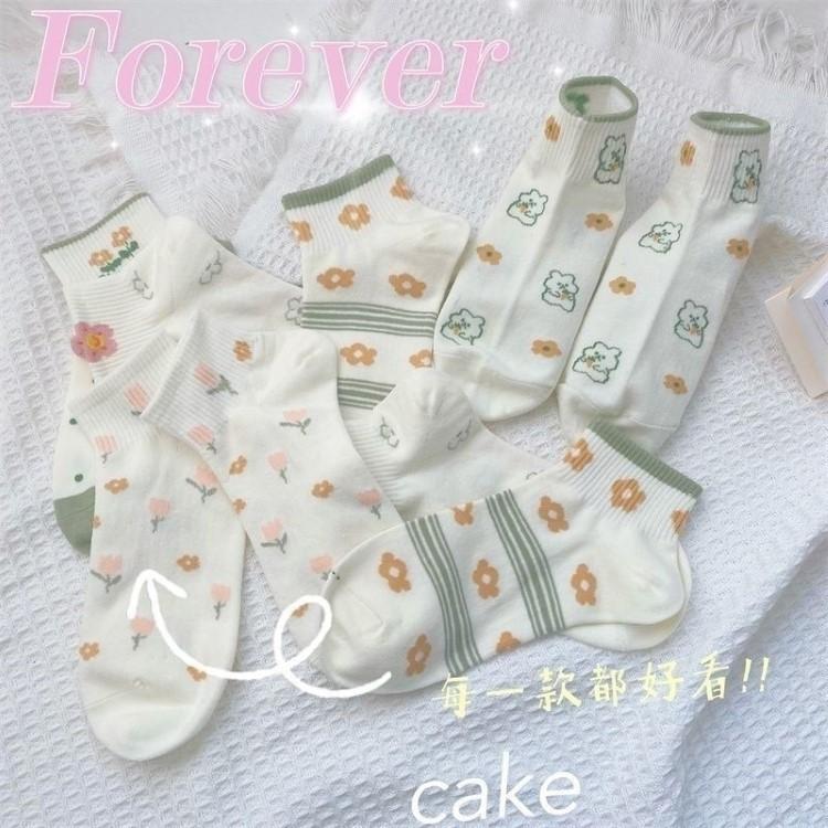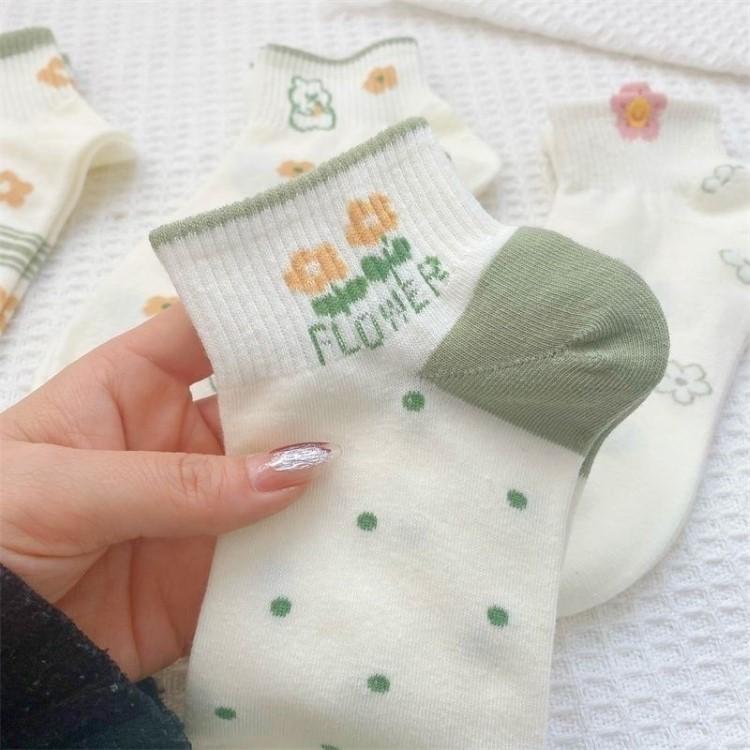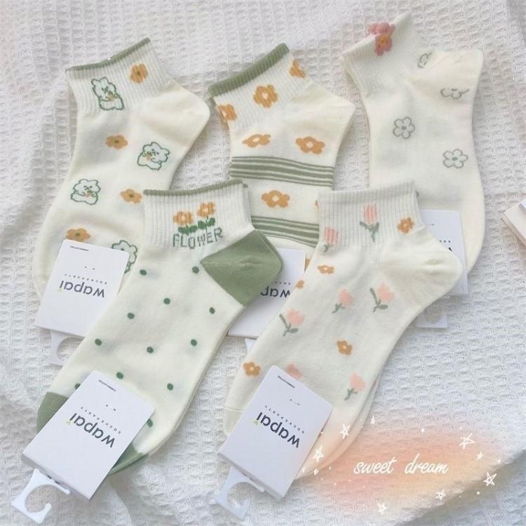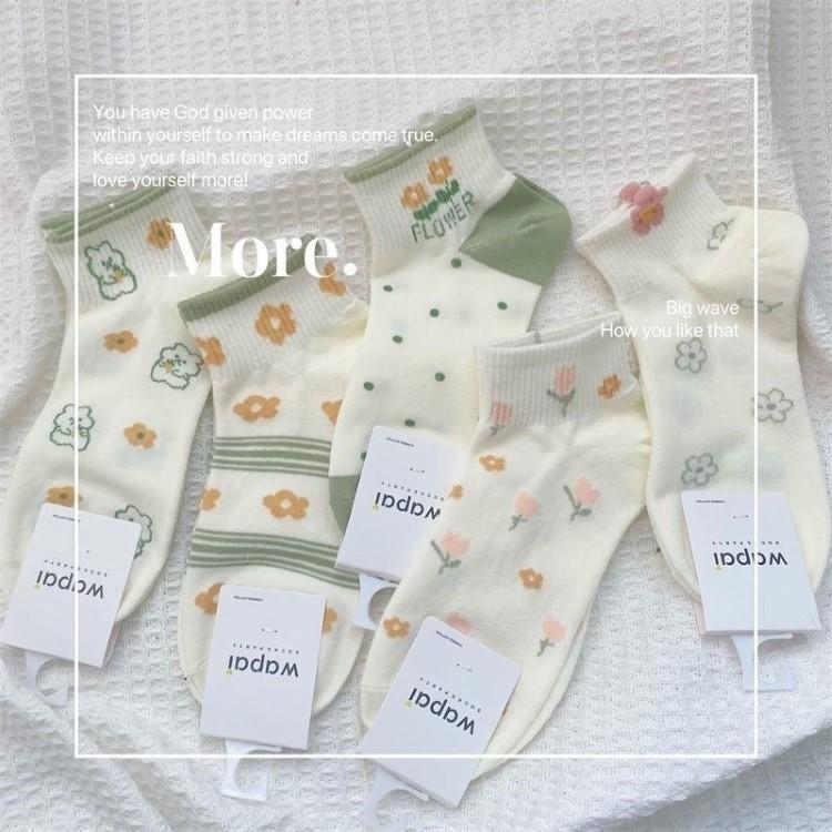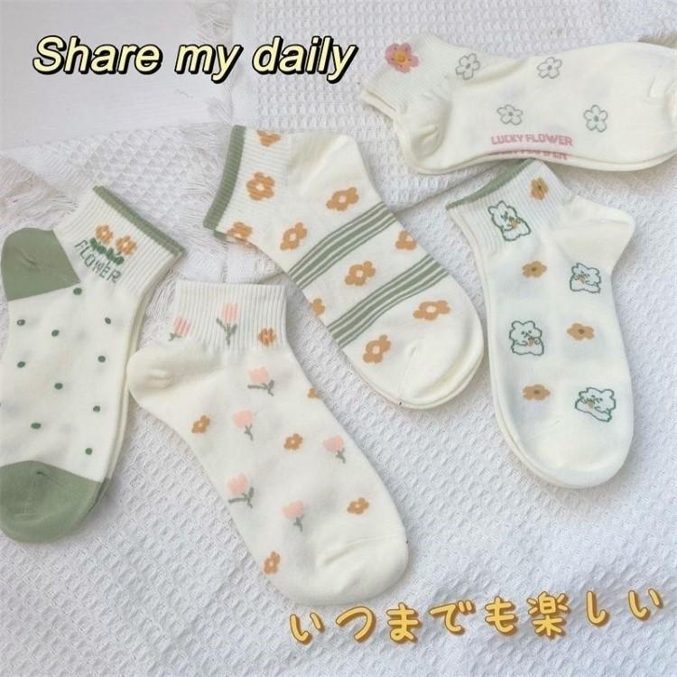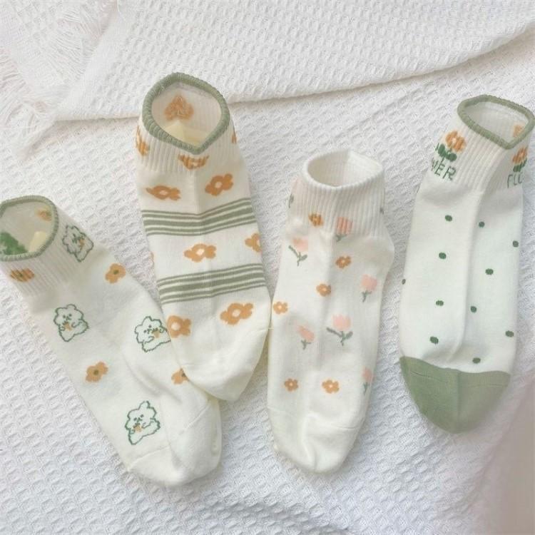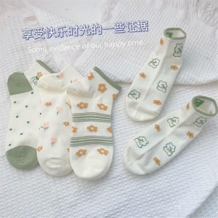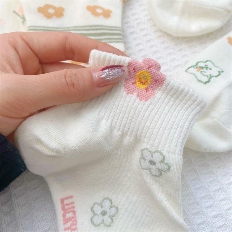 Calcetines Cortos para Mujer Estilo Coreano Ins Modernos Versátiles Japoneses Lindo Oso de Dibujos Animados Flor 3D Estudiante Calcetines al Tobillo de Color Claro