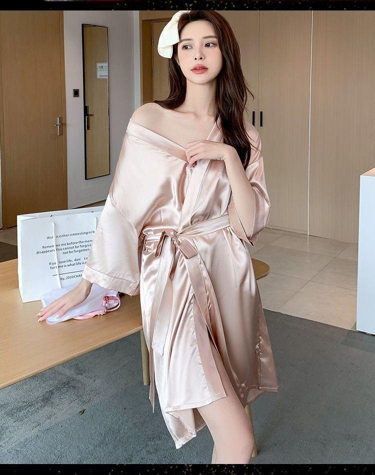 Camisón de Talla Grande para Mujer 100kg Verano Sexy Seda Falsa Ropa de Dormir de Boda Seda de Hielo Bata de Manga Corta para Novia