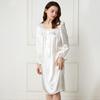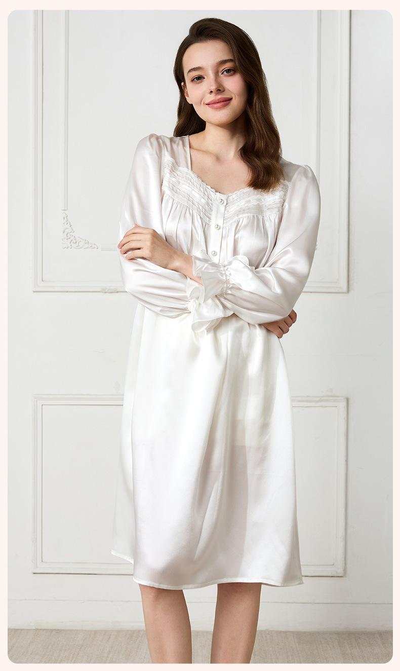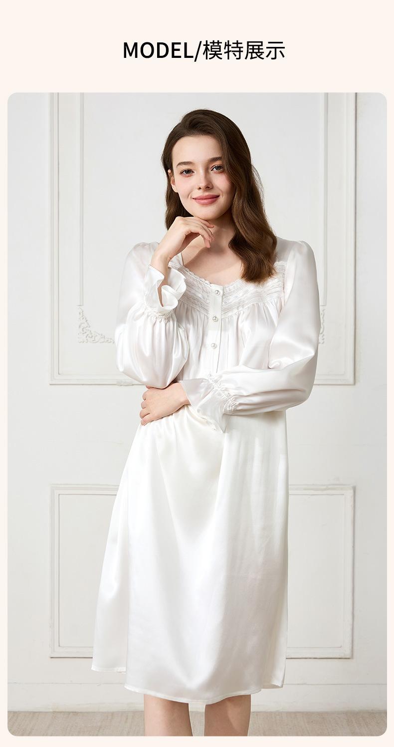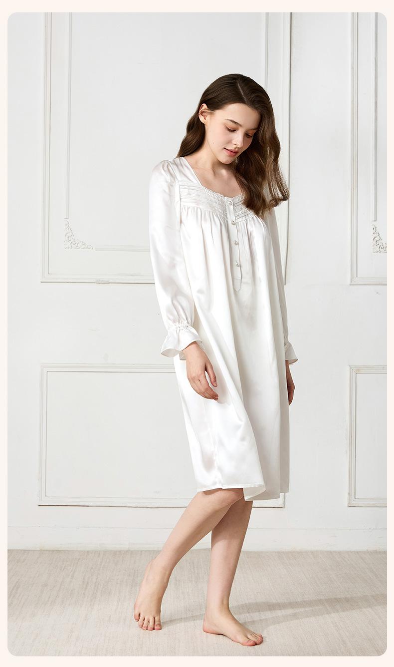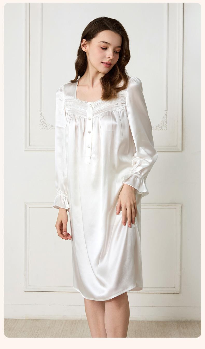 Pijamas de Seda de Verano Nuevos para Mujer 100% Seda de Morera Estilo Princesa Retro Cuello Cuadrado Camisón de Manga Larga Falda Midi Ropa para el Hogar