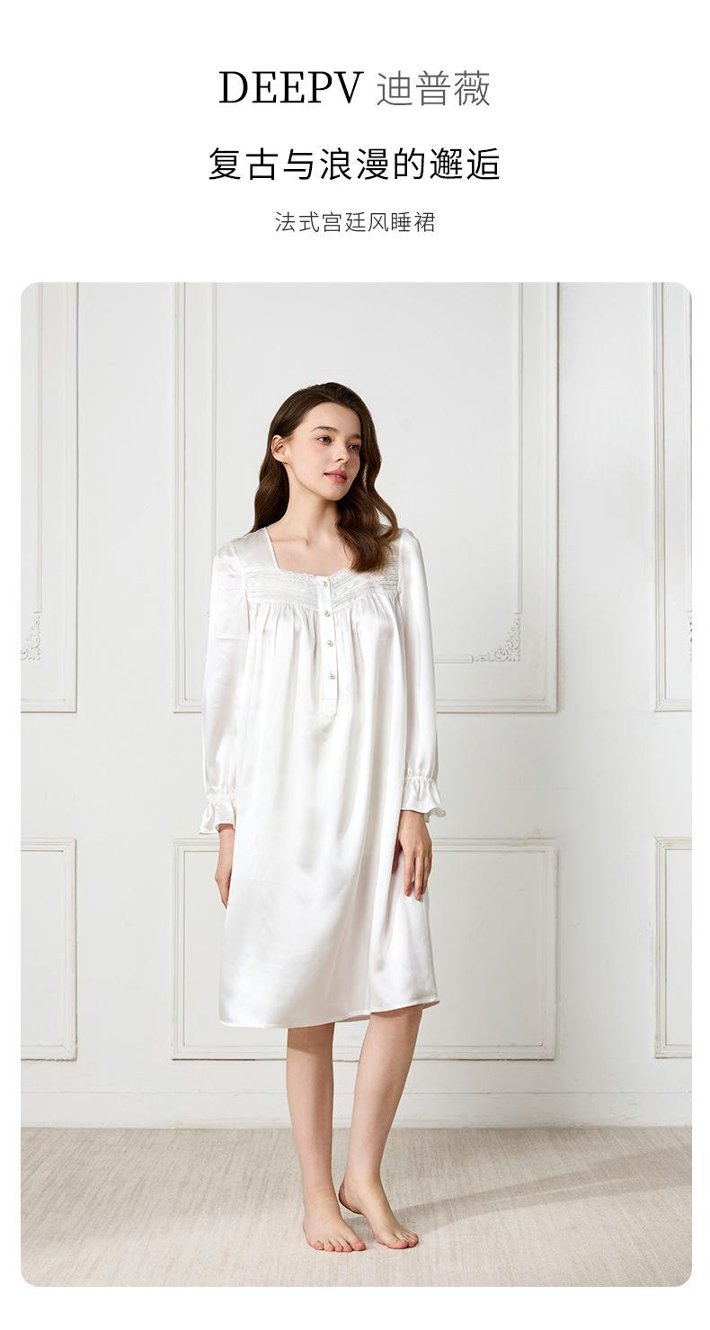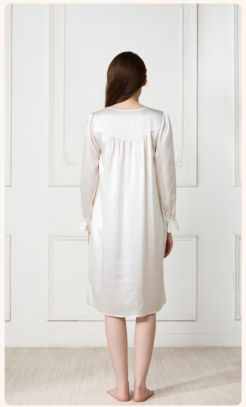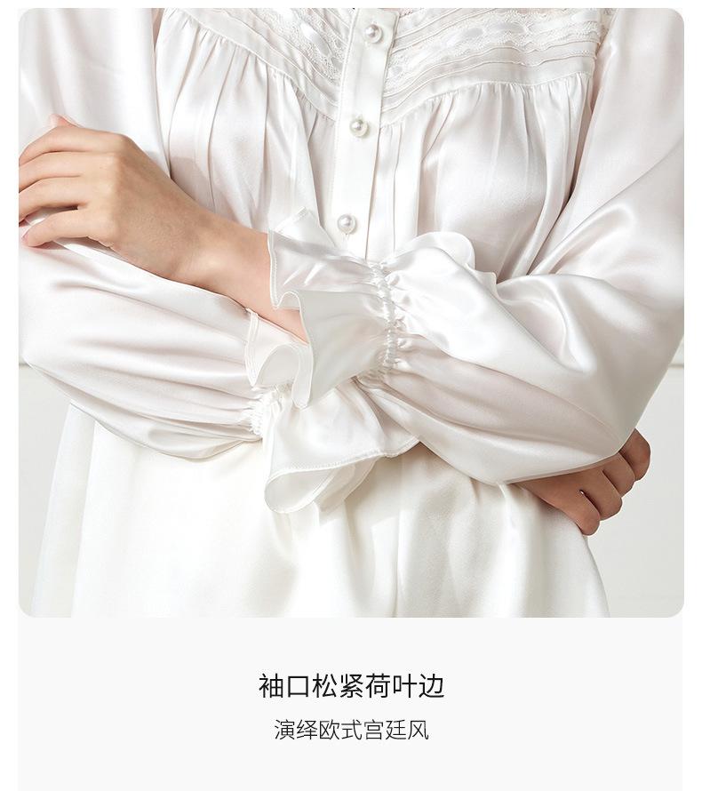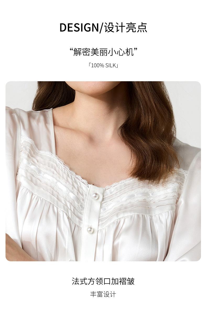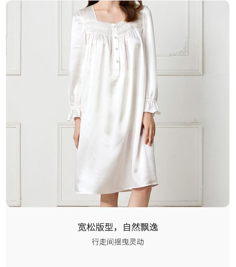 Pijamas de Seda de Verano Nuevos para Mujer 100% Seda de Morera Estilo Princesa Retro Cuello Cuadrado Camisón de Manga Larga Falda Midi Ropa para el Hogar