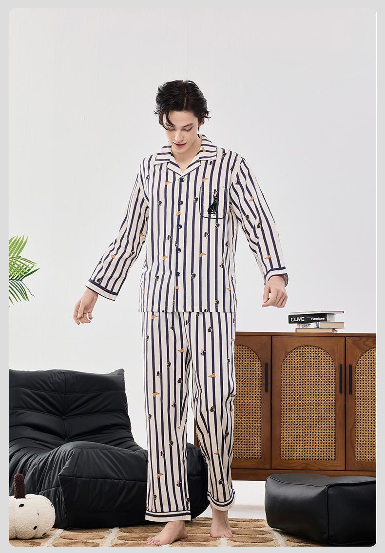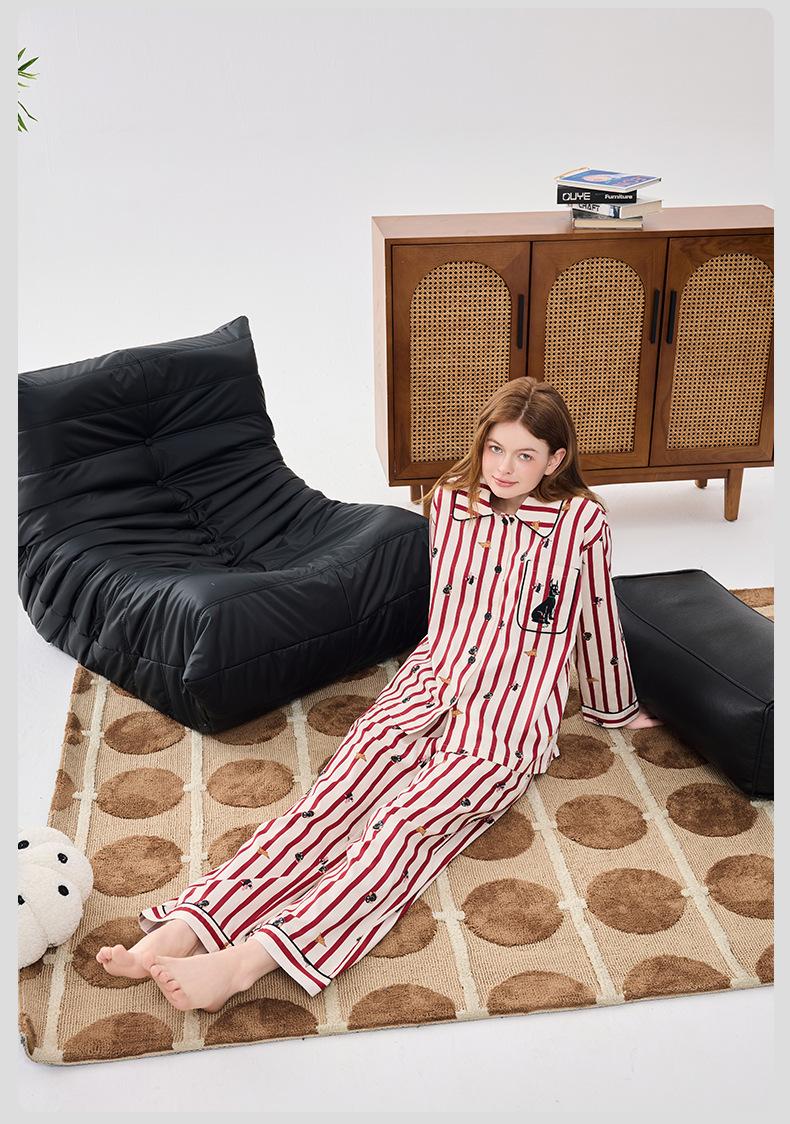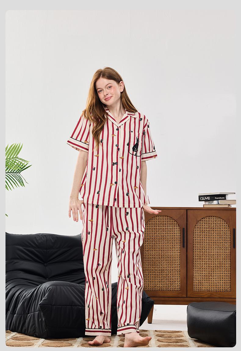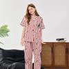 Pijama de Algodón Clase A para Mujer Primavera y Verano Traje Cárdigan con Solapa Ropa Exterior Pijama Fresco para Mujer Traje Ropa para el Hogar
