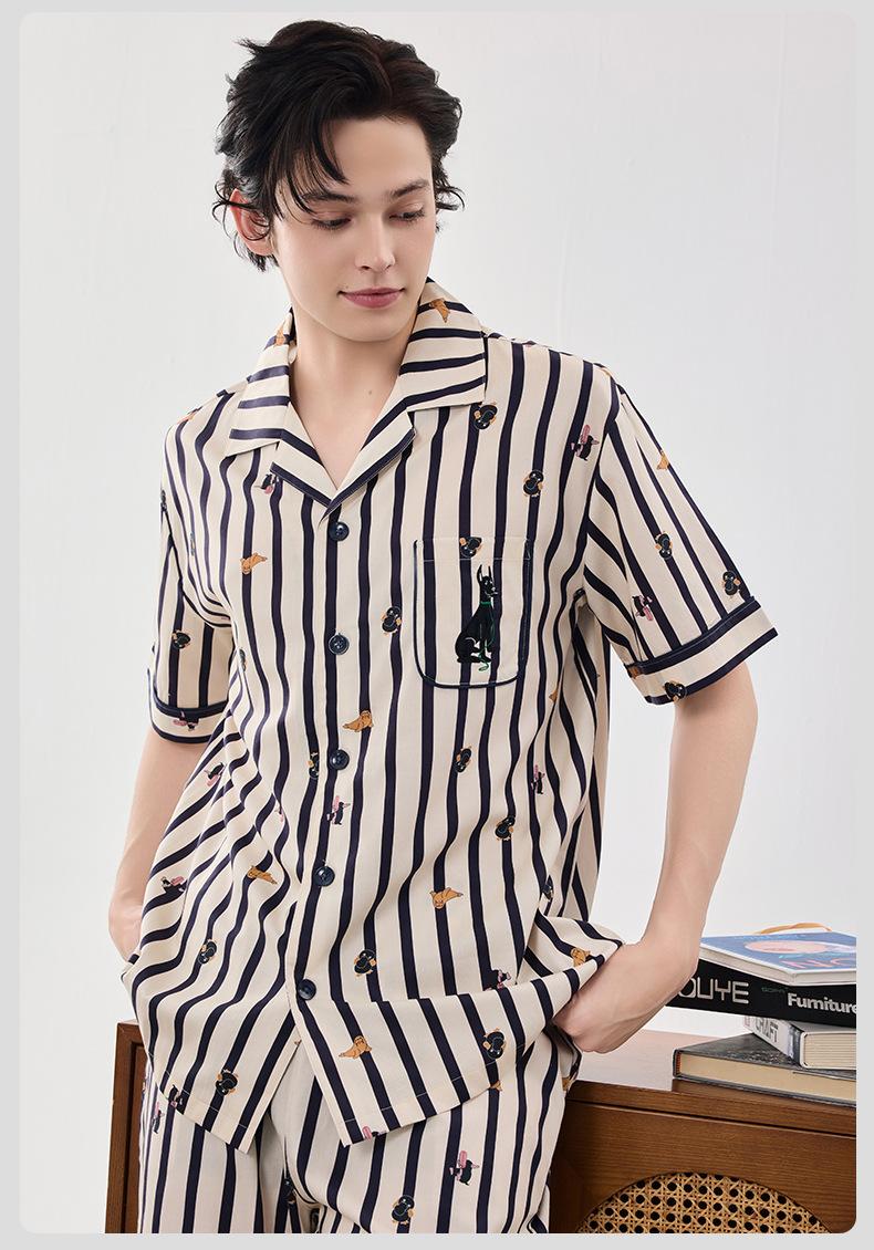 Animal red striped short-sleeved shorts for women dkw998, Animal blue striped short-sleeved shorts for men dkm...