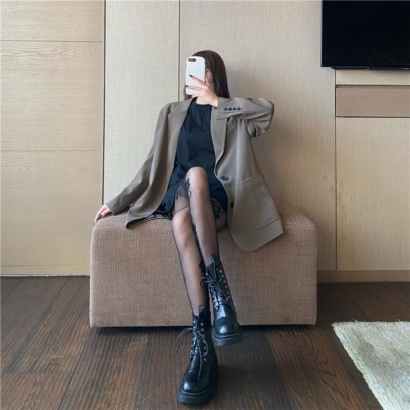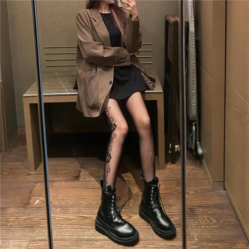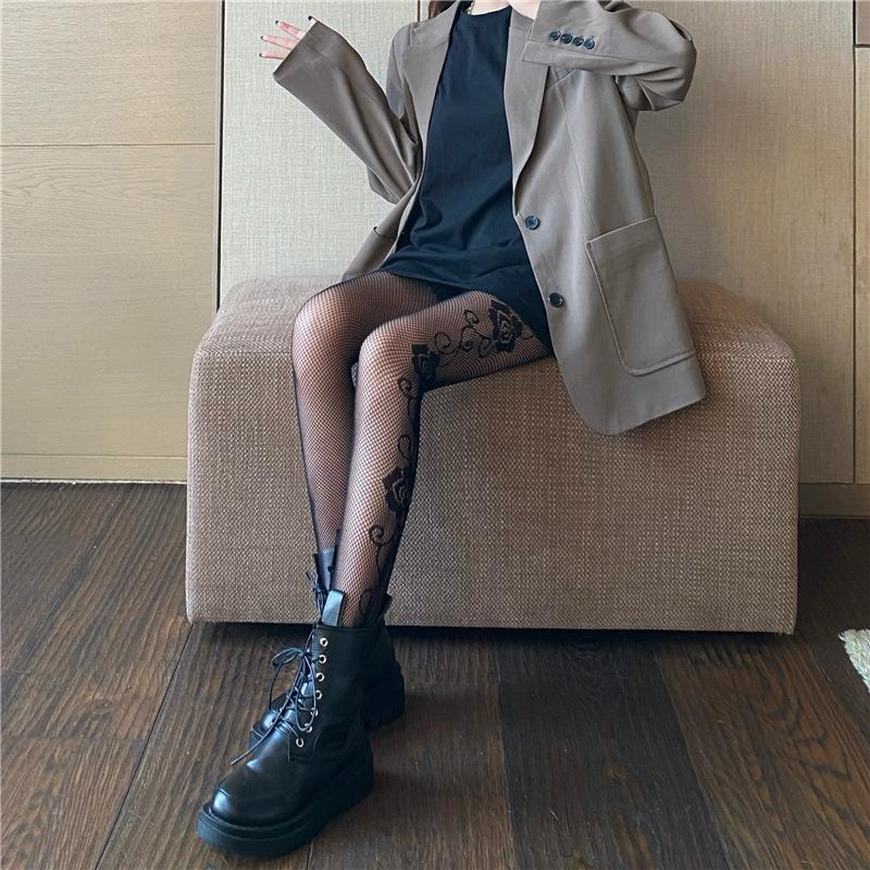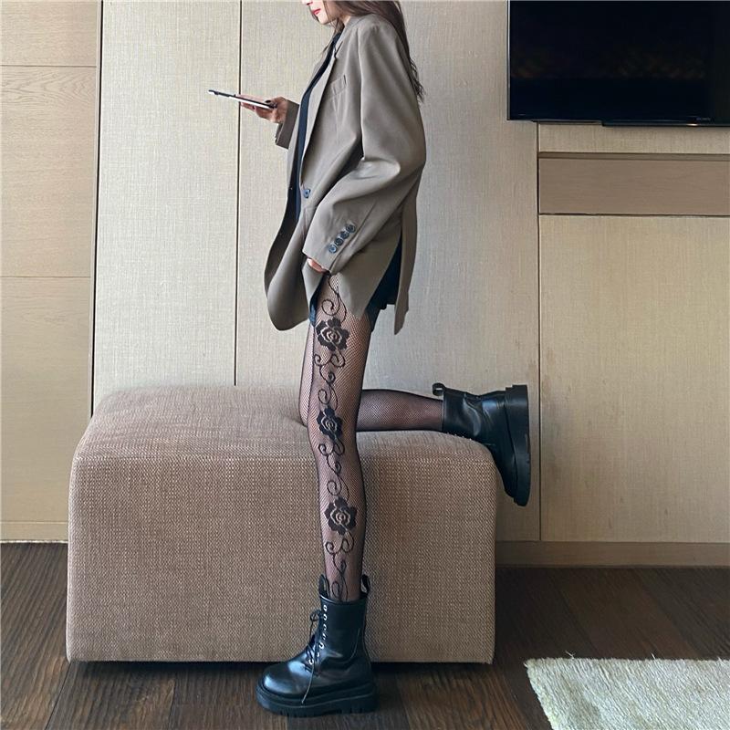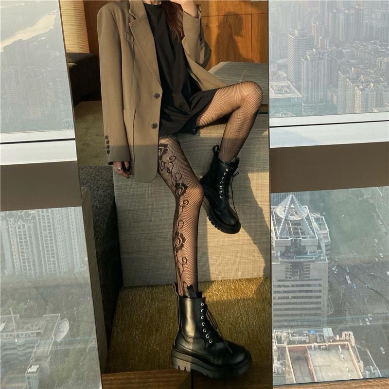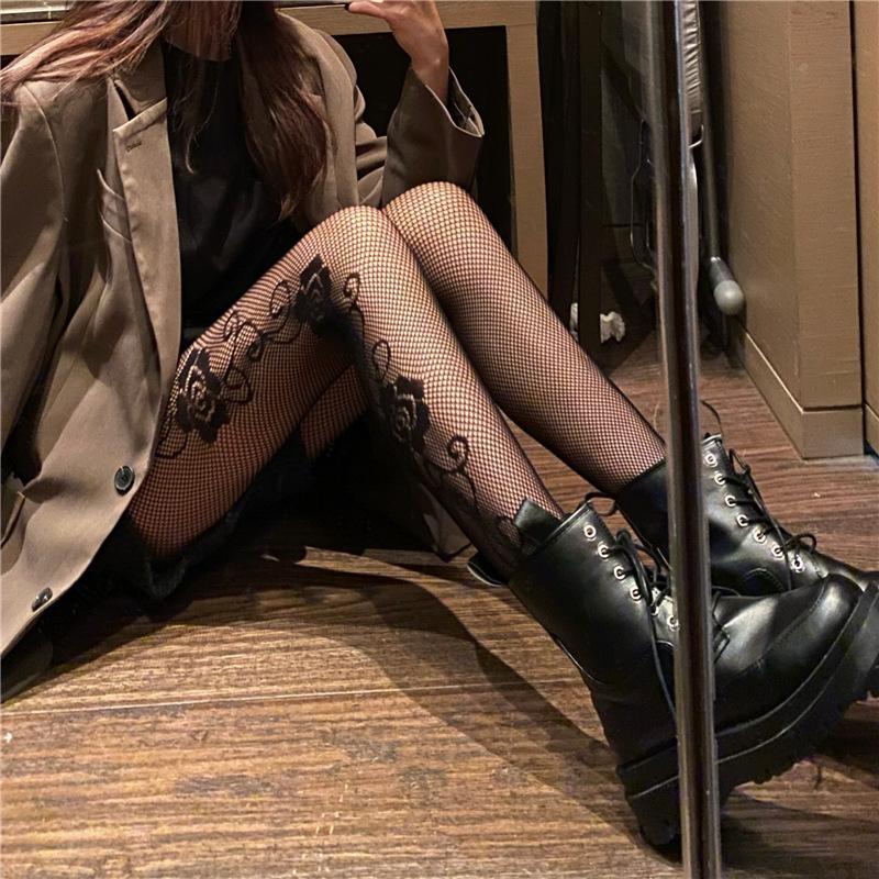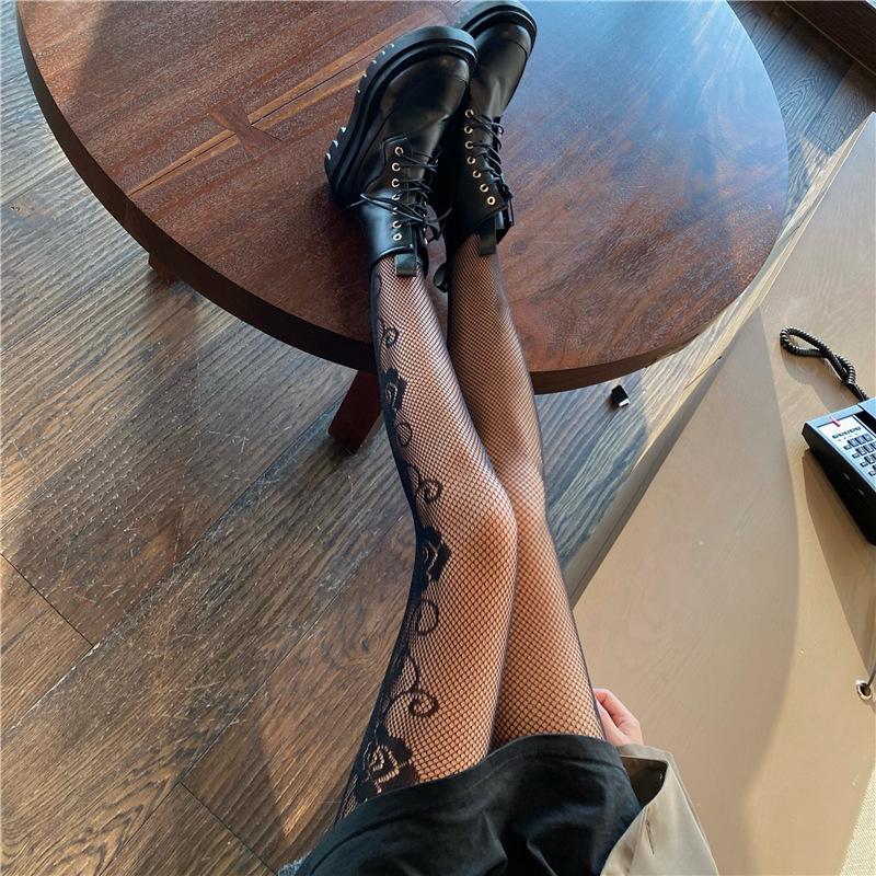 Primavera y Verano Nuevo Ins Elegante Pantimedias Jacquard Rosa Lado Oscuro Sexy Medias de Red Medias Negras para Mujer