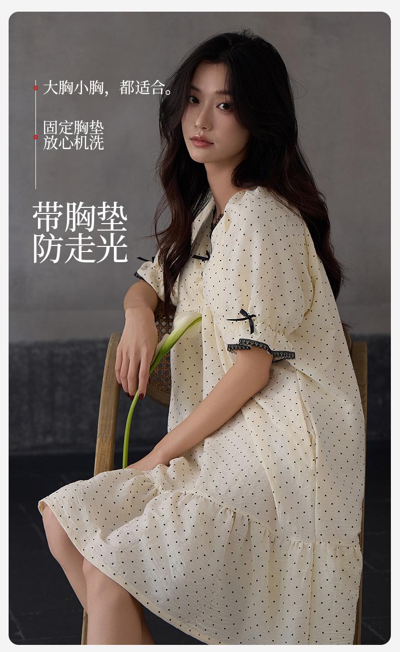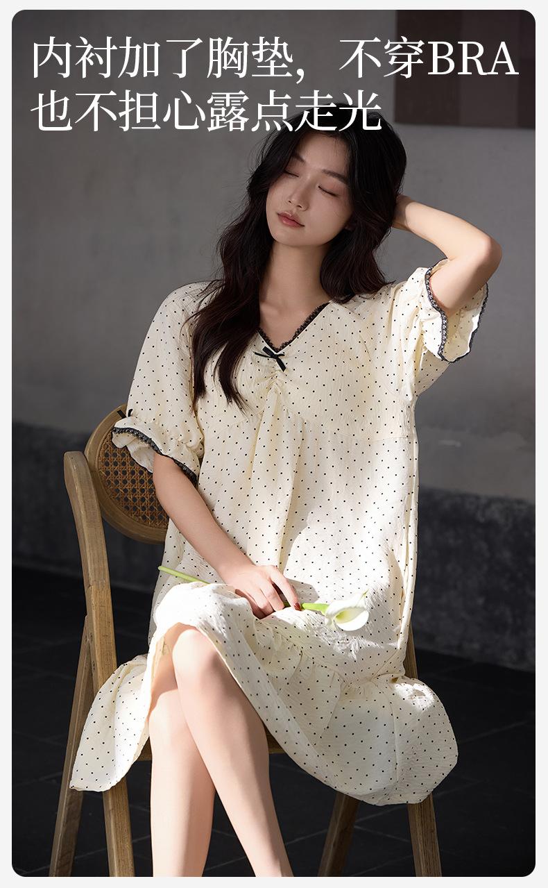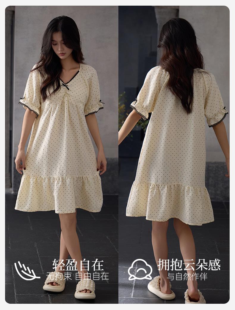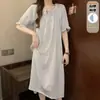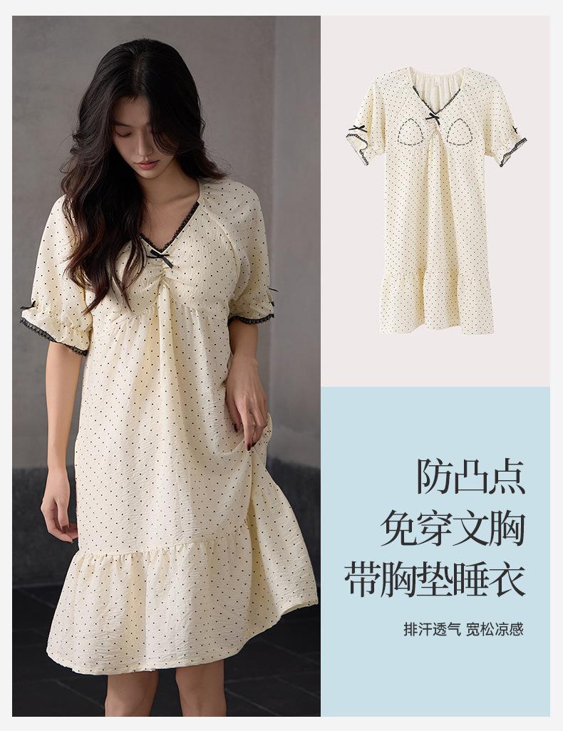 Camisón de Verano Tejido de Algodón Nube de Manga Corta con Almohadillas para el Busto para Mujer, Casual y Dulce, Puede Usarse Fuera del Vestido Casero hasta la Rodilla