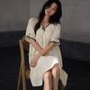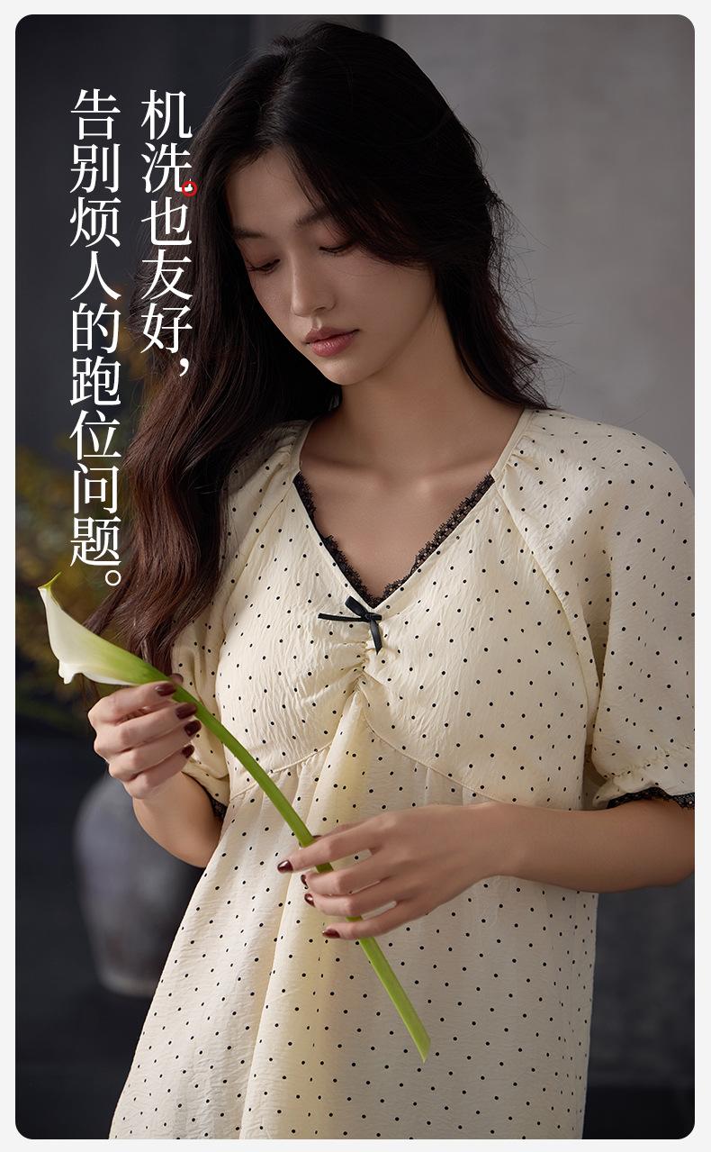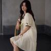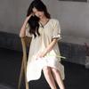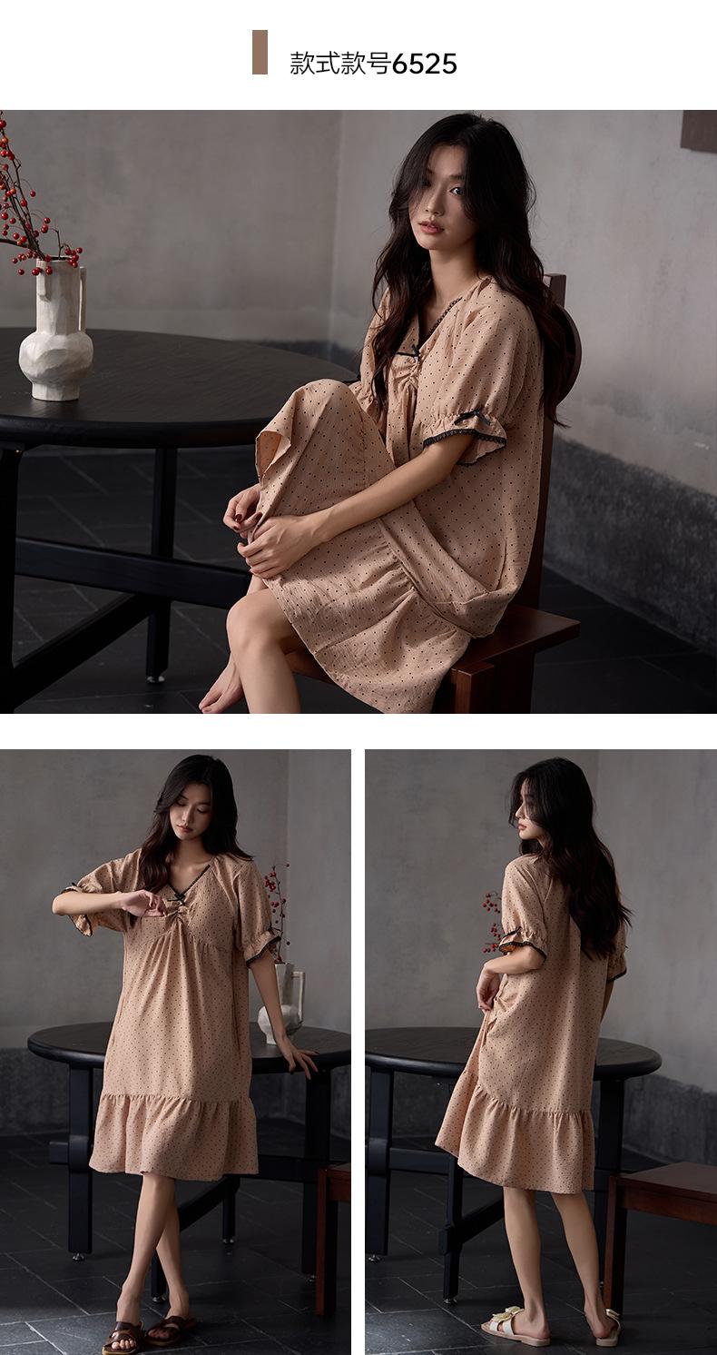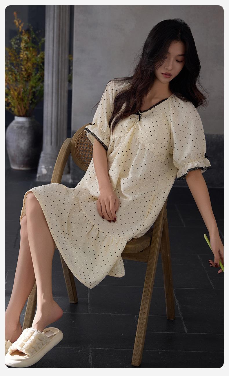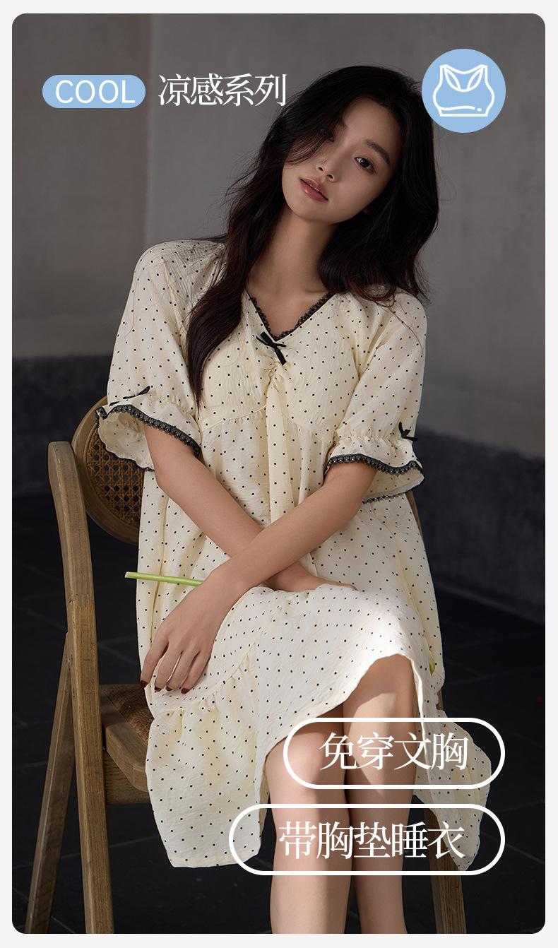 Camisón de Verano Tejido de Algodón Nube de Manga Corta con Almohadillas para el Busto para Mujer, Casual y Dulce, Puede Usarse Fuera del Vestido Casero hasta la Rodilla