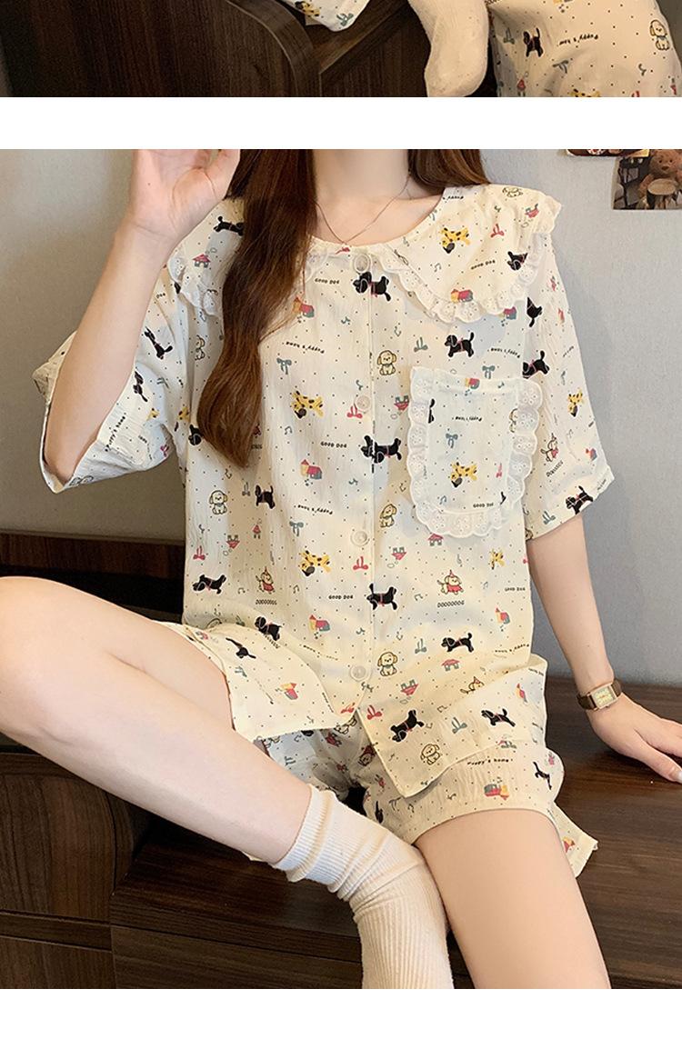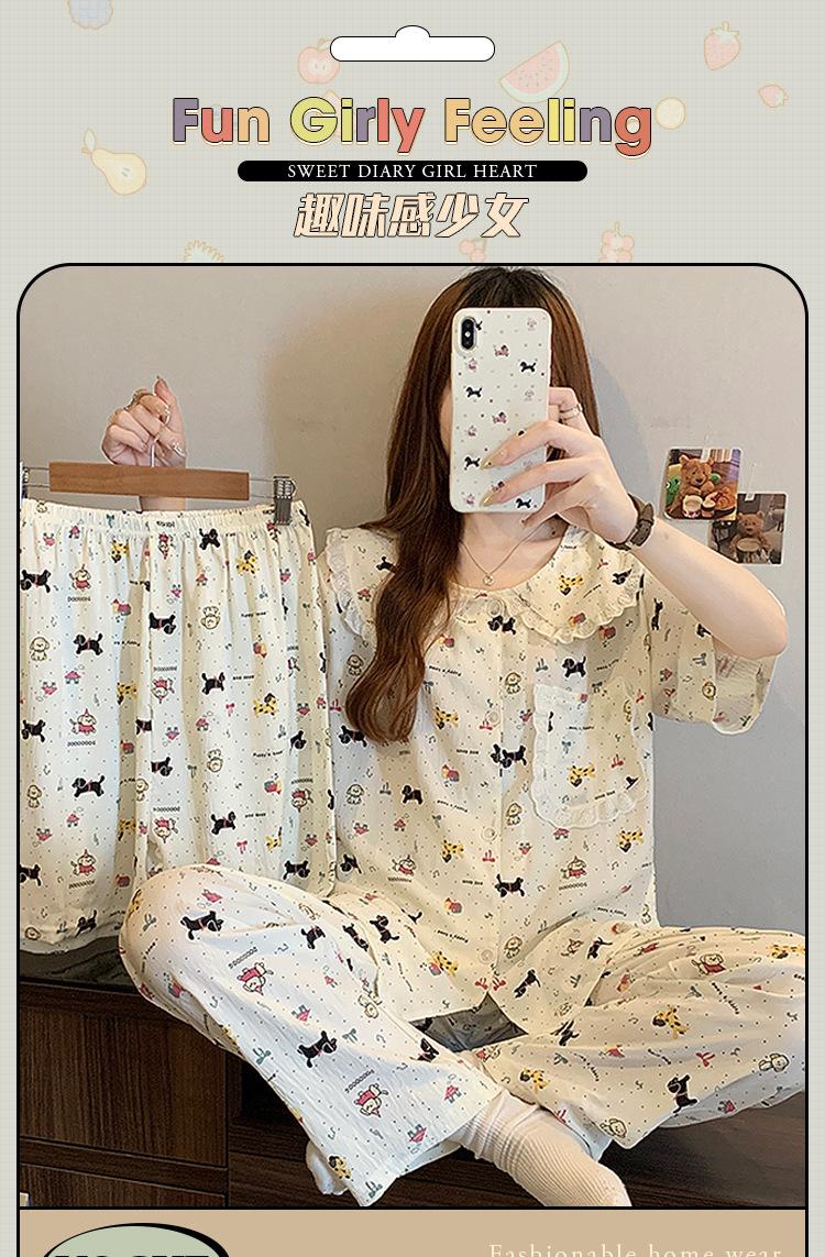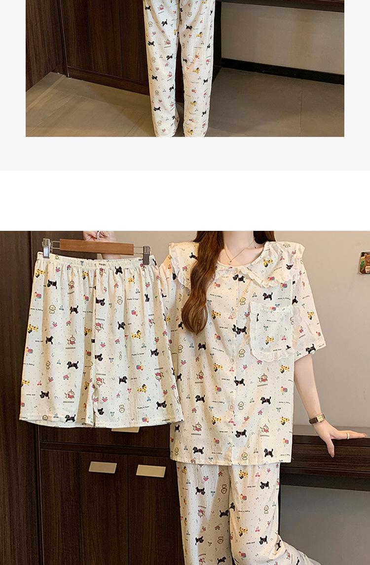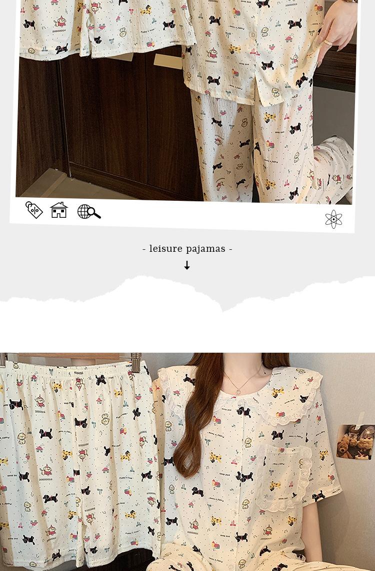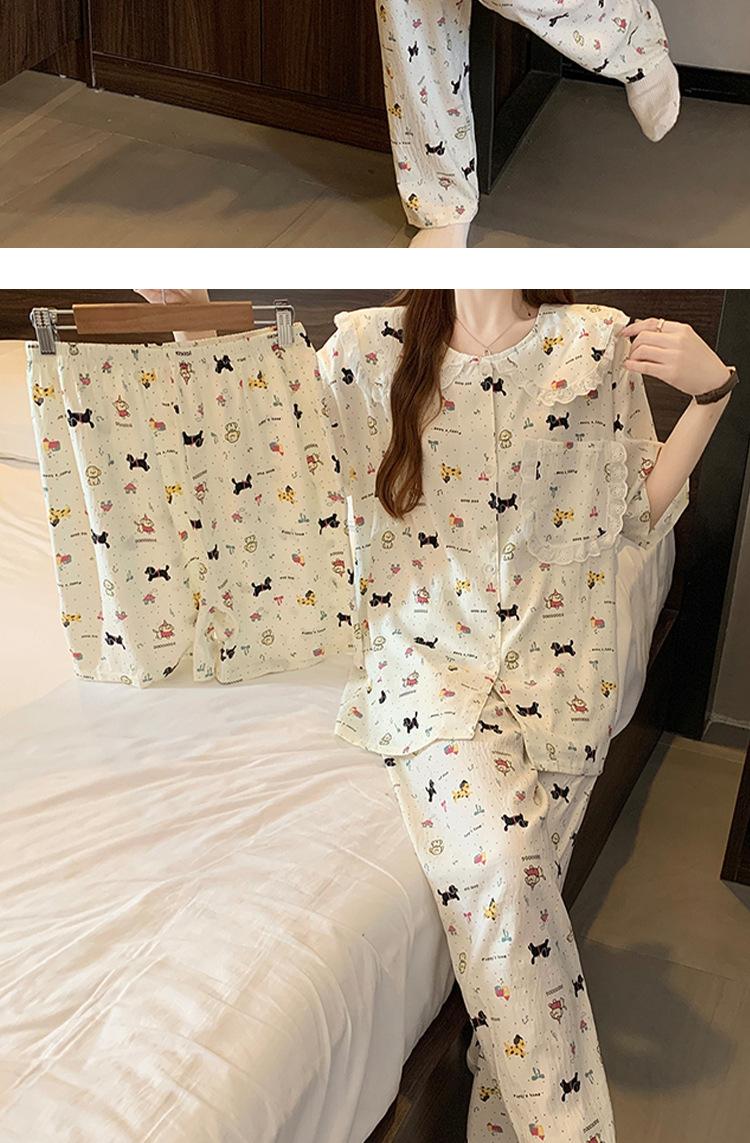 Pijama coreano de cachorro con estampado de lunares y letras, cuello de muñeca de algodón nube con encaje, para mujer, verano, nuevo conjunto de tres piezas al por mayor
