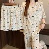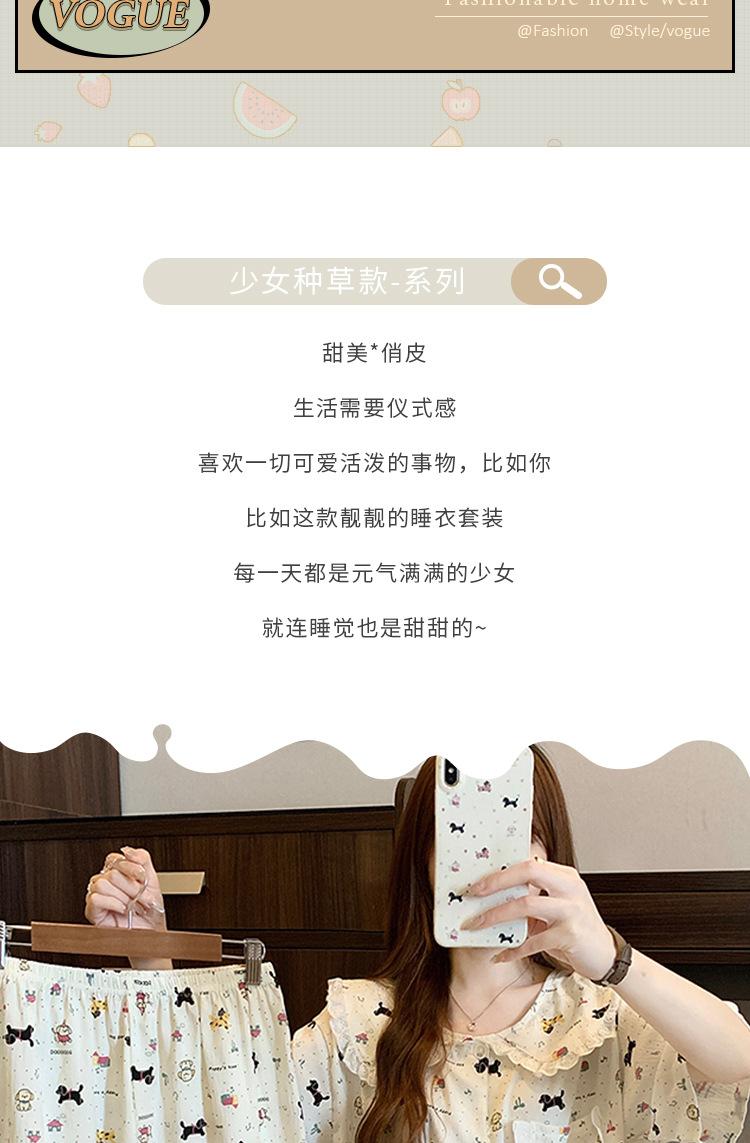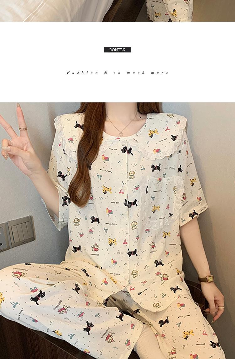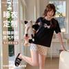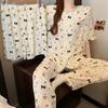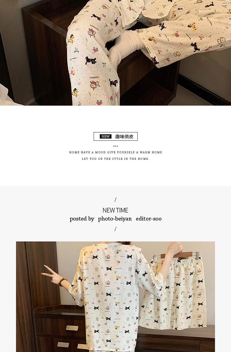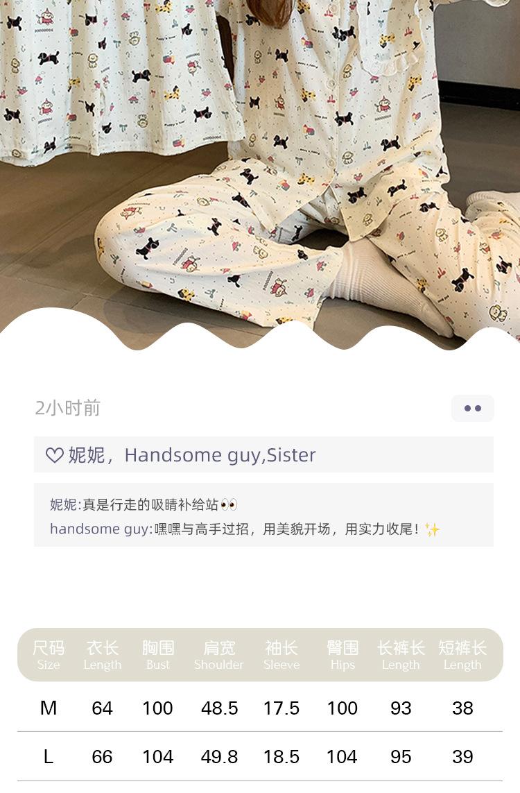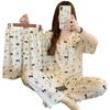 Pijama coreano de cachorro con estampado de lunares y letras, cuello de muñeca de algodón nube con encaje, para mujer, verano, nuevo conjunto de tres piezas al por mayor