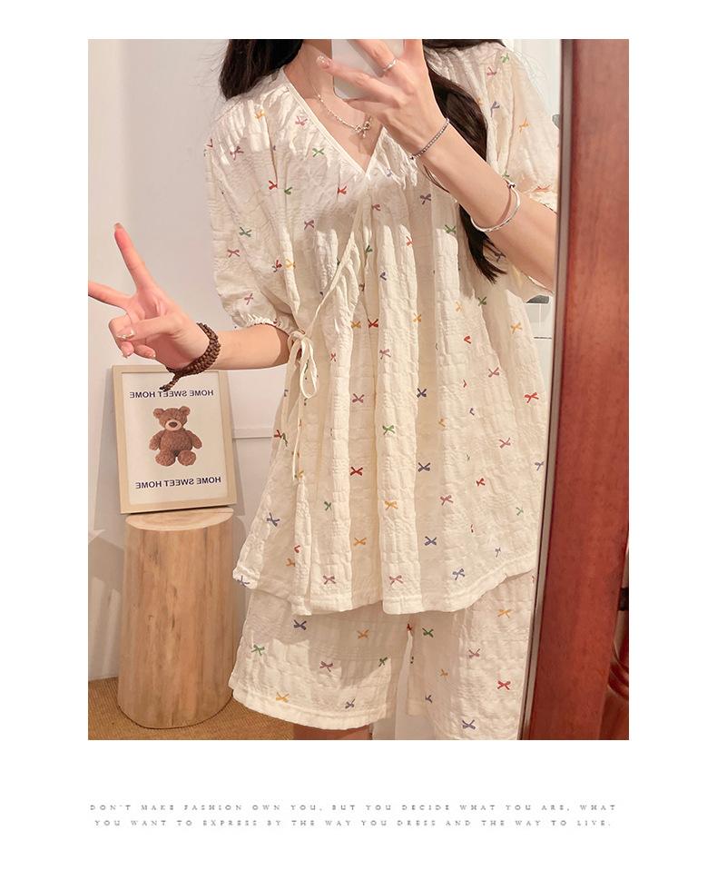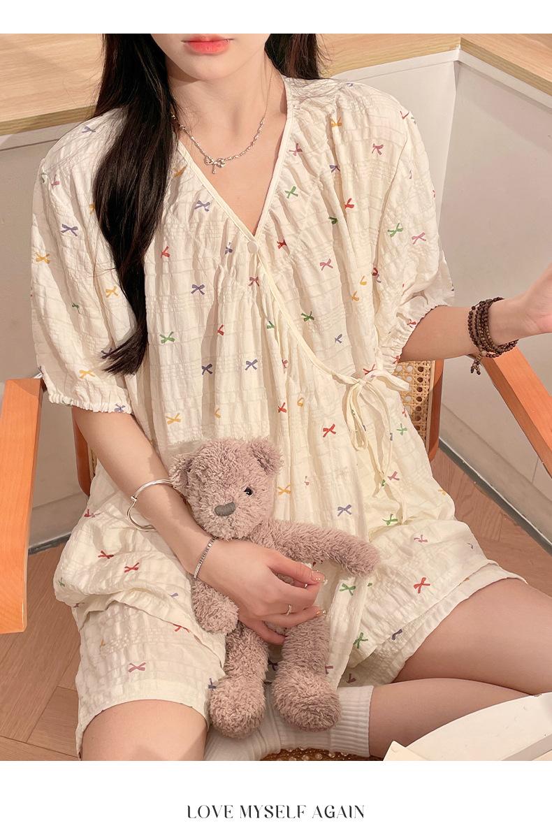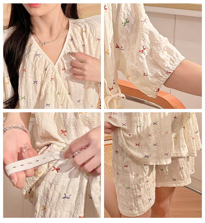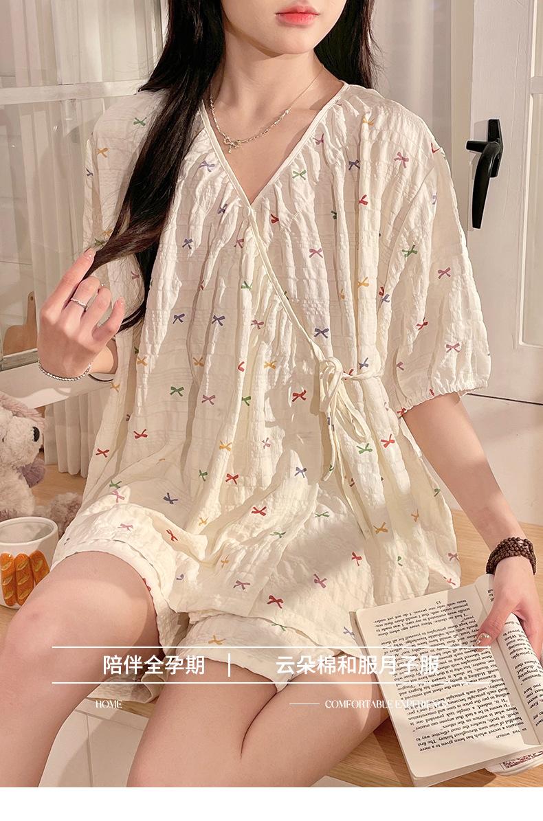 Happy Moon Venta al por mayor Algodón Nube Jacquard Manga Corta Ropa de Luna Femenina Mujeres Embarazadas Postparto Lactancia Pueden Usar Traje de Pijama