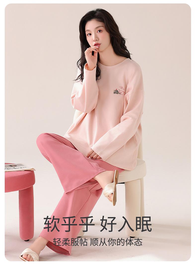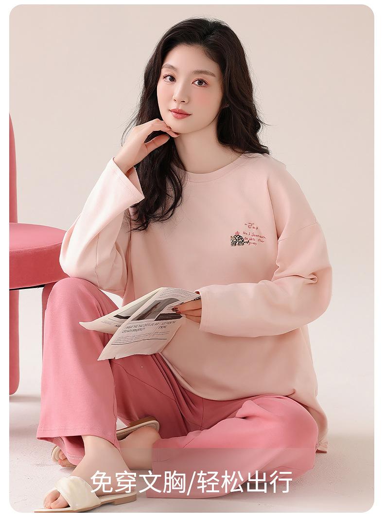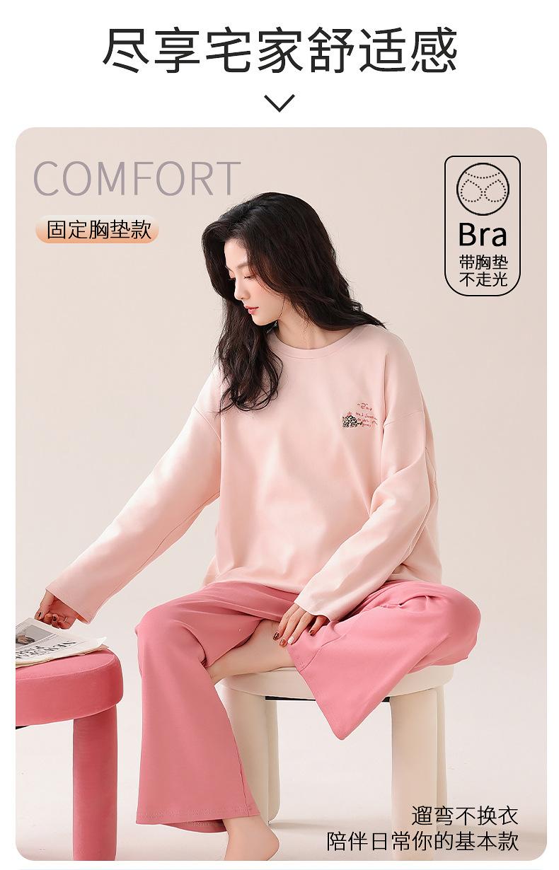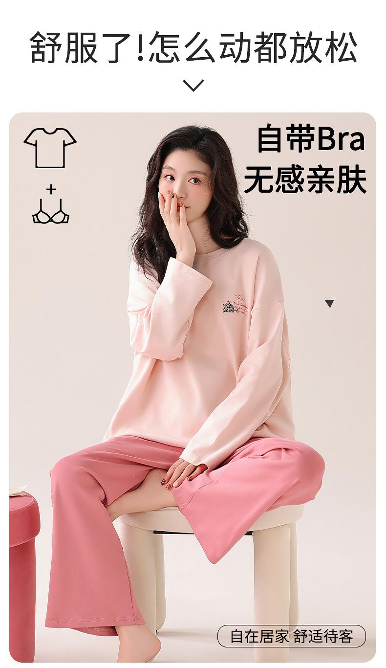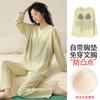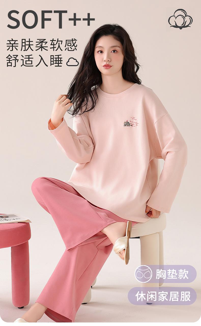 Pijamas de Algodón Puro para Mujer Primavera y Otoño con Almohadilla en el Pecho Una Pieza Manga Larga 2025 Nuevo Traje Holgado para Exterior