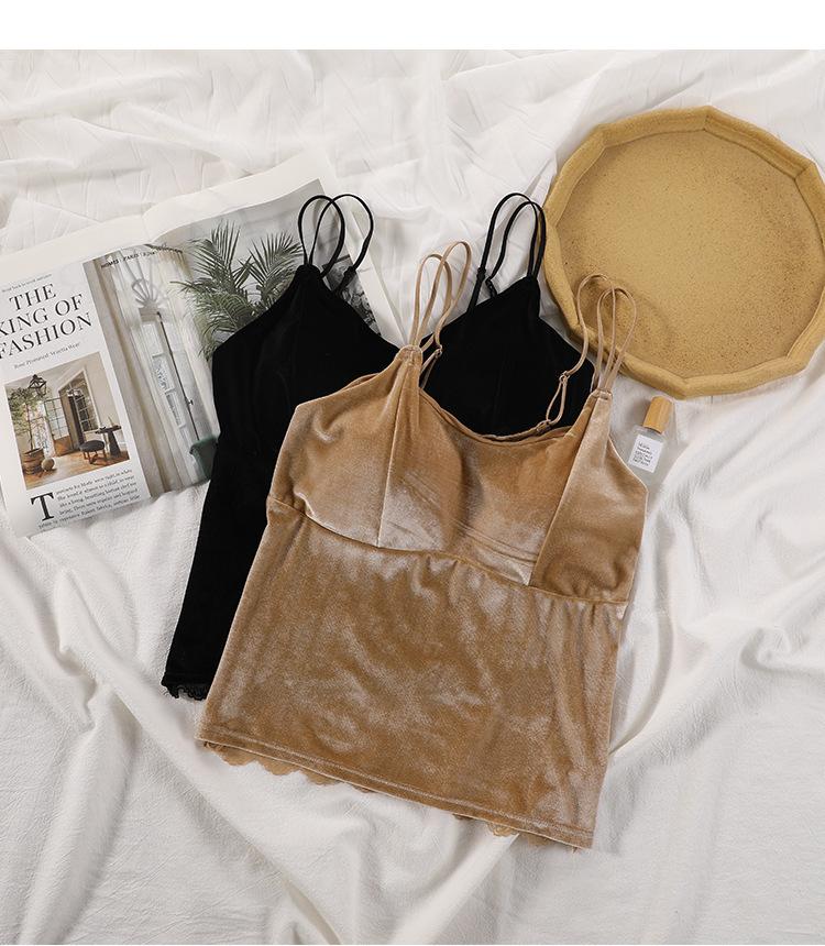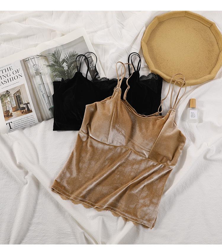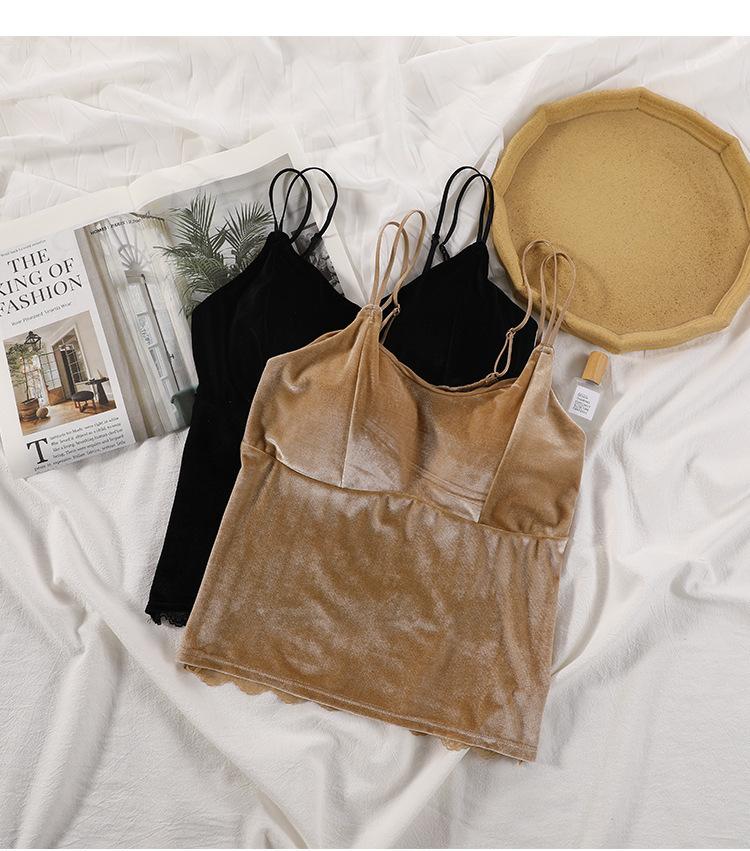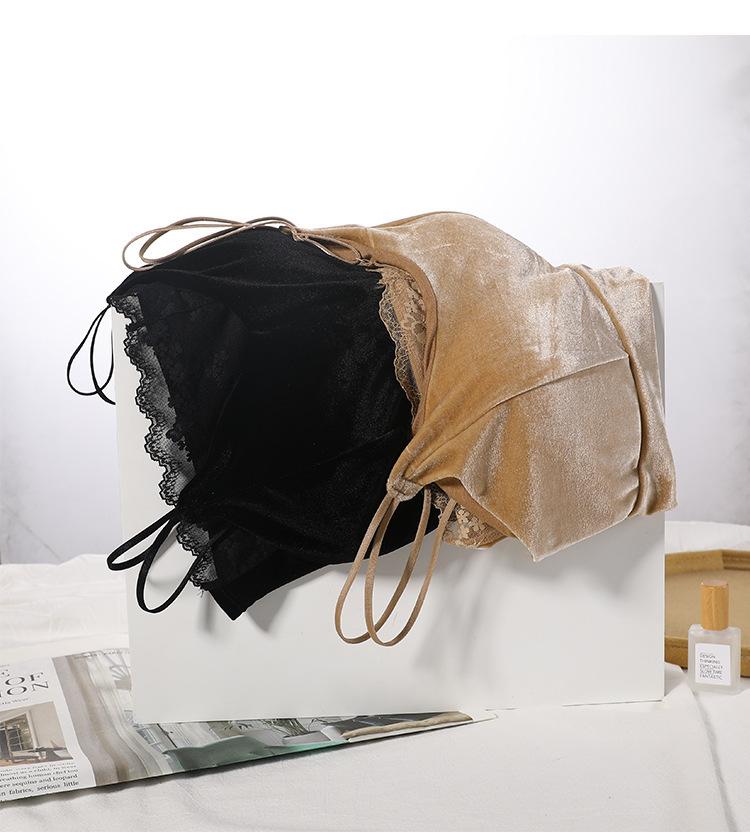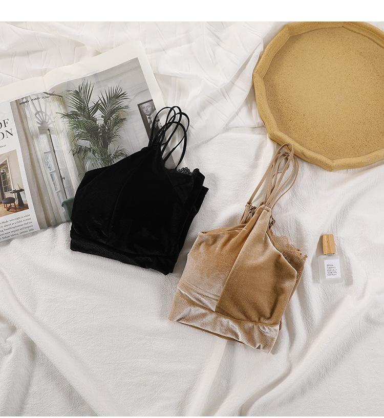 Celebrante de Internet Estilo Coreano Terciopelo Encaje Costuras Tirante Hermoso Chaleco de Espalda con Almohadilla de Pecho sin Marcas Ropa Exterior Interior Tirantes Dobles de Hombro Adelgazante