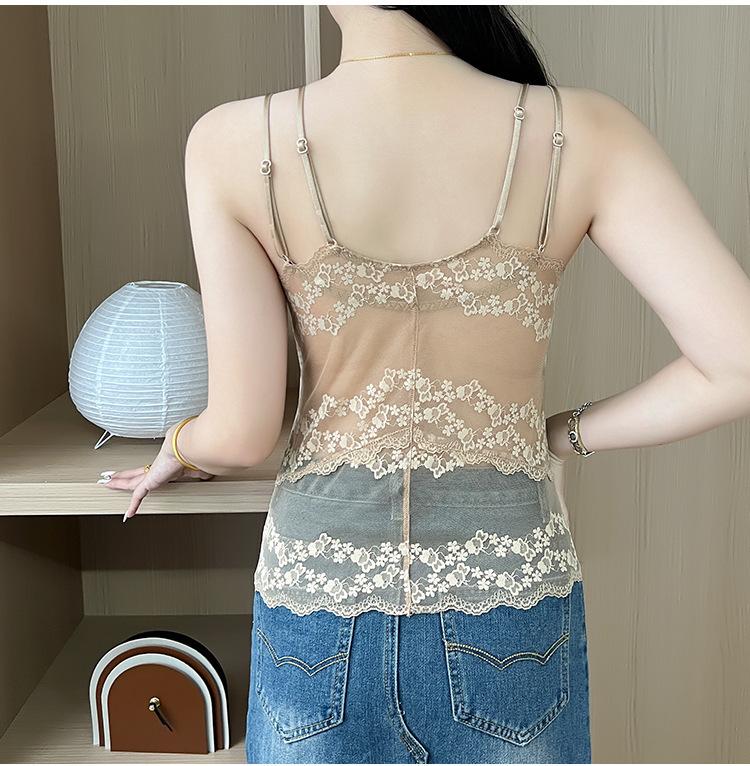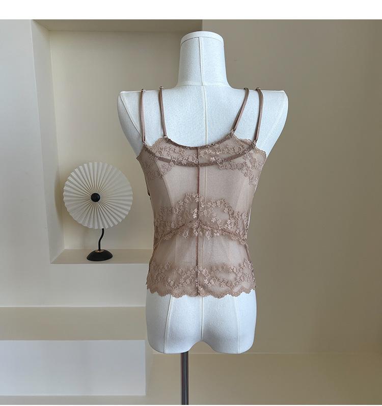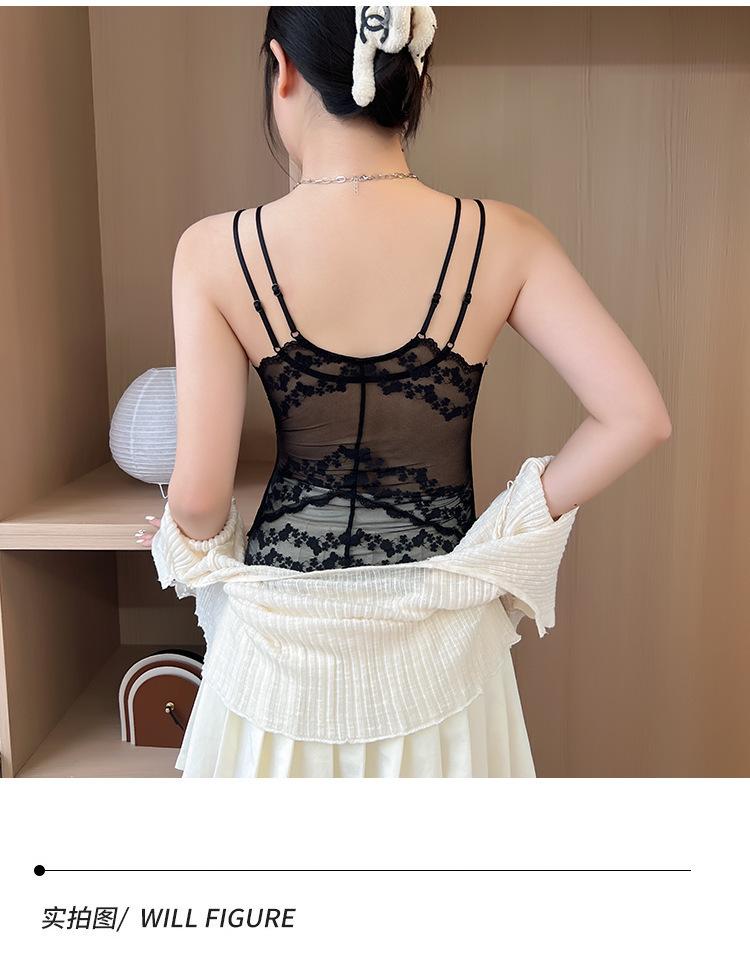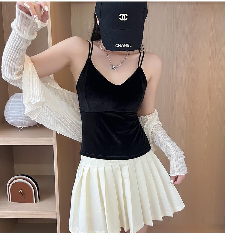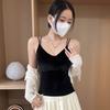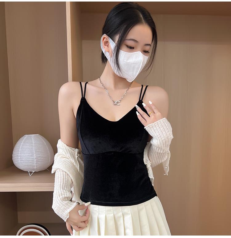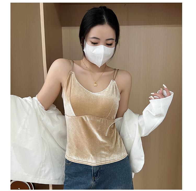 Celebrante de Internet Estilo Coreano Terciopelo Encaje Costuras Tirante Hermoso Chaleco de Espalda con Almohadilla de Pecho sin Marcas Ropa Exterior Interior Tirantes Dobles de Hombro Adelgazante