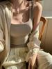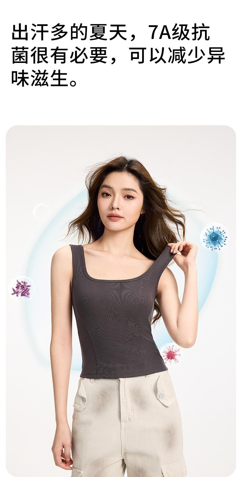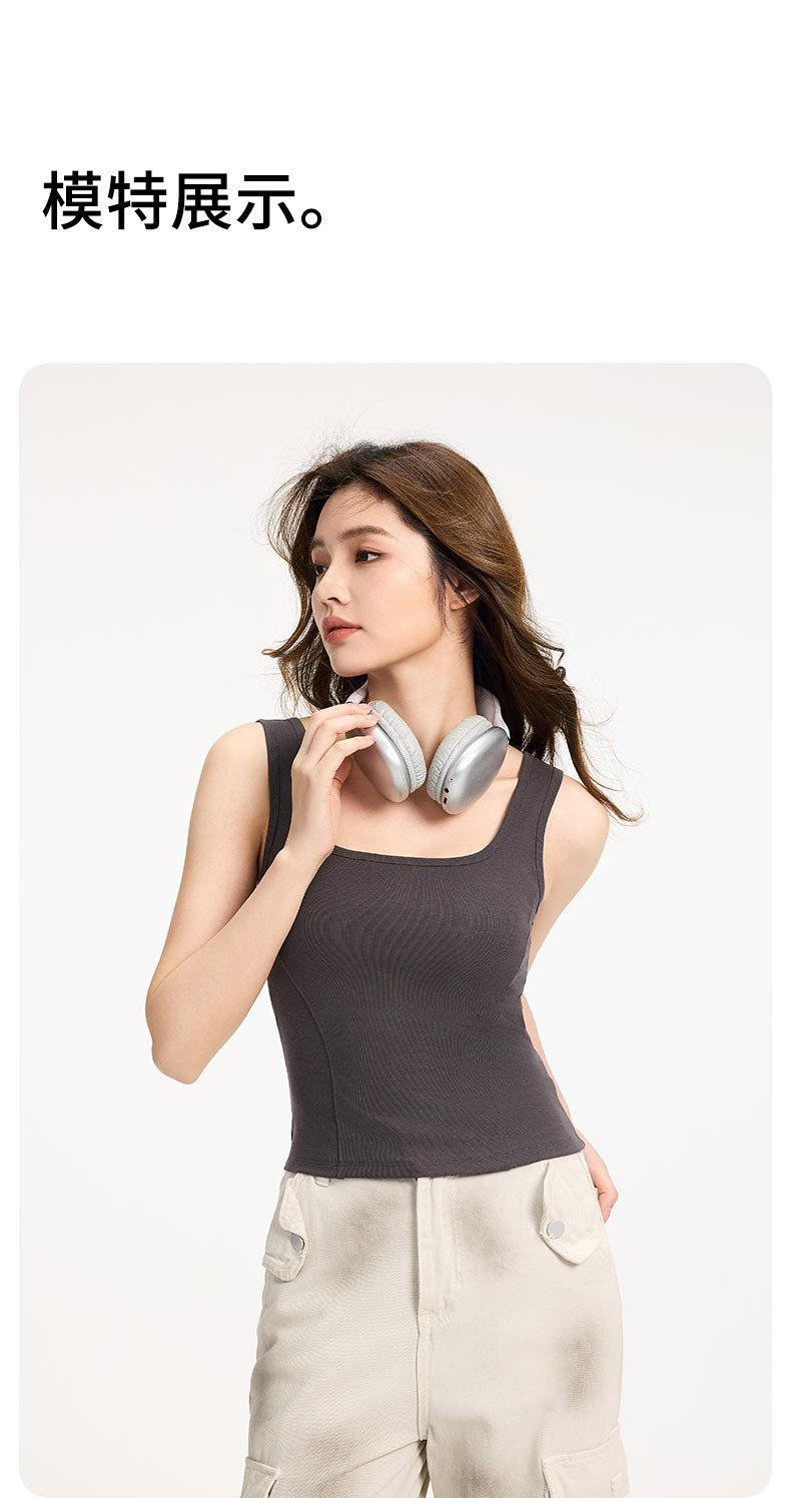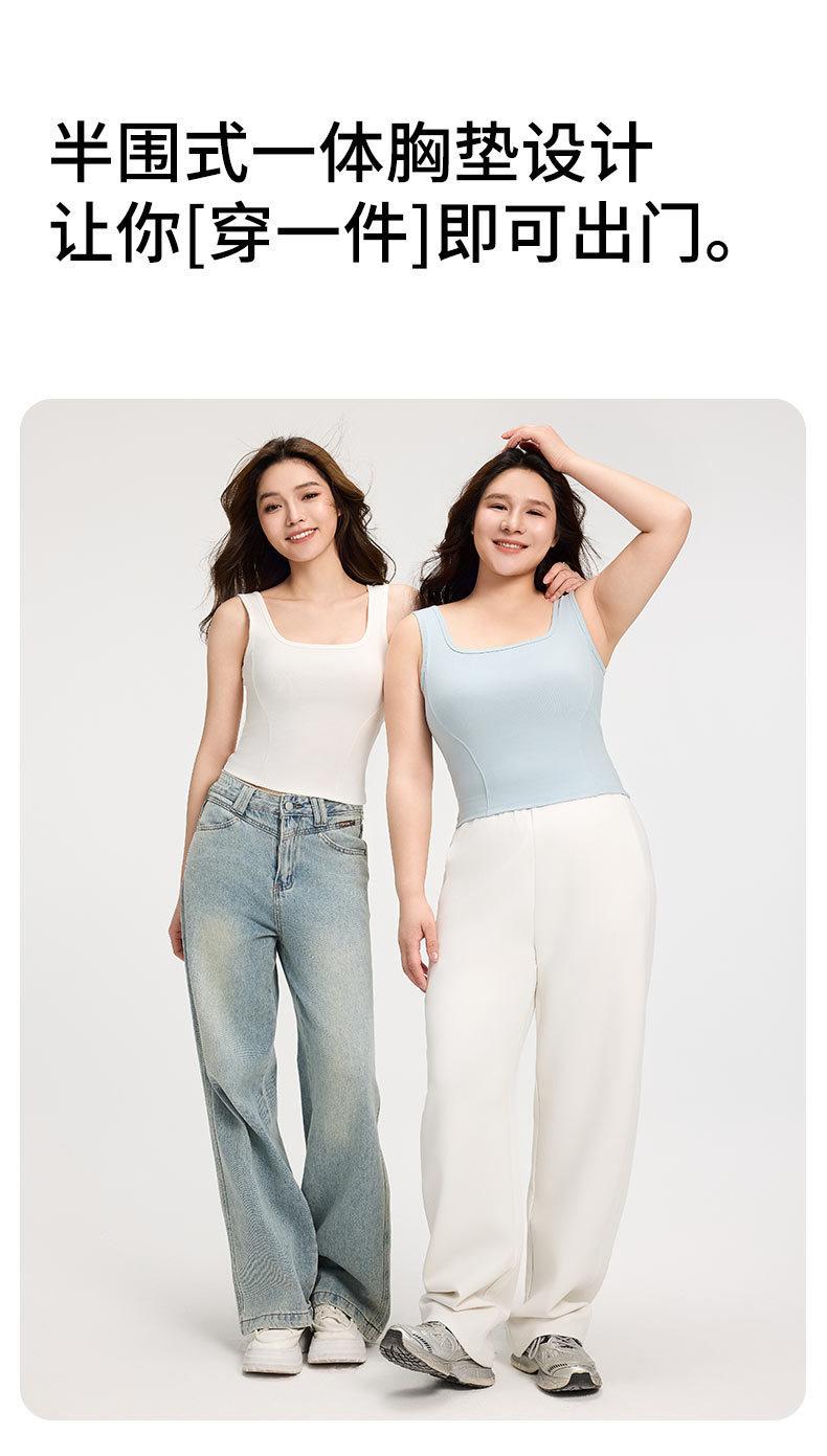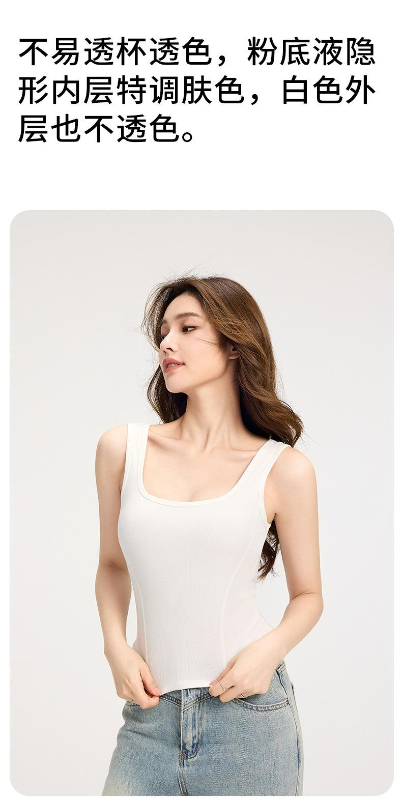 Camisola de Tirantes Anchos para Mujer Verano Nuevo Estilo Ajustado Adelgazante Combinable Top con Almohadilla en el Pecho para Mujer Cuello Cuadrado Chaleco Básico